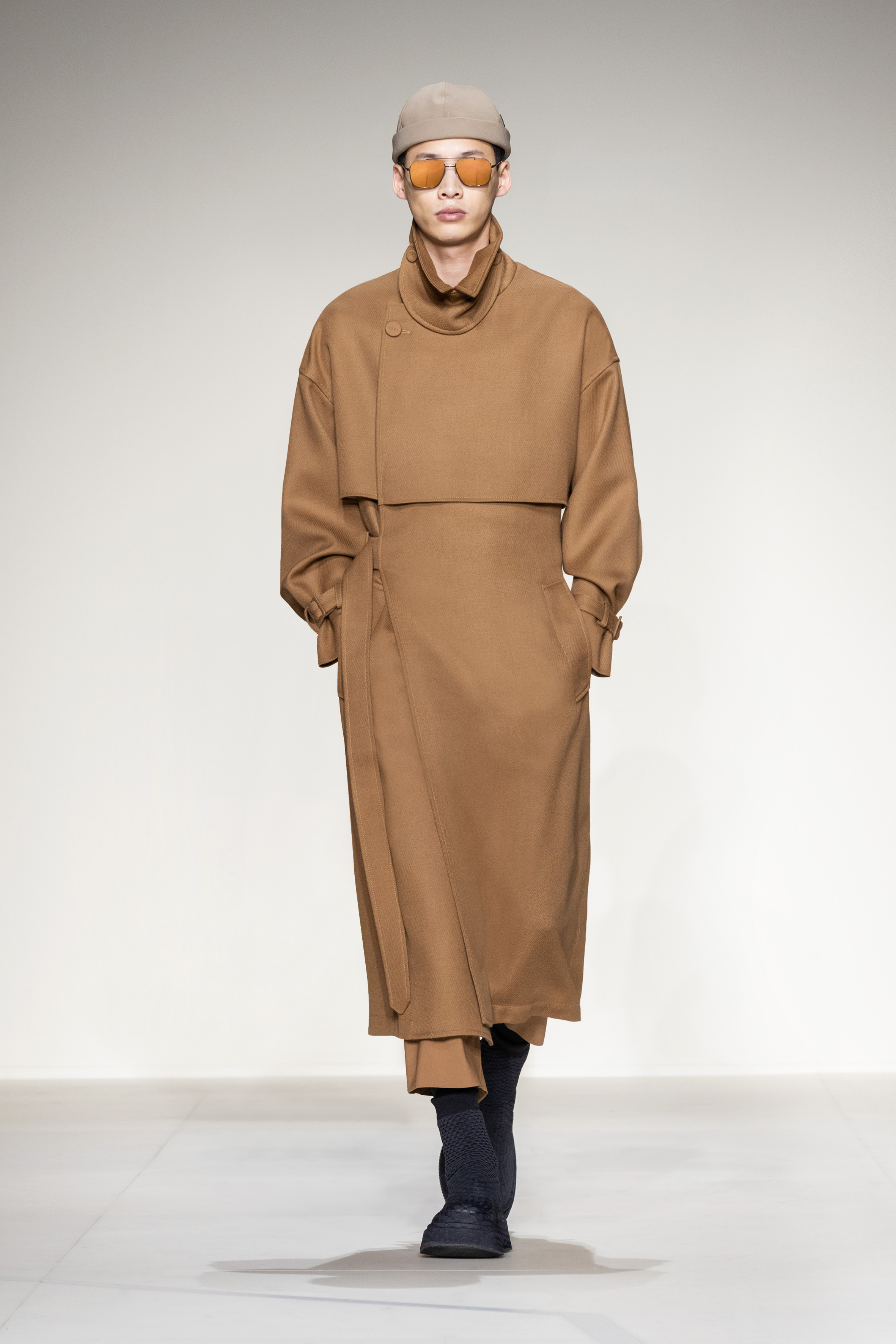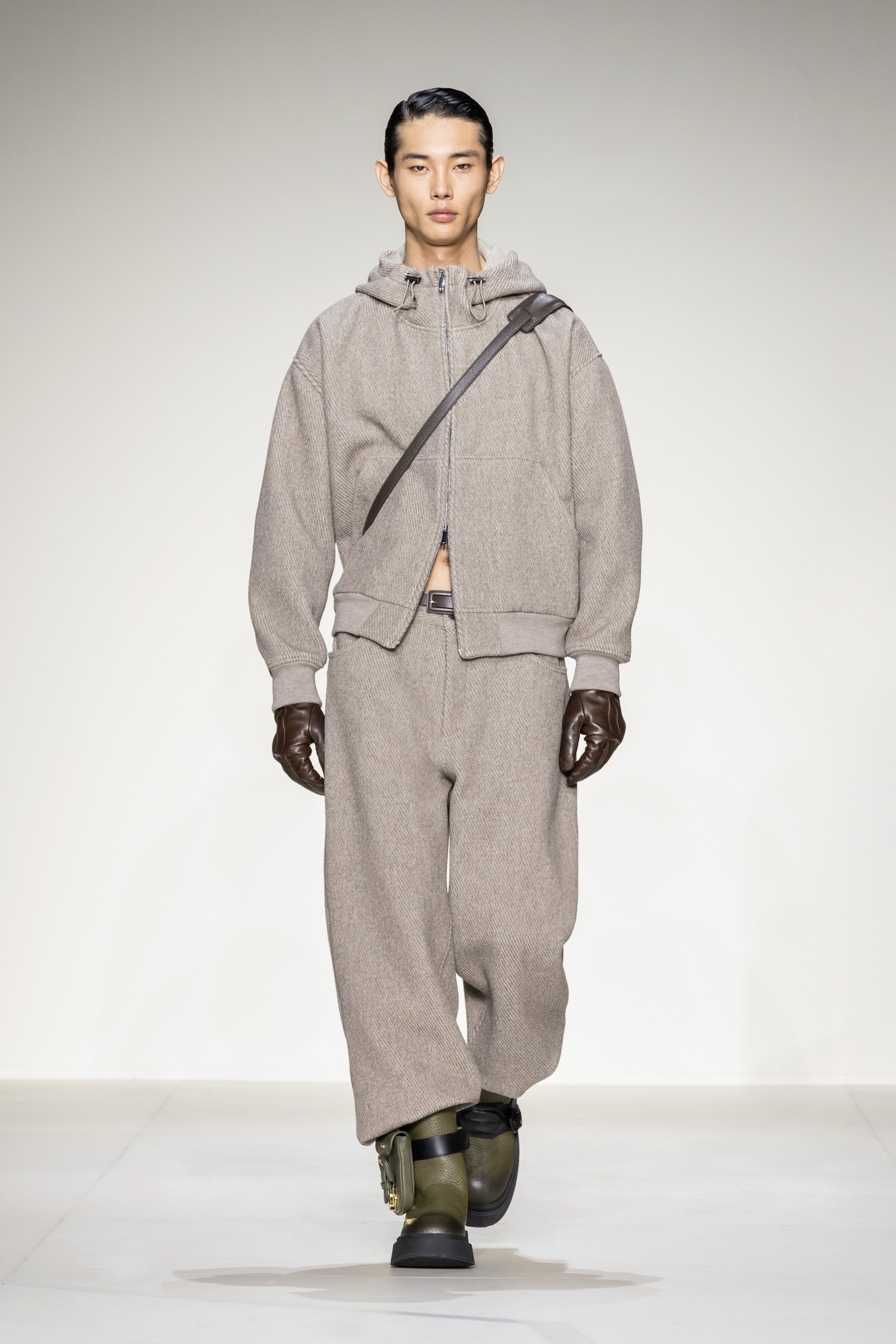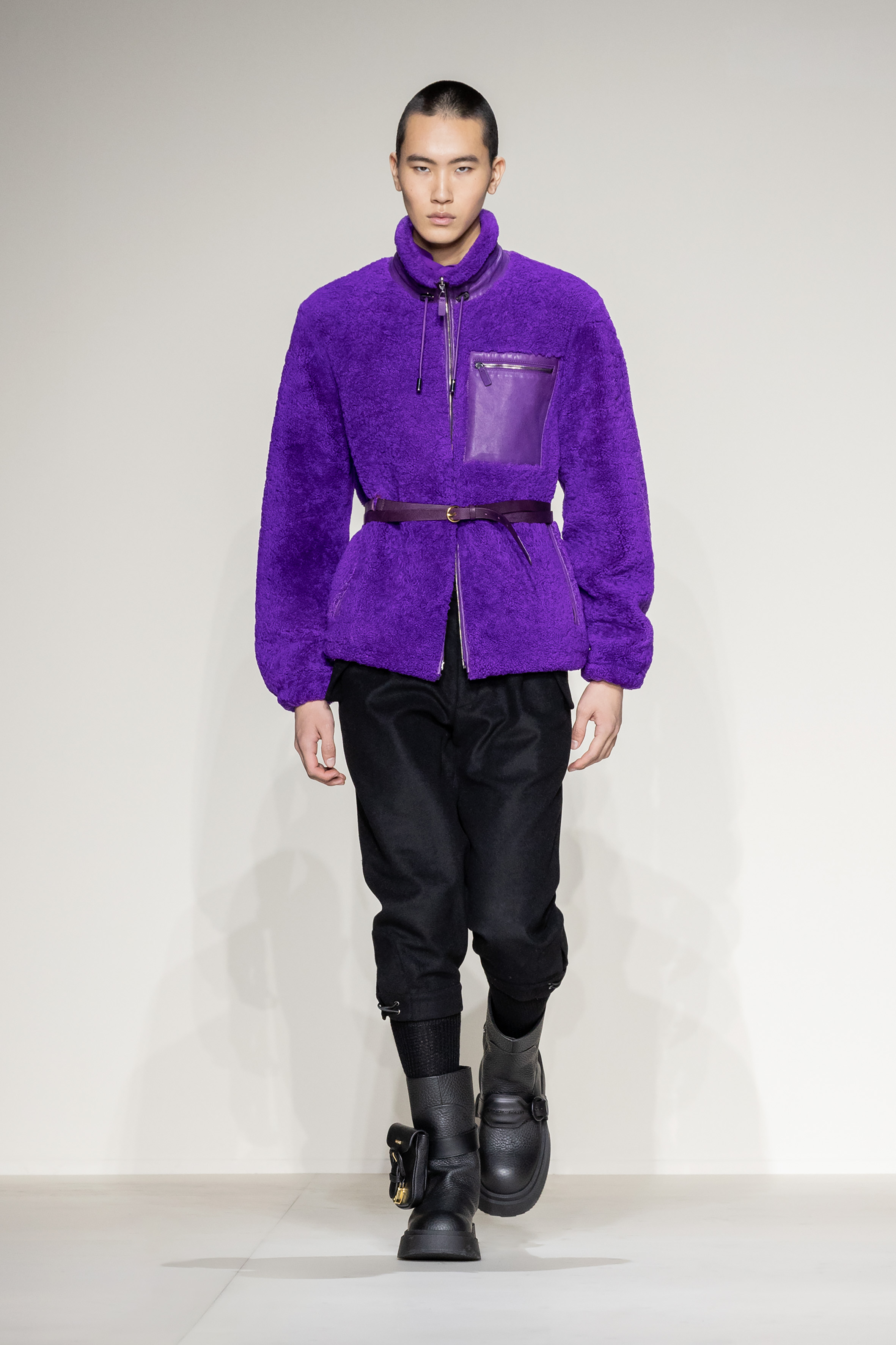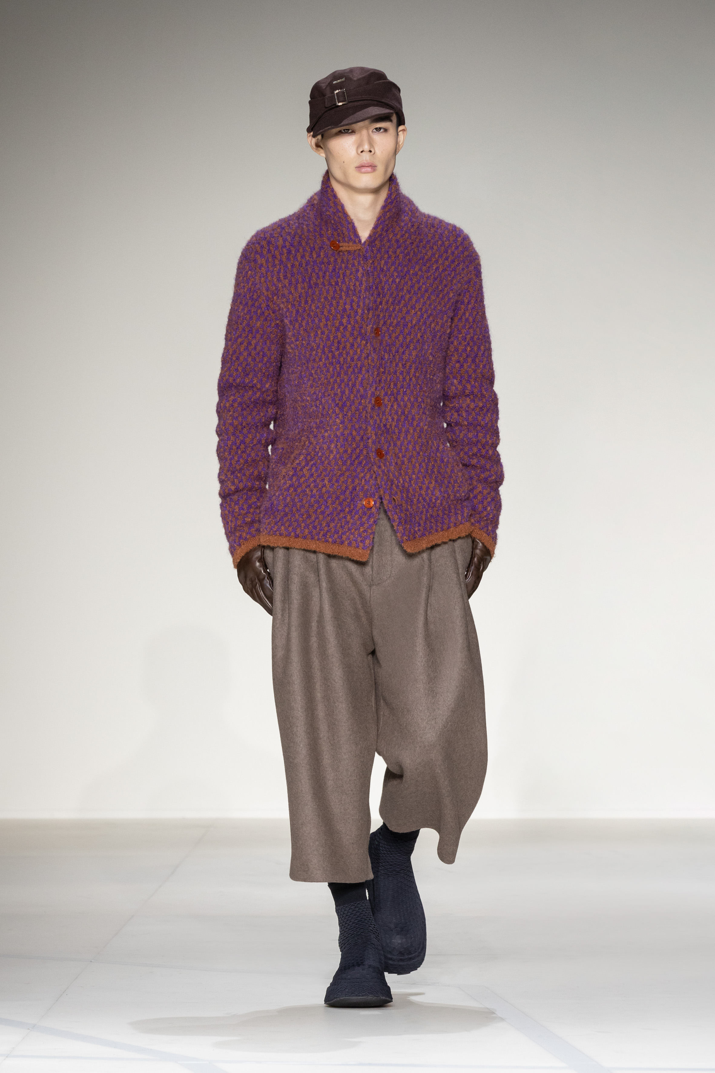The chromatic panorama moves from greige and beige to caramel and rust tones before lighting up with flashes of colour, from intense red to geranium, with purple notes, before settling down in black. Long goves, beanies, and duffle and drawstrings bag accompany the flight.