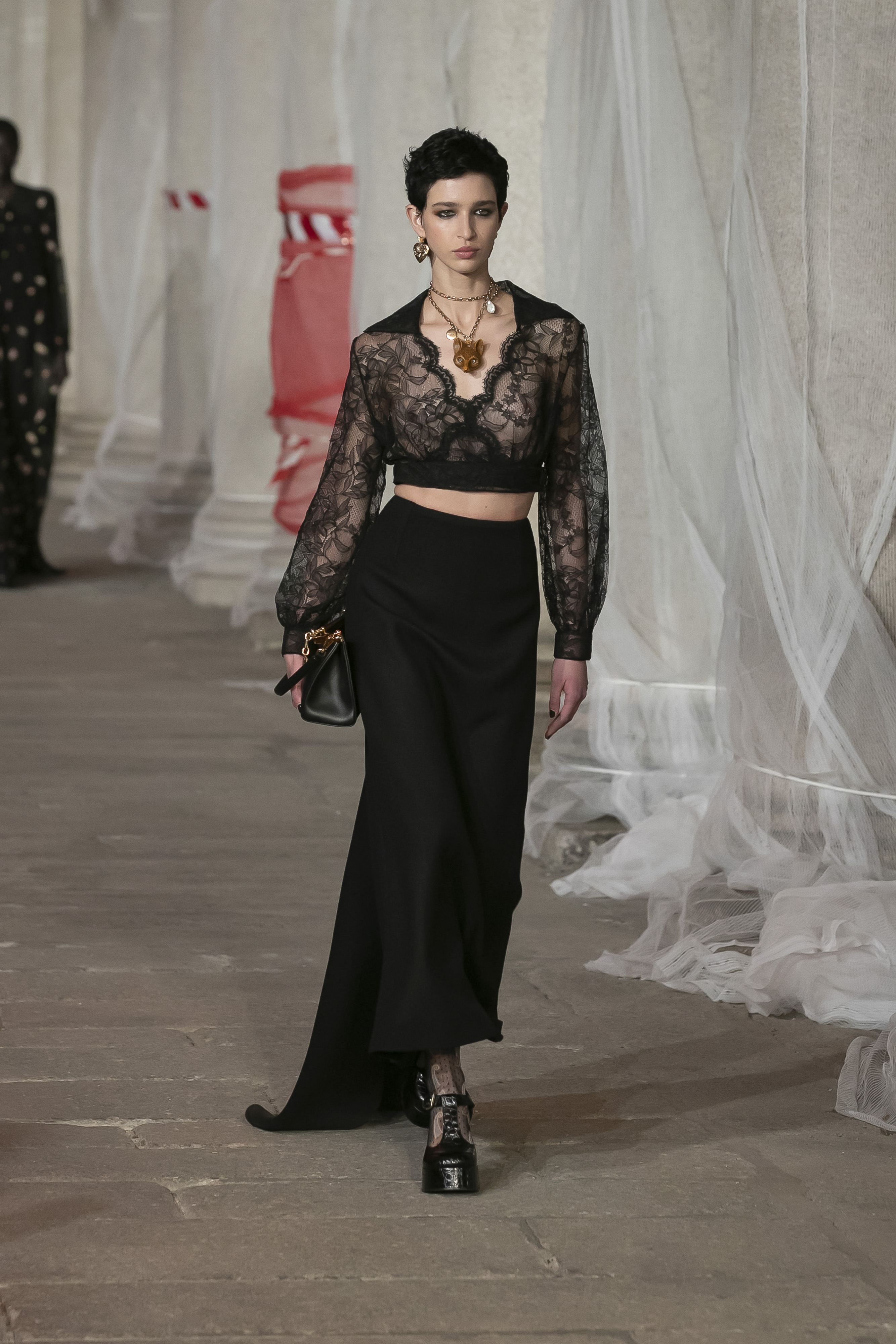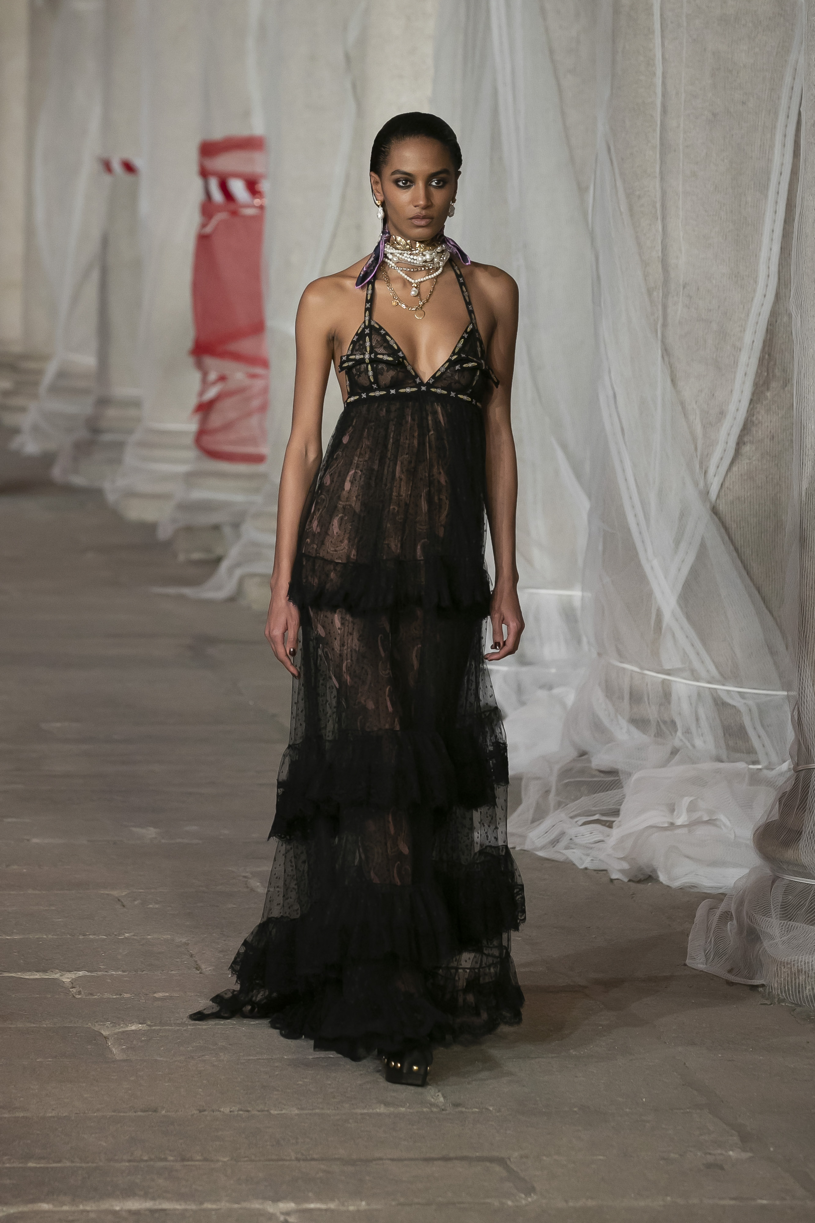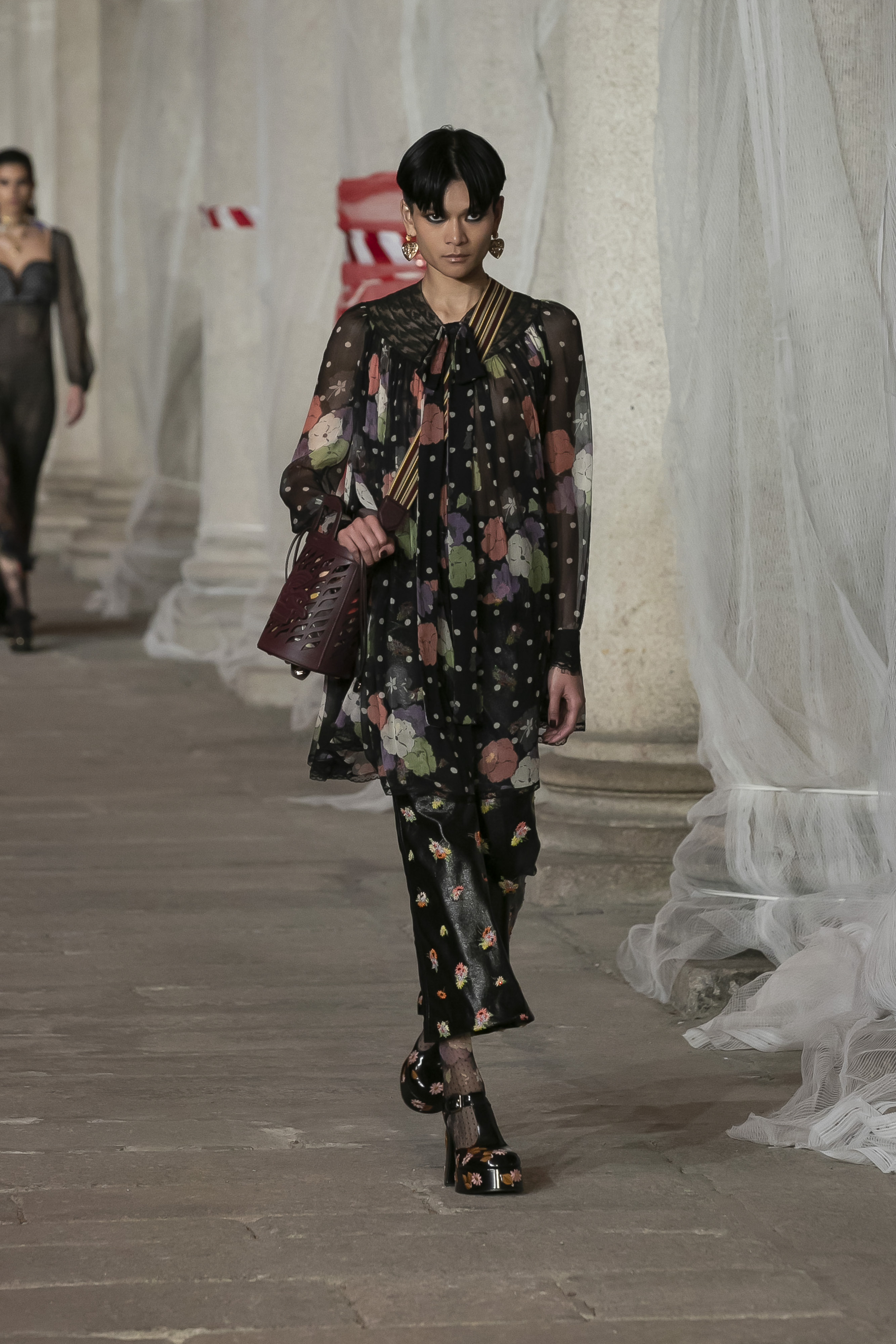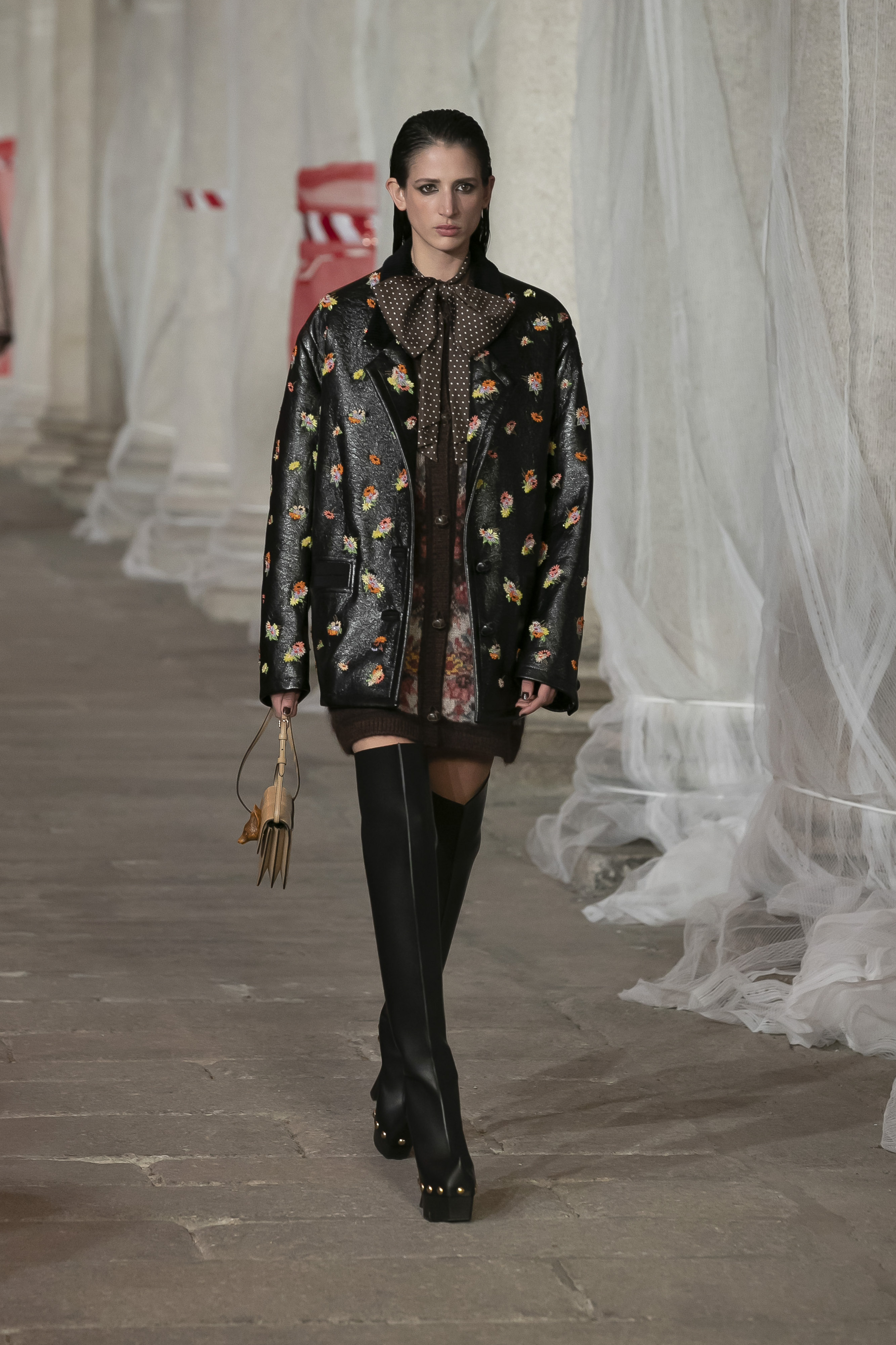 That moment, for Marco De Vincenzo, happens now. The more the creative director delves into Etro, the more the dialogue with what Etro is becomes compelling. The answer to such an exchange, of course, cannot be summed in one sentence. A dialogue is a work in progress, exactly like the place that frames the show today: an historic palazzo turned into a construction site, just wrapped or ready to be unwrapped. Delving into the history of a brand, after all, is an archaeological undertaking.