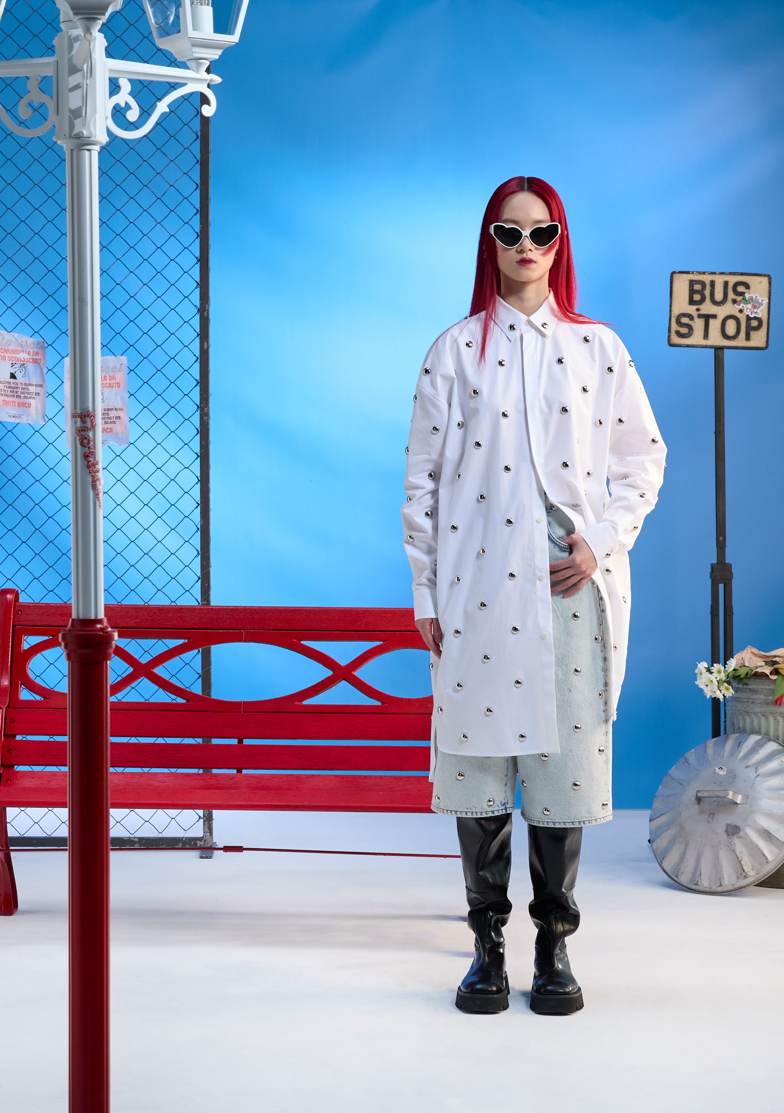 Immersed in a pop imaginary, the Fiorucci collection embraces a "sugar coating" aesthetic that pervades every element, from clothing to accessories. This series of creations plays on multiple levels of interpretation, introducing a duality that transforms the evening into a moment of personal revelation and rule rewriting. Through Fiorucci's distinctive utopia, classic wardrobe staples are skillfully reinterpreted, establishing a dialogue between tradition and avant-garde vision.
