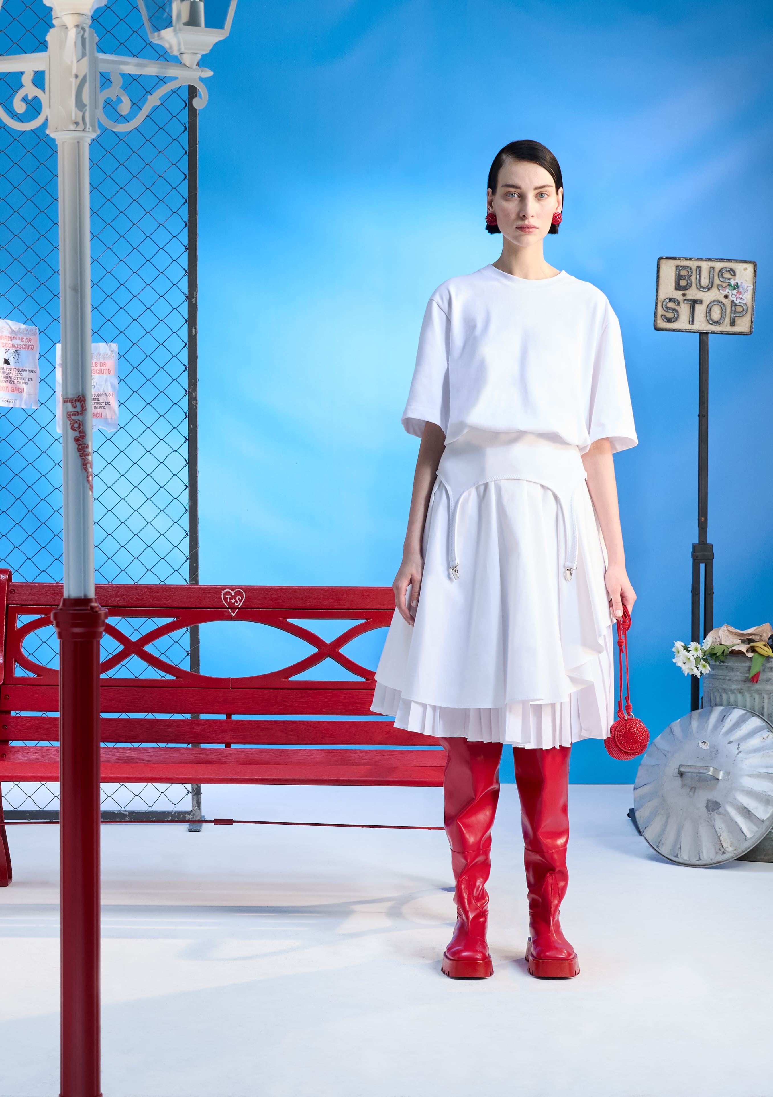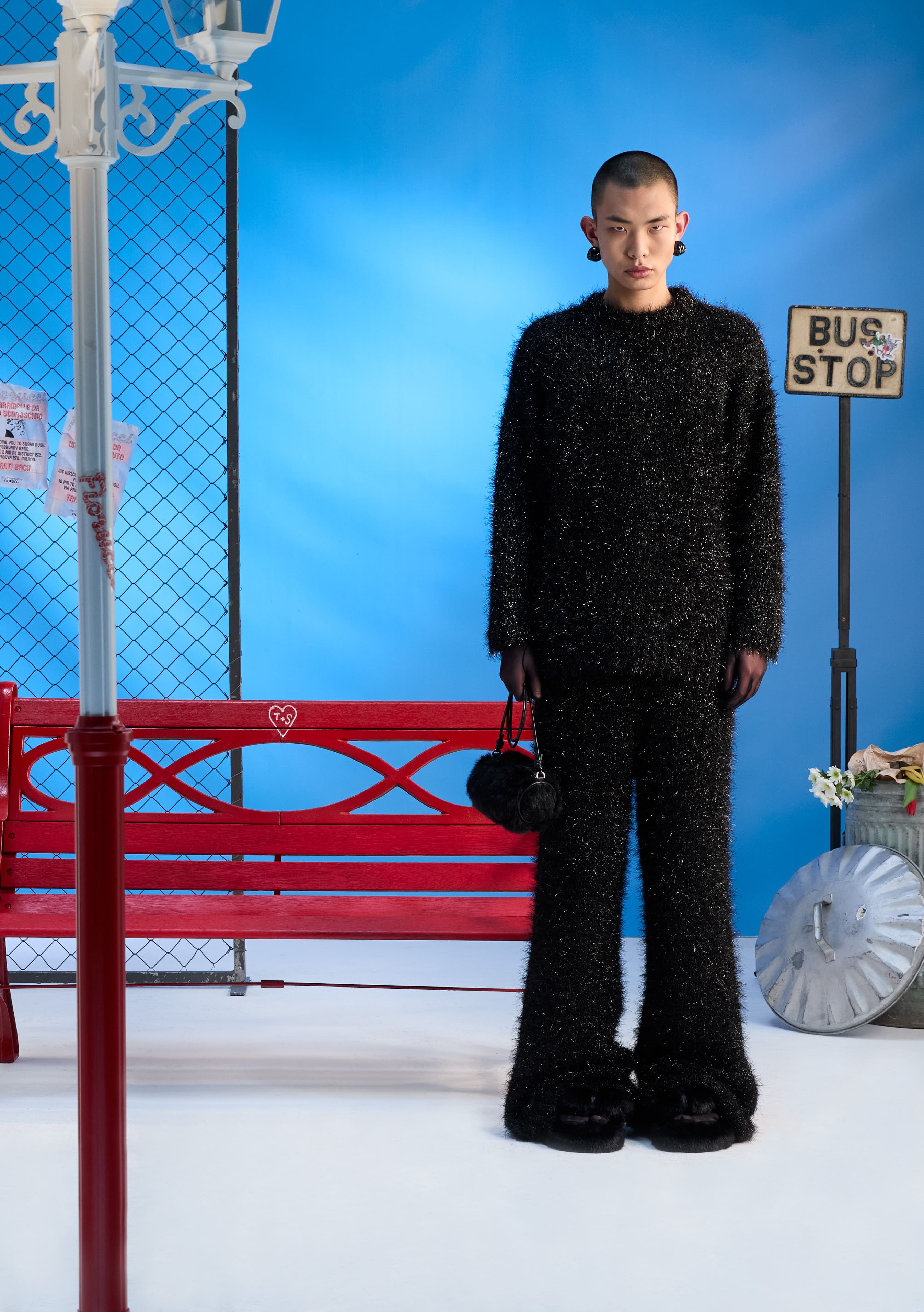 The "Mella bag" is renewed with new dimensions and materials for this season, including a version entirely covered in rhinestones, ready to become a distinctive element. Francesca Murri's utopia manifests in the "puffy piping" concept, which starts from the innovations of "fluff flops" and extends to knitwear, coats, and jumpsuits, outlining a cohesive and updated vision. Shirting takes on a central role, transforming the classic button-down shirt into a remarkable piece, where lollipop-shaped buttons celebrate the creativity and unique identity of the maison. Completing the picture, the concept of prints adds an additional layer of inventiveness: summer ice pops transform into elements of a contrasting winter, while the oblique lines of lollipops and ice creams become distinctive motifs in prints and jacquards. This practice of reinterpreting prints and archival artwork in a contemporary key infuses the collection with freshness that reconnects to the past while projecting towards the future.