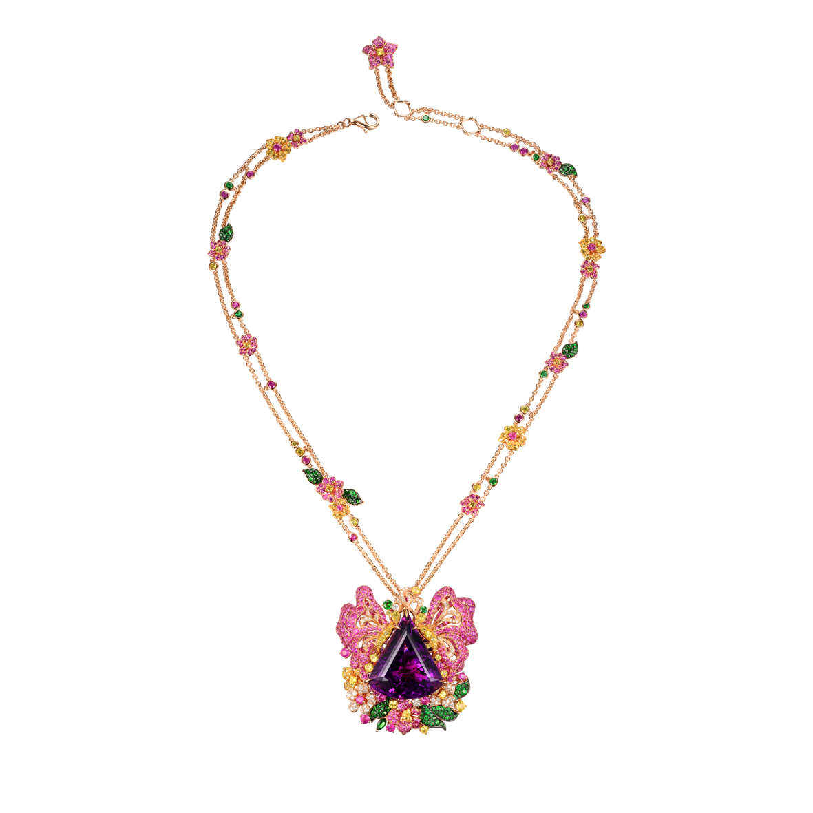 Fabergé x James Ganh White and Yellow Gold Tourmaline, Amethyst,Sapphire, Ruby and Pearl Necklace