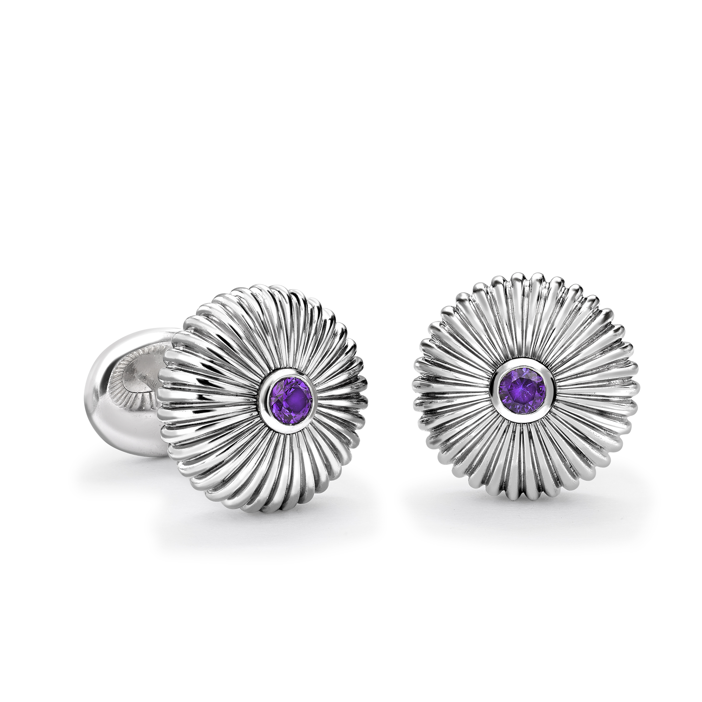 Colours of Love Sterling Silver Amethyst Fluted Round Cufflinks