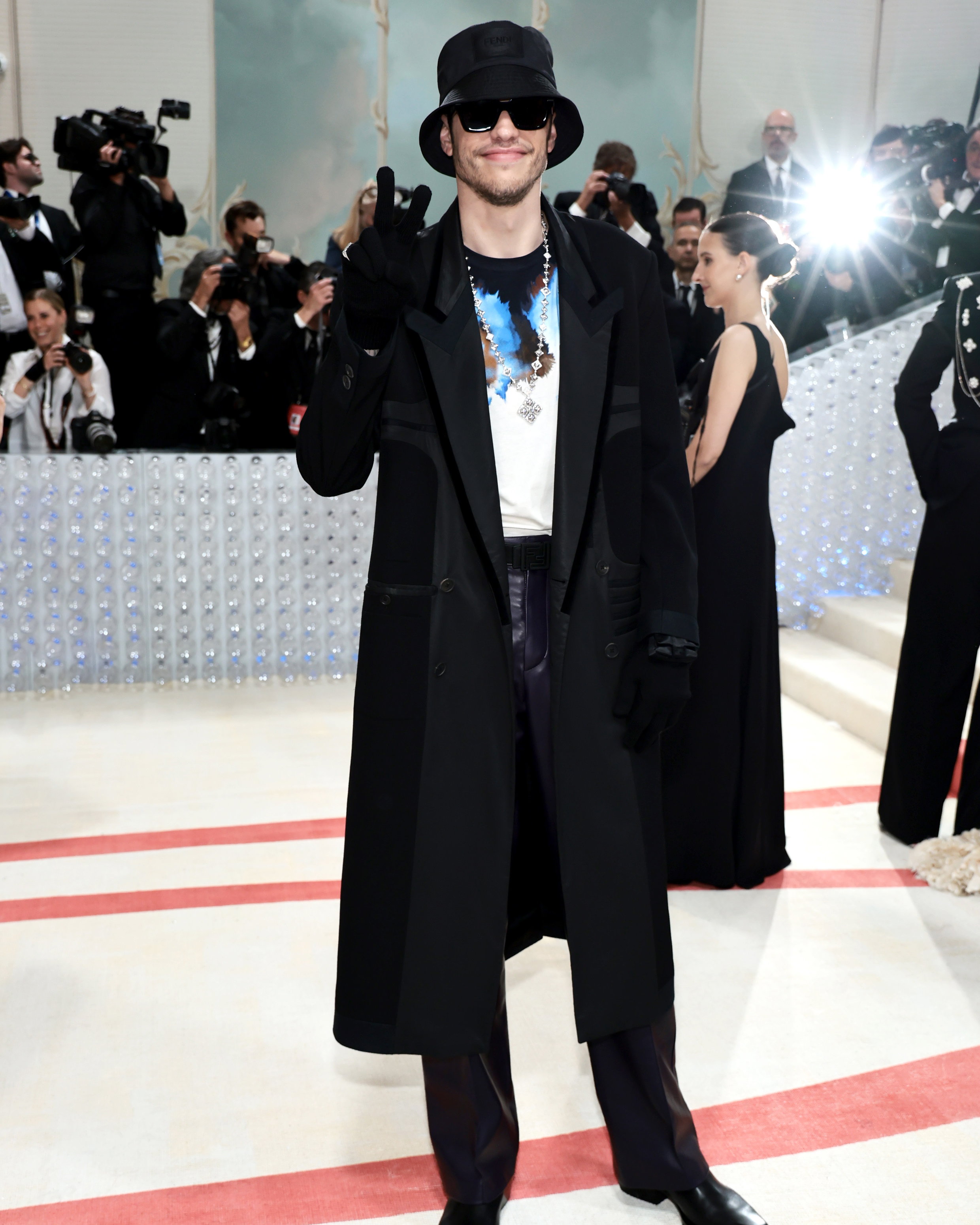 Actor and comedian Pete Davidson wears custom FENDI Mens by Silvia Venturini Fendi.