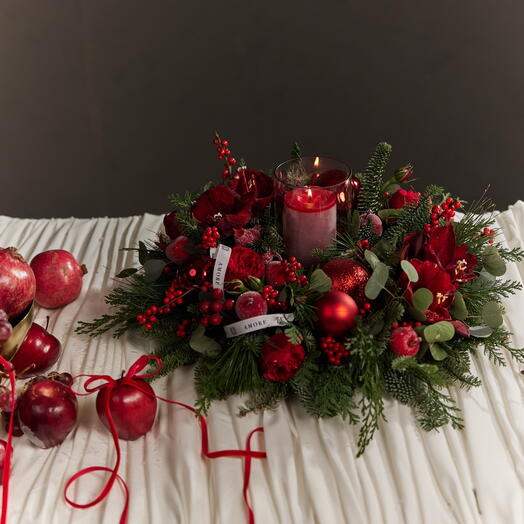 Create a warm and inviting atmosphere with our Golden Christmas Centerpiece. A dazzling display of gold accents, greenery, and festive foliage, perfect for adding a touch of luxury to your holiday decor.