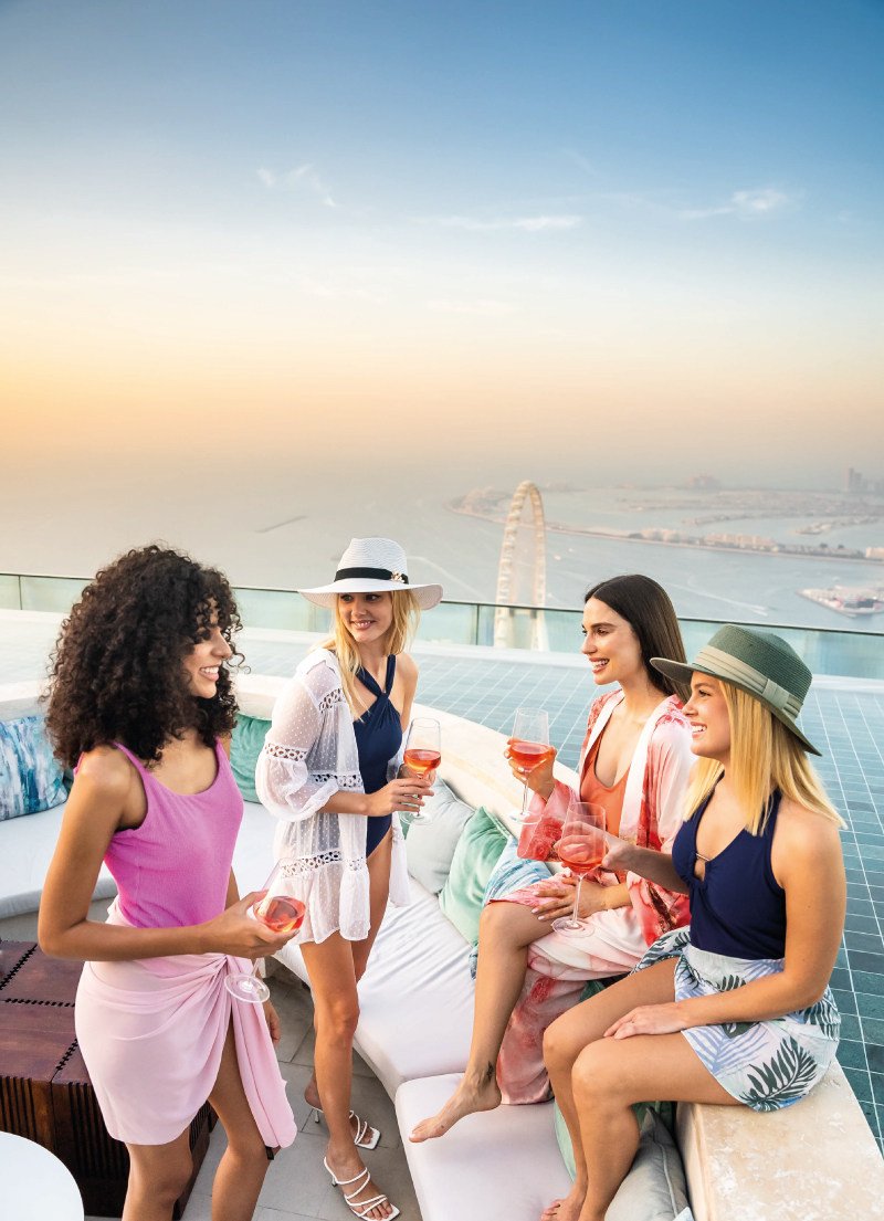 Drift above the Dubai skyline at the most enviable location the city has to offer. Every Friday, ladies can share delicious tipples in the most luxurious surroundings. Groups of up to 7 ladies can book a full private cabana from 9.00 am to 6.00 pm inclusive of 1 bottle of Magnum Rose grape and pool access for just AED2,777. To complete a surely perfect day, the Ladies Day menu is available from 6.00 pm to 9.00 pm for just AED177 per female guest, including 3 selected drinks, while gents can enjoy 3 drinks for AED277.