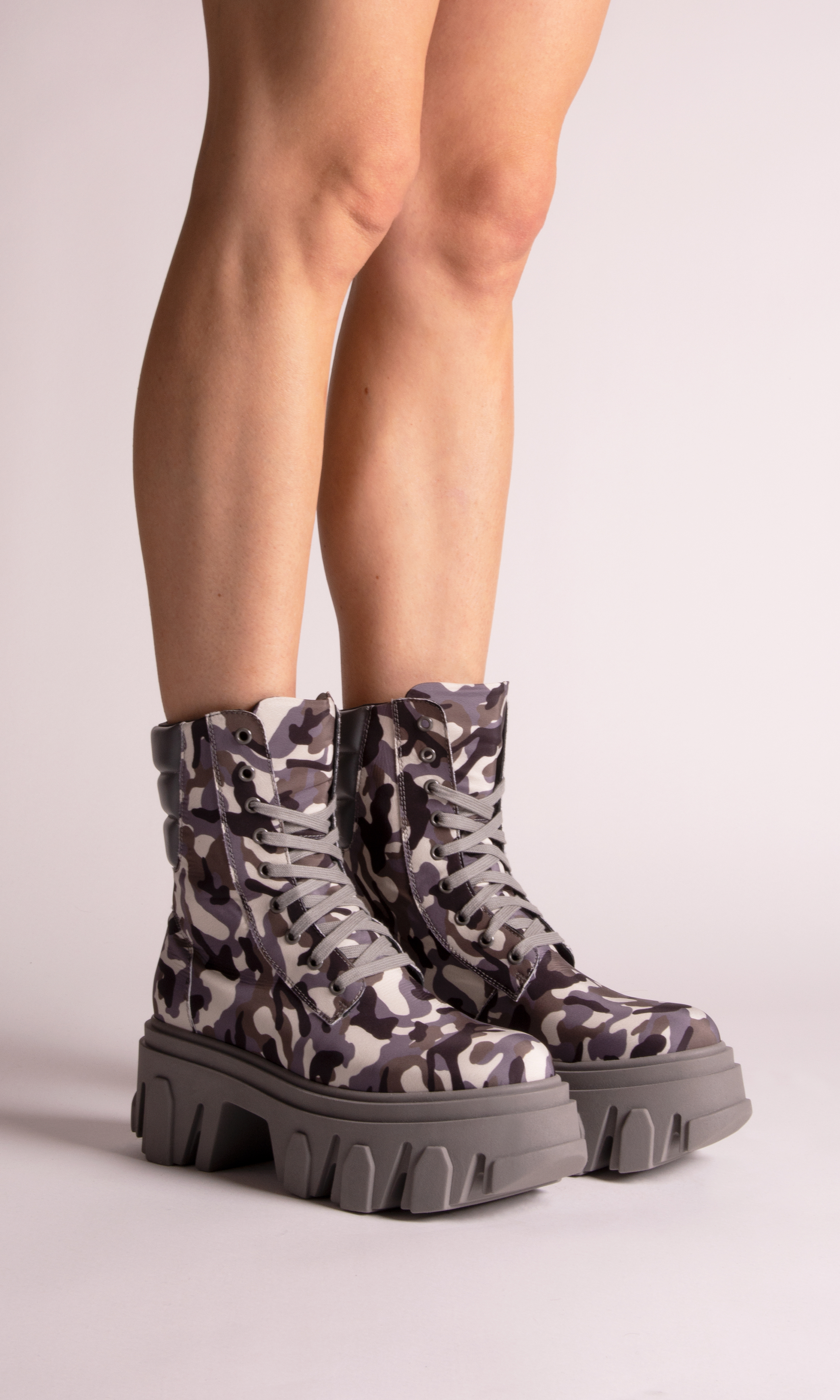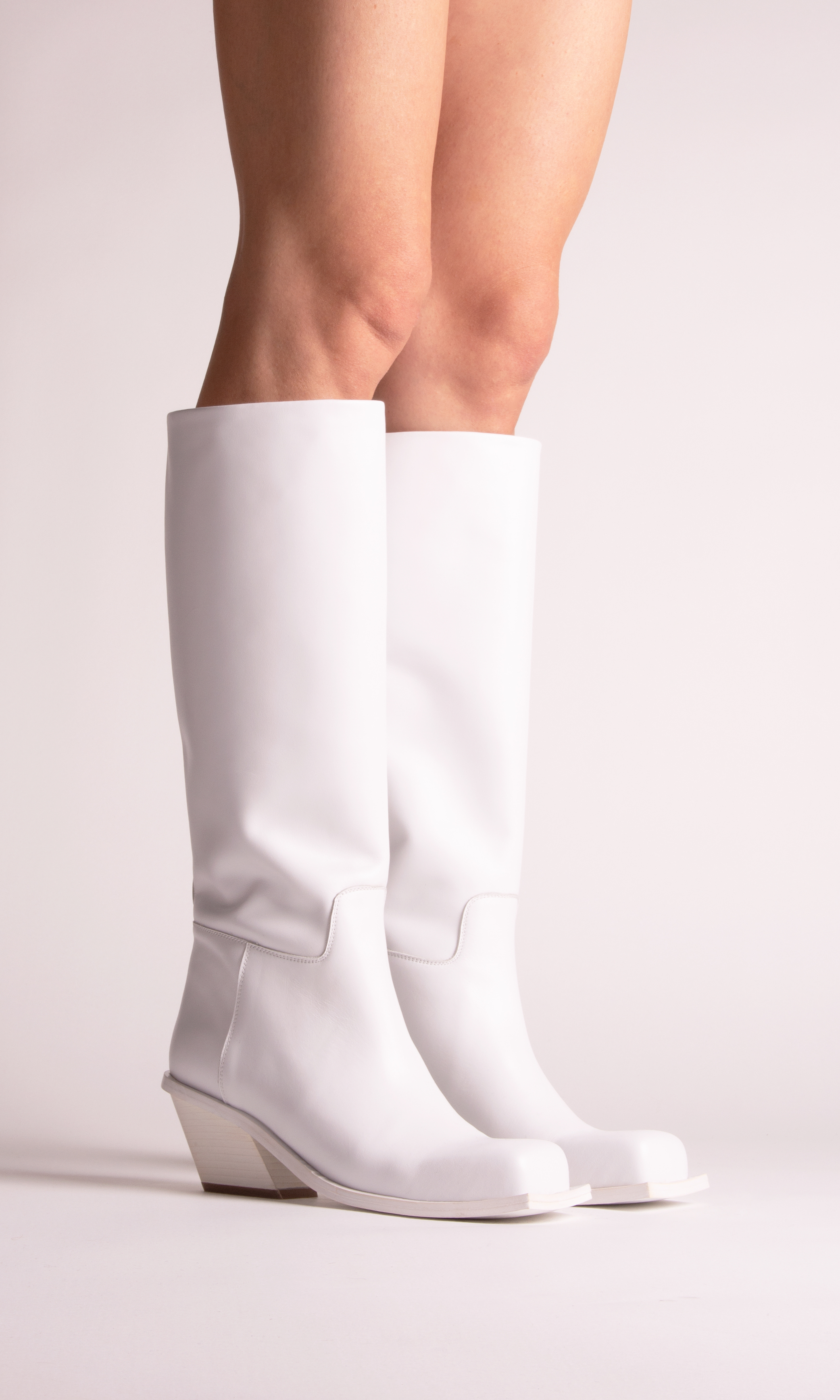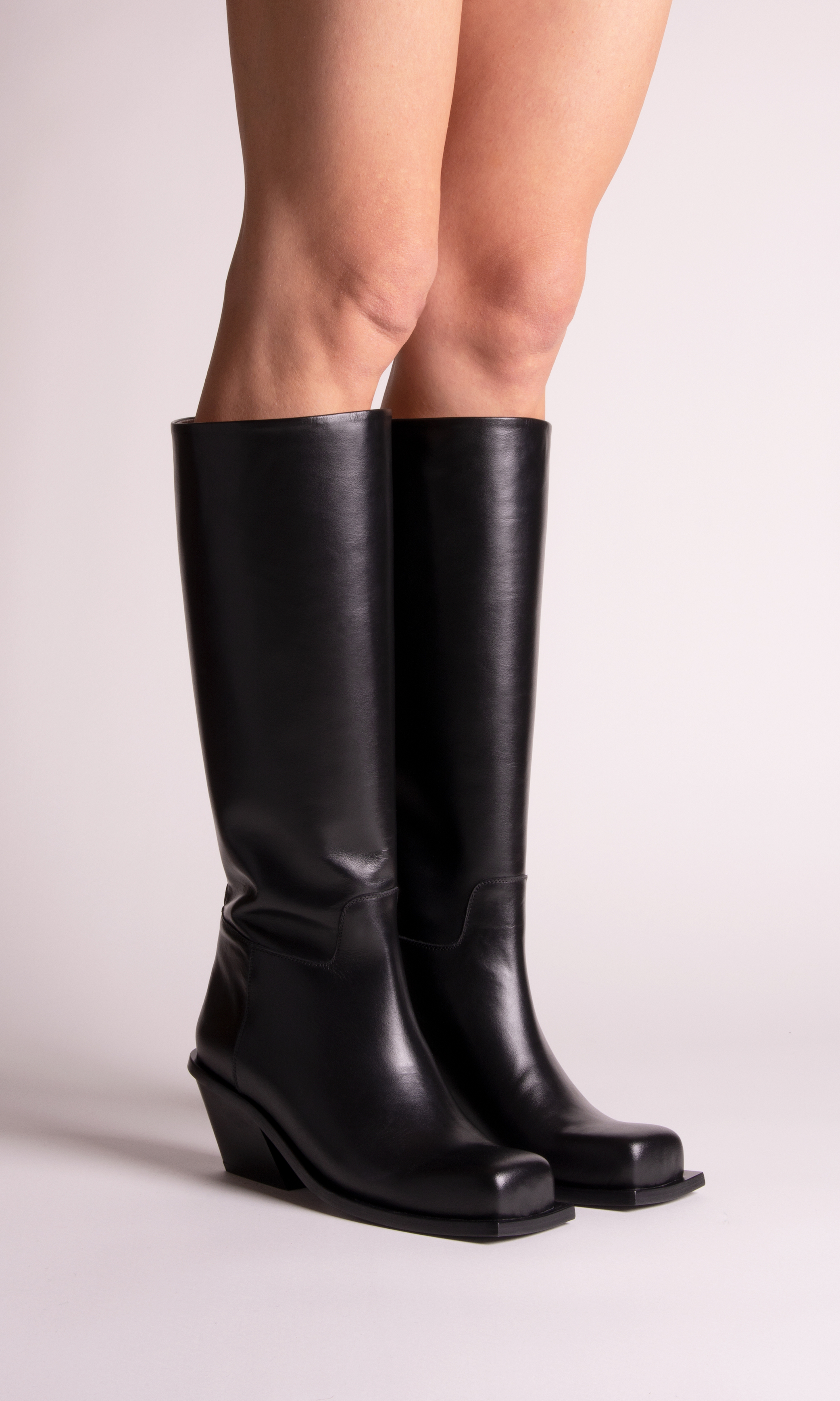 Rooting the look into street coolness, a chunky rubber sole appears both on laced-up booties and sleek tubular boots. A season’s must-have, the cowboy boot is reworked with a squared toe adding graphic precision to the collection.
