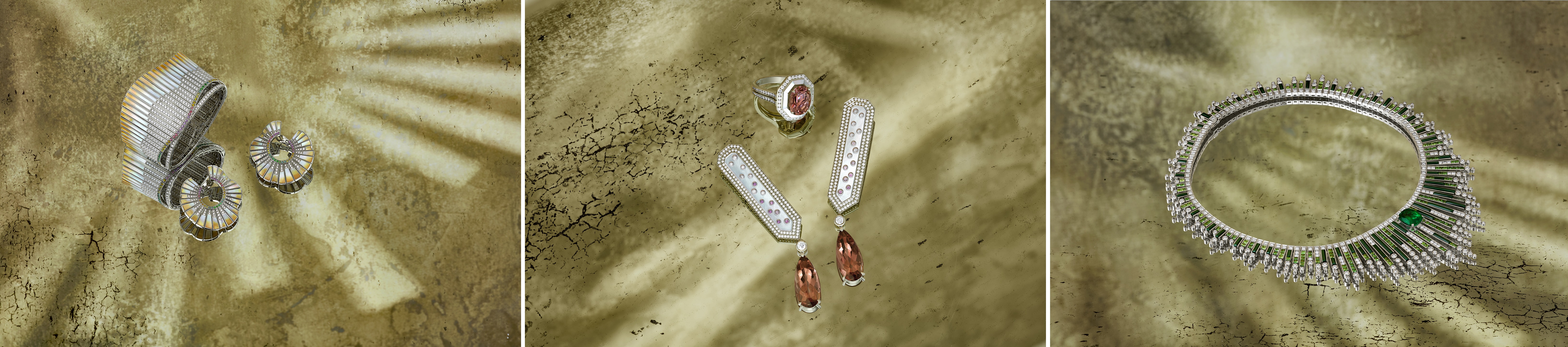 Inspiring avant-garde ways of wearing high jewellery, Couture launches with a series of spectacular suites – Amazonia, Desert Rose, Northern Lights and Mustique. Venturing into unchartered design territory, they explore different colours, techniques and innovations, play with unique stones and materials in unexpected combinations, and experiment with size and shape.