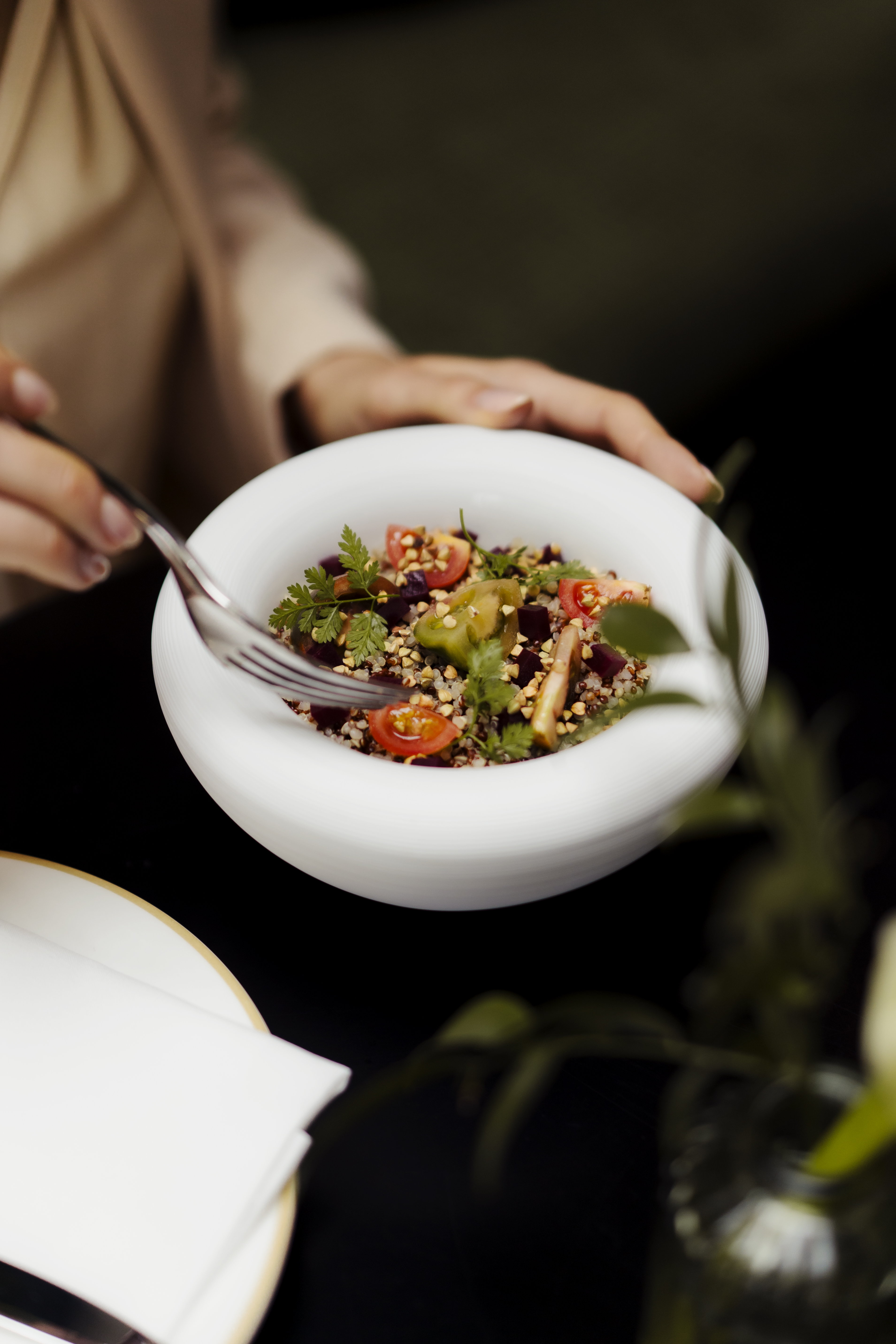 The real highlights, however, are twofold: the cuisine and the world of mocktails. The menu is an ode to the abundance of a garden, a symphony of flavors carefully curated to awaken the senses. Not only that, but the presentation of the dishes is impeccable. Every plate is crafted with attention to detail, and the colors and tones of the compositions evoke joy and a sense of desire.