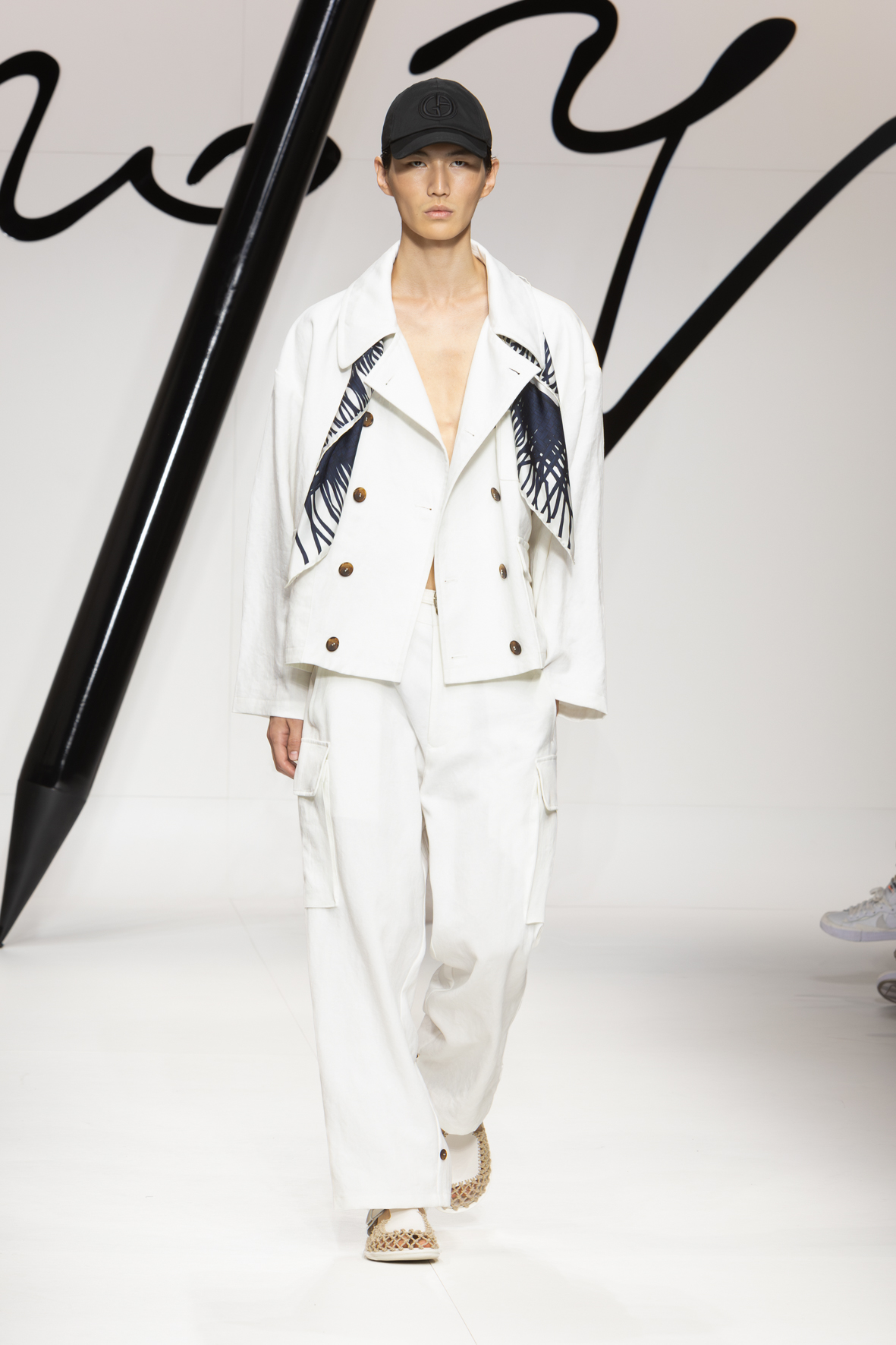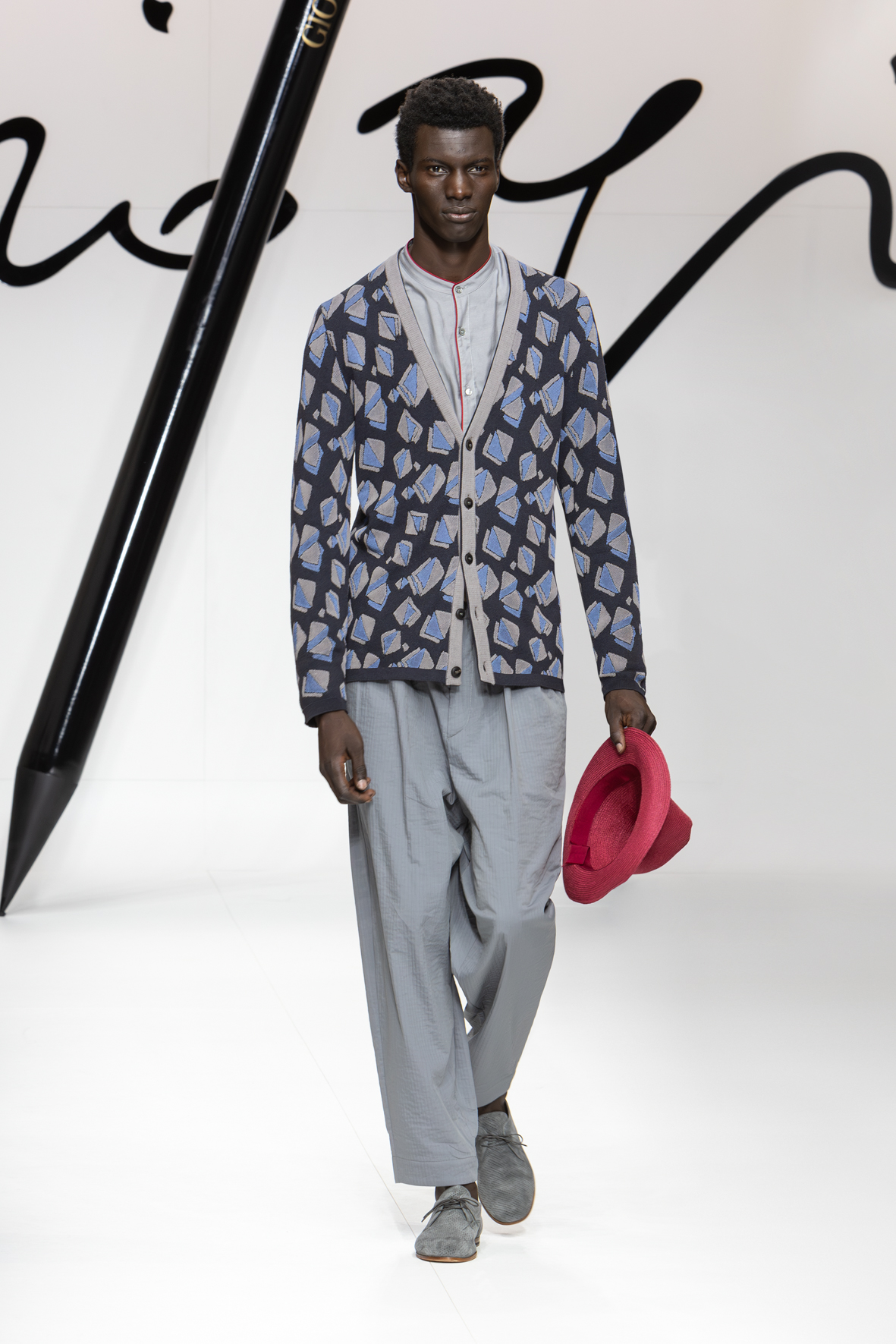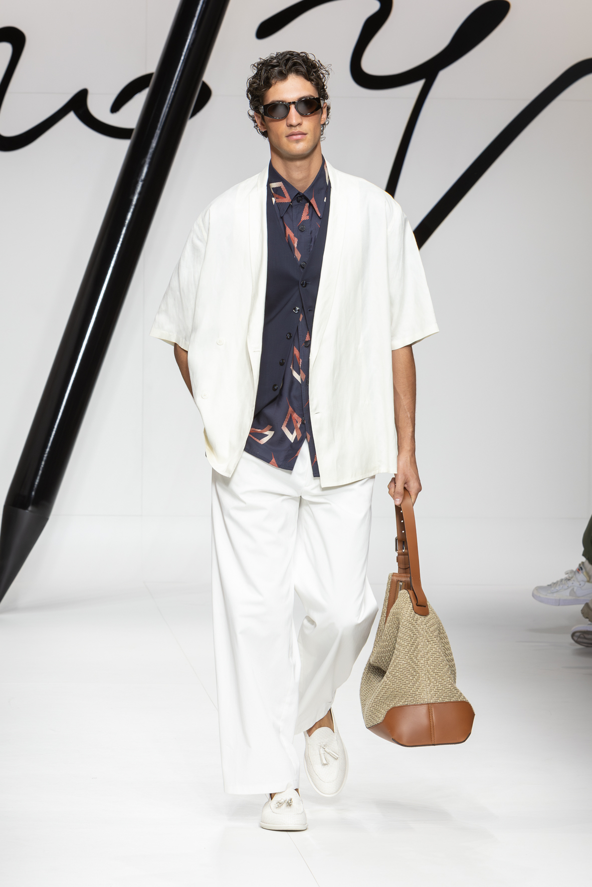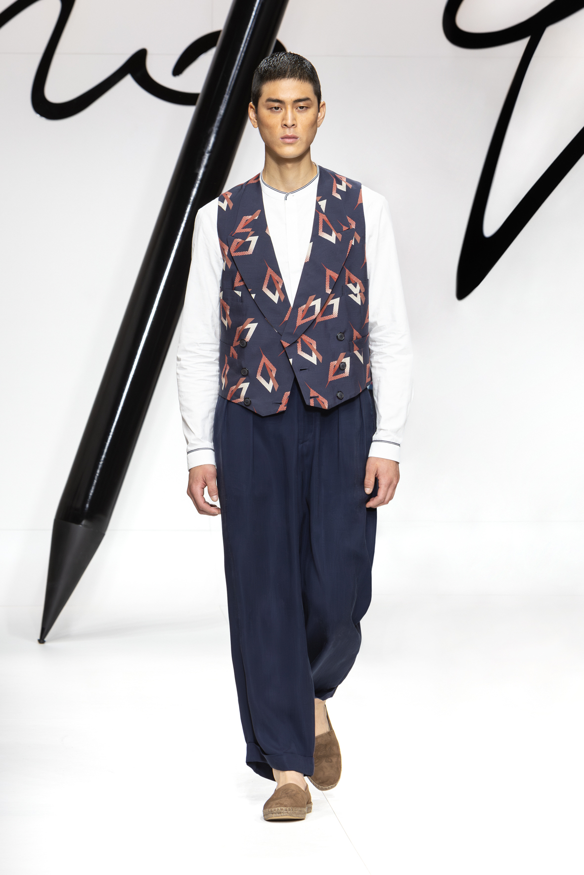 Narrating a certain style is a constant process of writing and rewriting. It involves examining familiar elements from different angles to craft new plots and weave new stories. Giorgio Armani’s story always stems from the same unwavering urgency: to clothe the present with a vibrant, authentic sign fashioned from dignity and elegance. This collection reiterates the code while weaving a new storyline: forms are soft and lengthened, intertwining threads either actually woven or evoked in prints that imitate knots, weaves with a summery feel, and geometric motifs for rhythm.