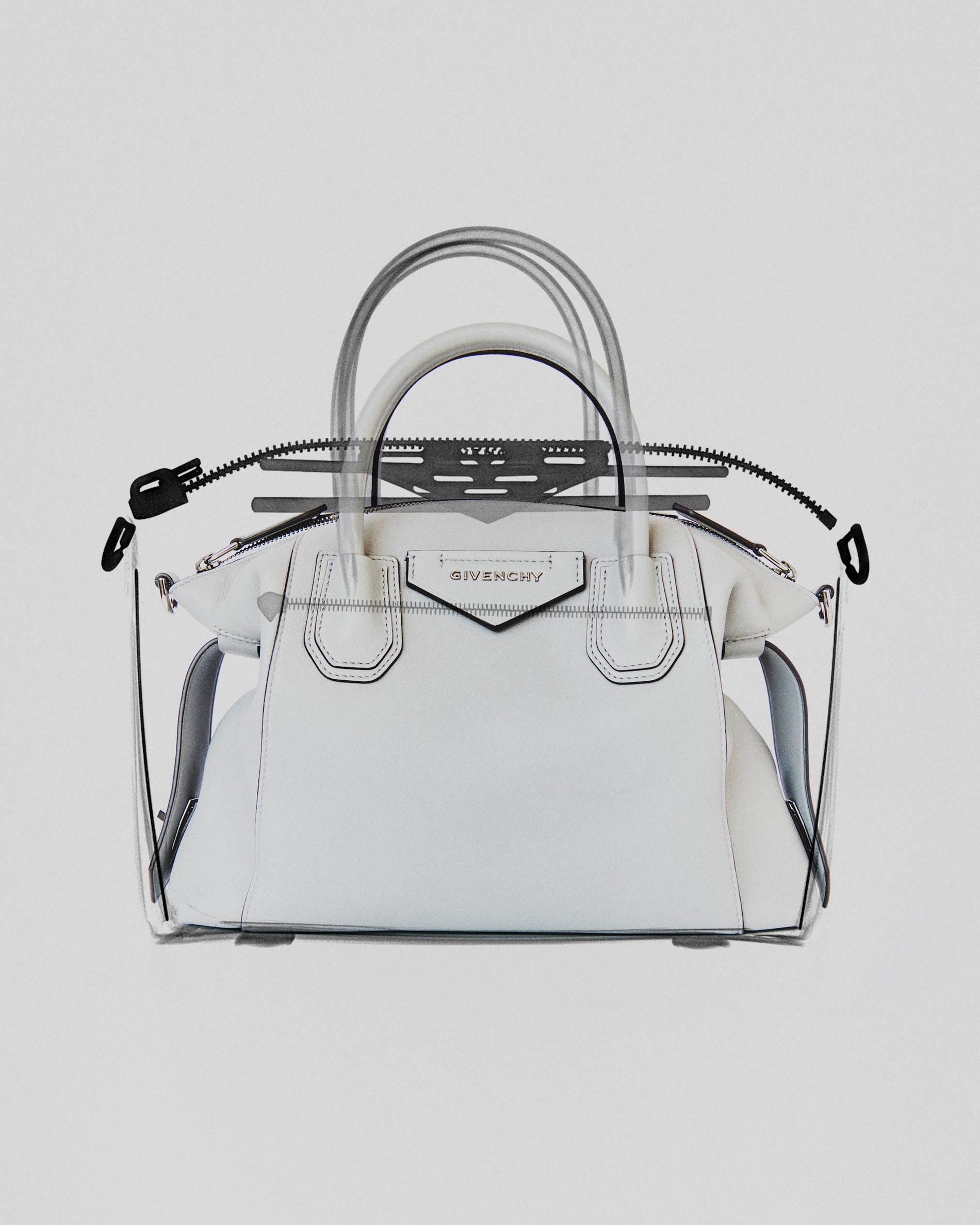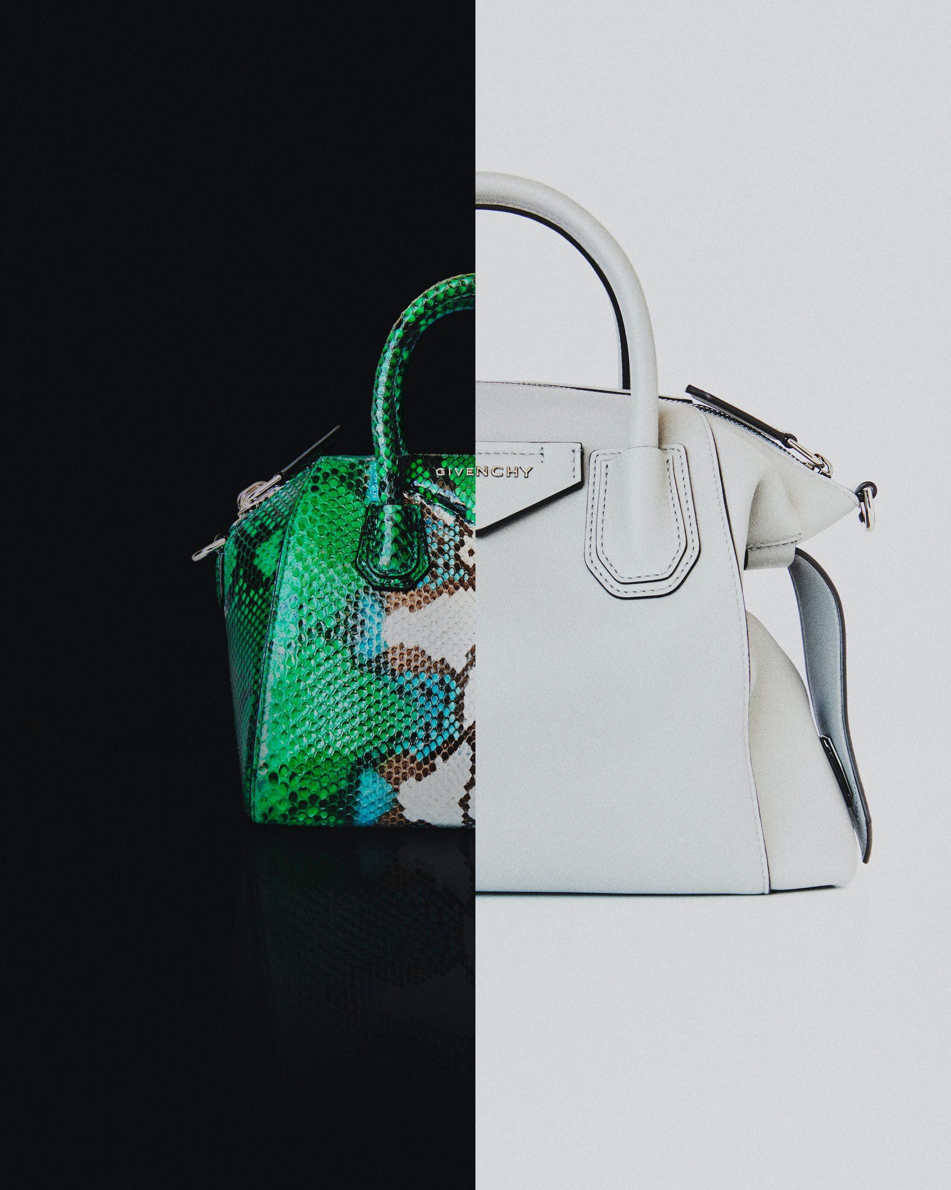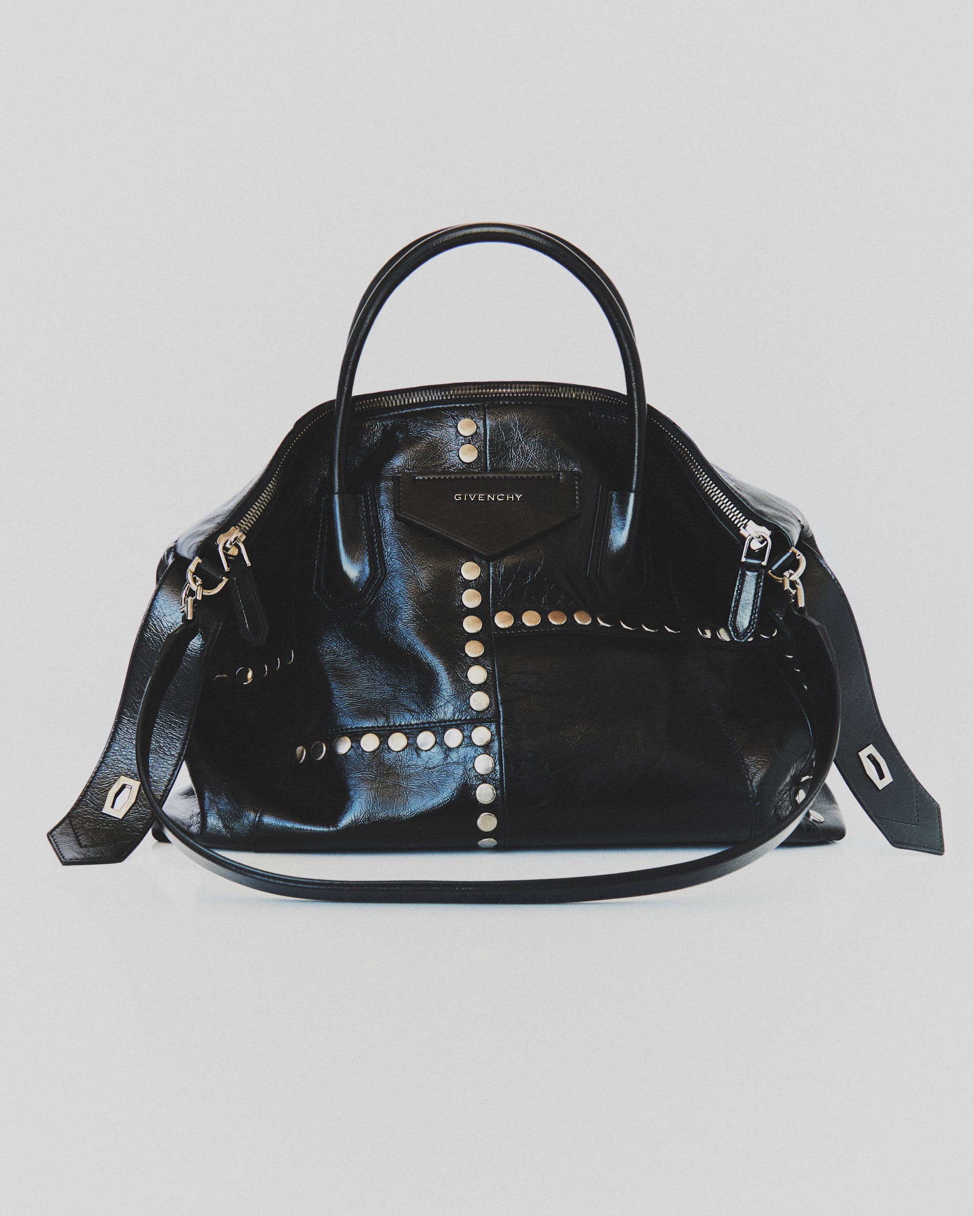 Rooted in the Givenchy couture heritage of elegant ease and masculine/feminine duality, the Antigona Soft is defined by generous proportions and a shape that lets it move from day to weekend with all the effortless versatility of a favorite leather jacket. On the runway, it was shown wrapped in large, contrasting silk scarves twisted and knotted around the handles, a visually impactful yet casual-looking way of accentuating individuality and graphic appeal.