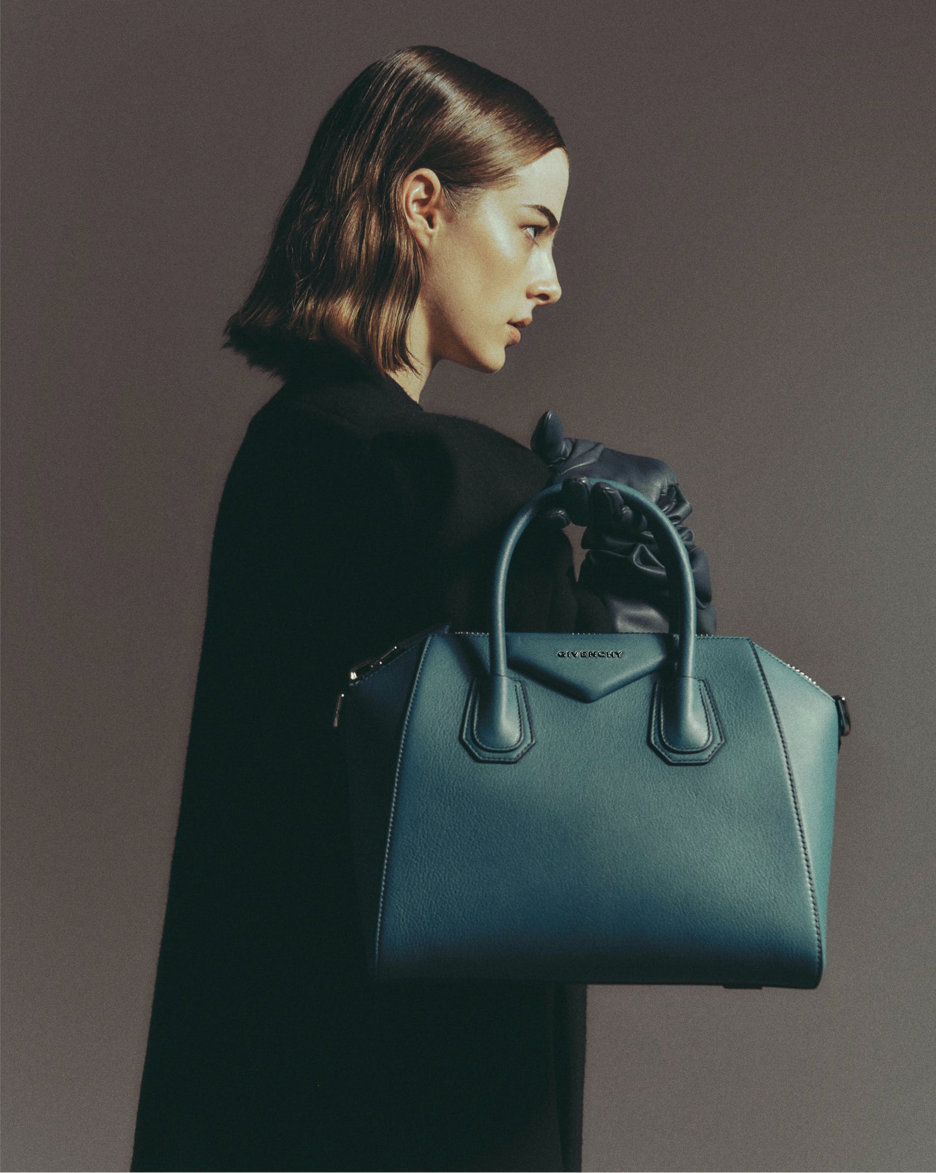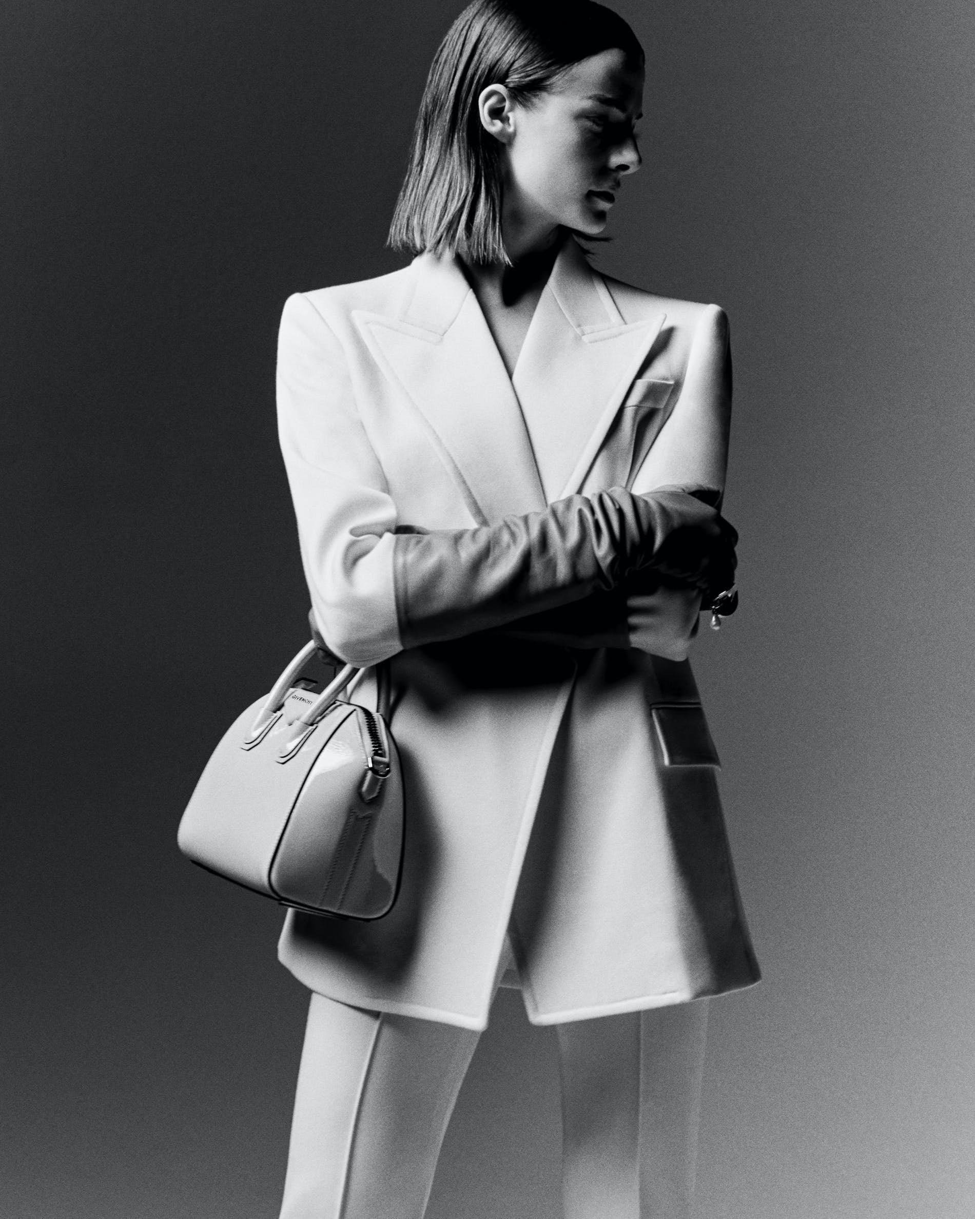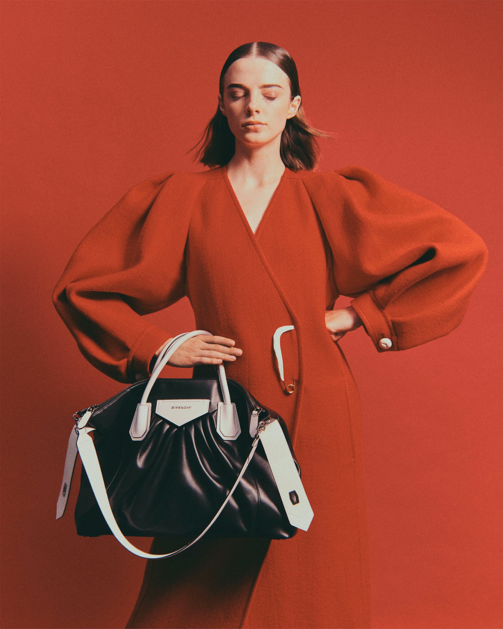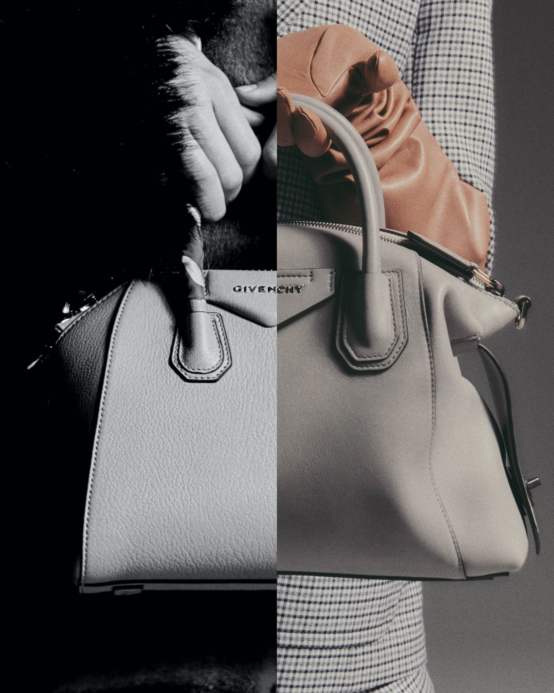 Rooted in the Givenchy couture heritage of elegant ease and masculine/feminine duality, the Antigona Soft is defined by generous proportions and a shape that lets it move from day to weekend with all the effortless versatility of a favorite leather jacket. On the runway, it was shown wrapped in large, contrasting silk scarves twisted and knotted around the handles, a visually impactful yet casual-looking way of accentuating individuality and graphic appeal.