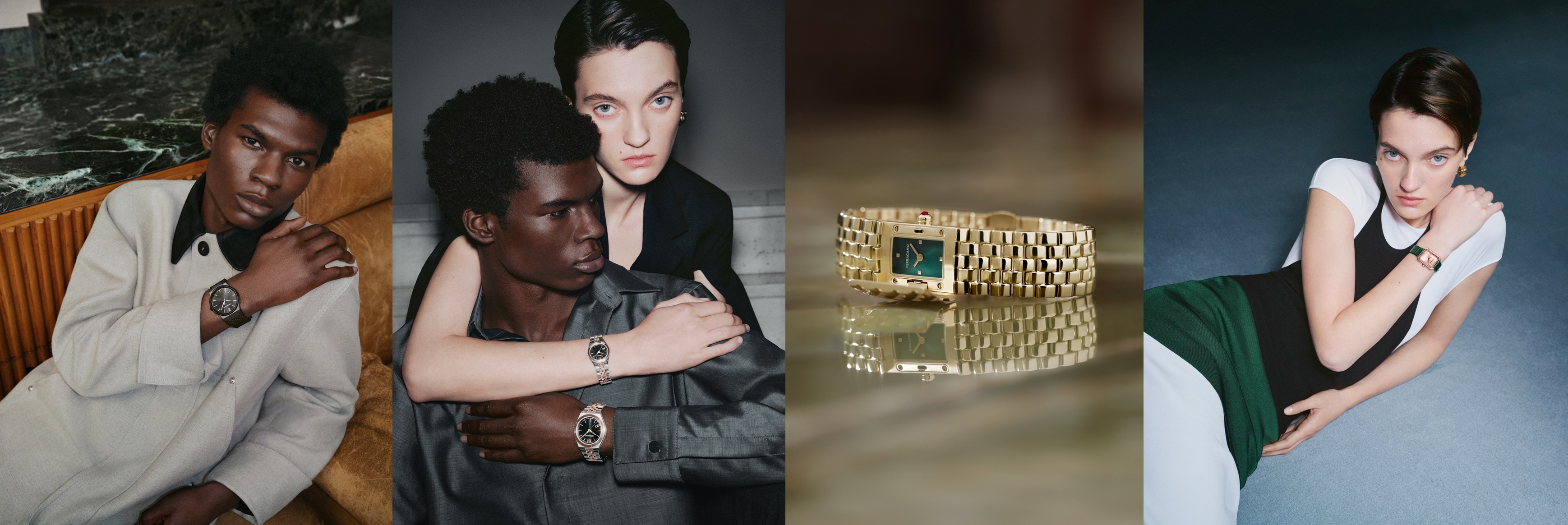 A new expression of one of Ferragamo’s iconic collections, the Vega watch embodies sophisticated yet casual luxury, presenting a thinner and more modern case in the men’s (40mm) and women’s (28mm) versions – both finished with the engraved “F” on the crown. The case and 5-link bracelet come in a two-tone steel and rose gold finish, while the guilloché dial combines the graphic elegance of the horizontal black lines with the emblematic double Gancini detail at 8 o’clock and on the second hand.