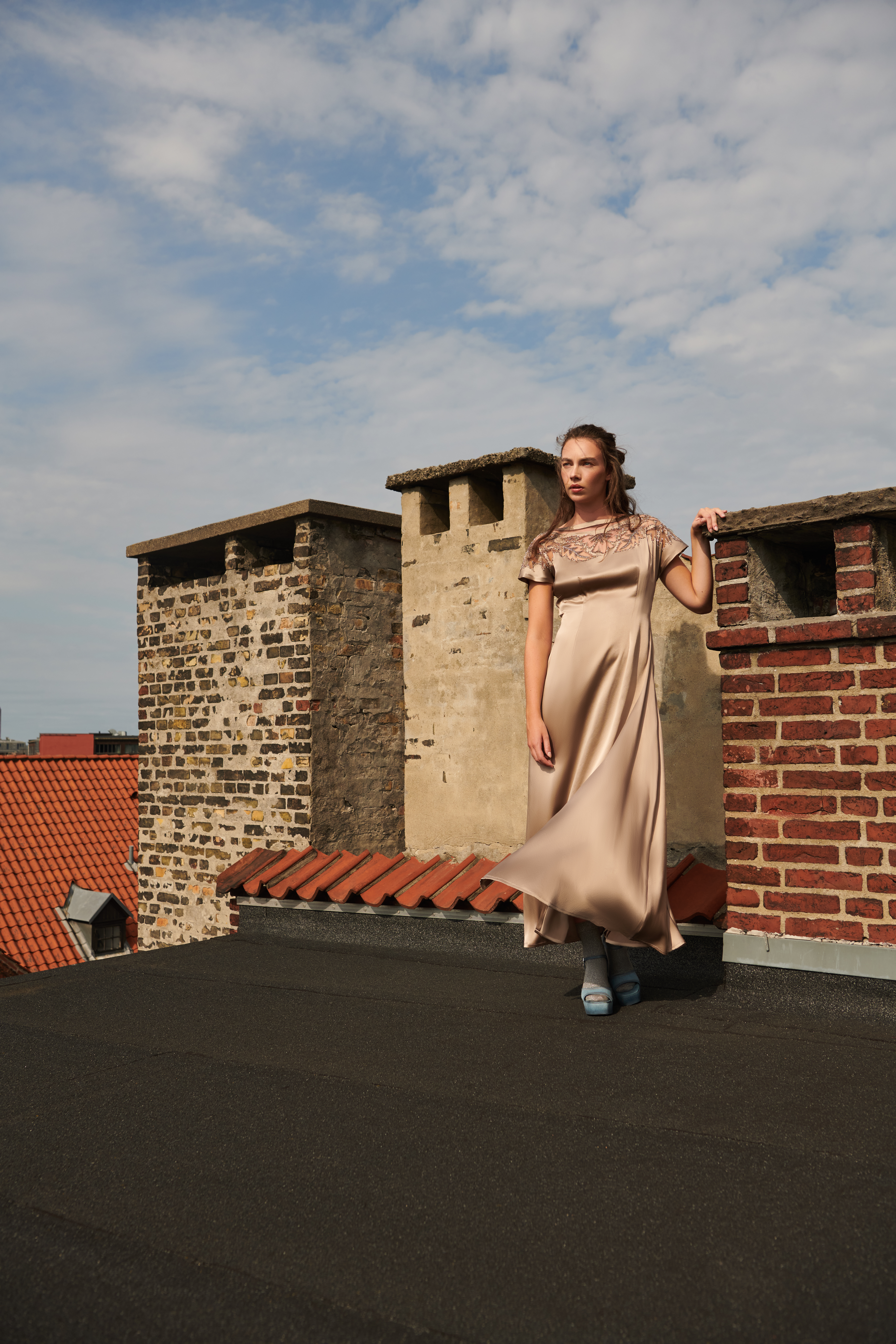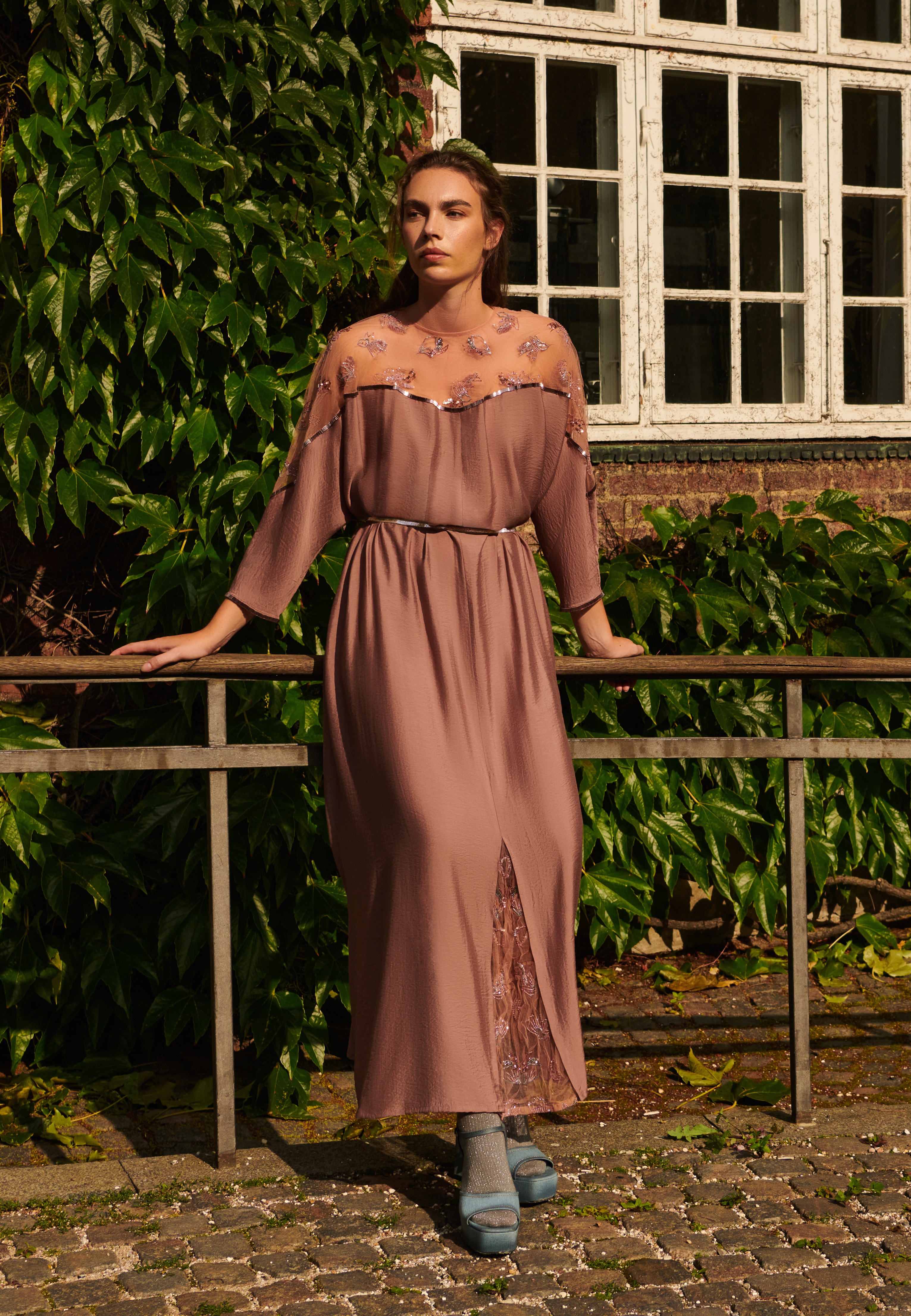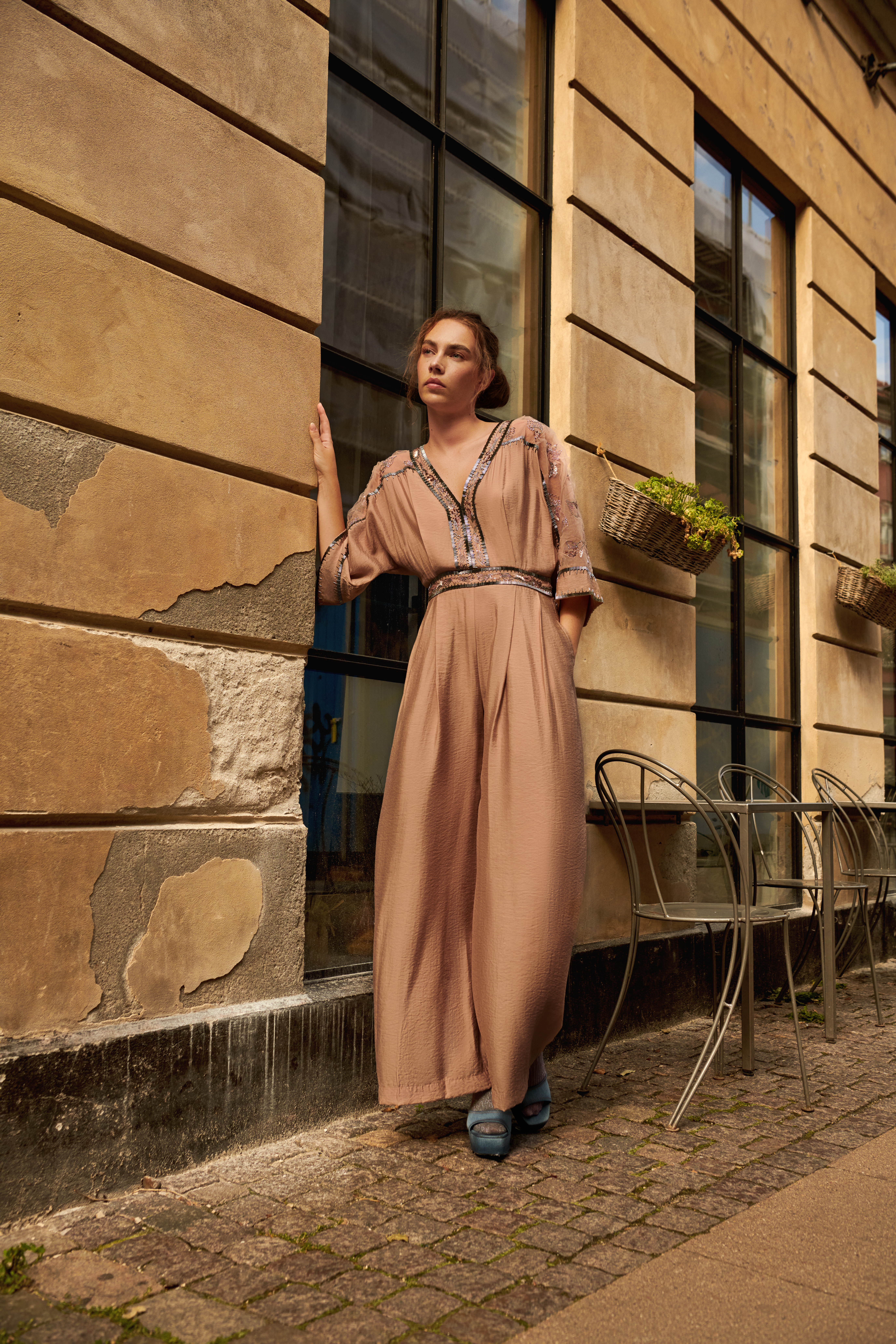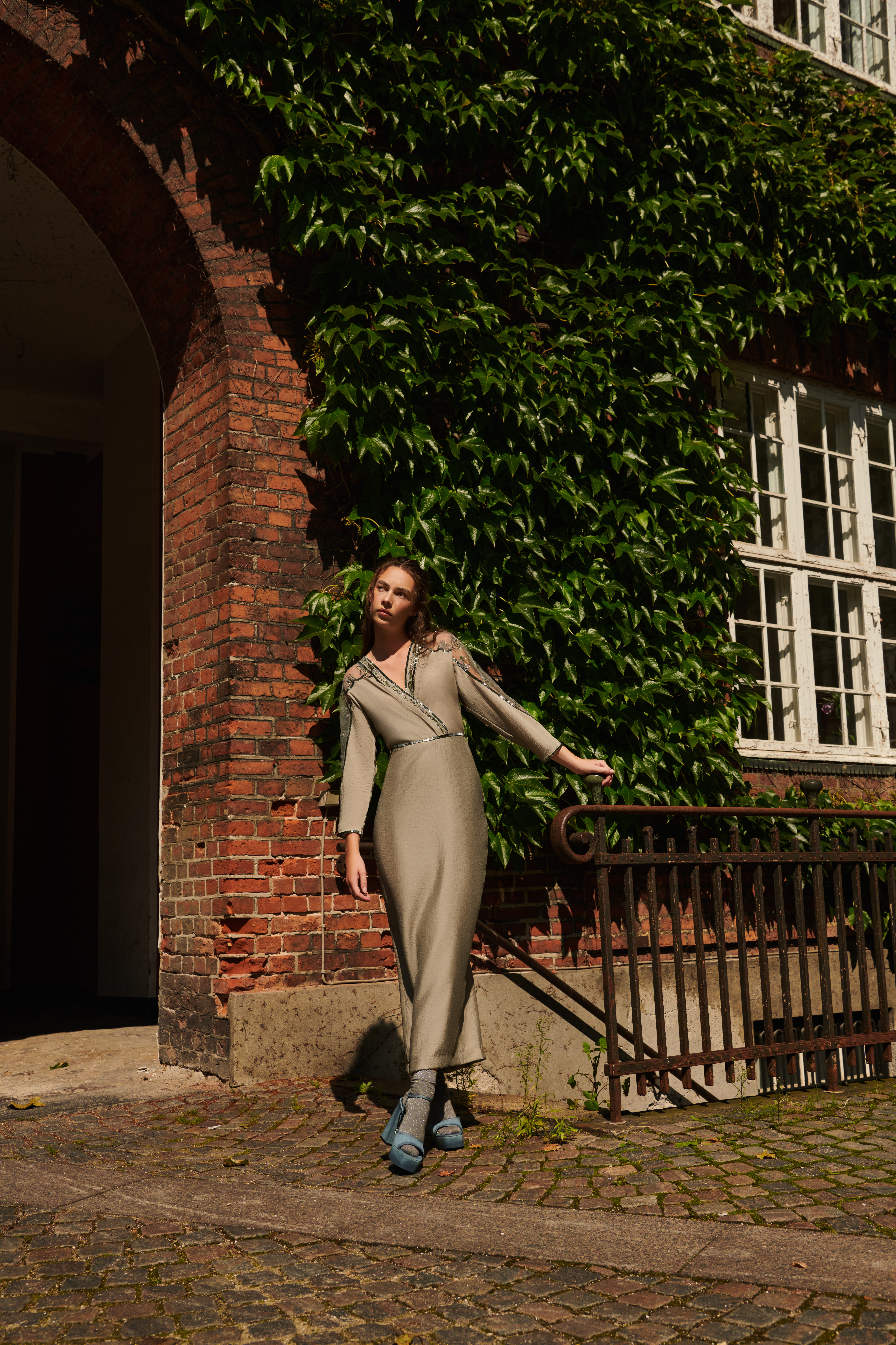 An array of flowy silhouettes of long dresses, kaftans & cape-like coats is accentuated with a modern take on embroidery patterns, tying each look togther. This season, Hashimi introduces cutout patterns & sheer embroidery patterns, enhancing the signature aesthetic. A calming harmony of tradition & modern emanates within each style.