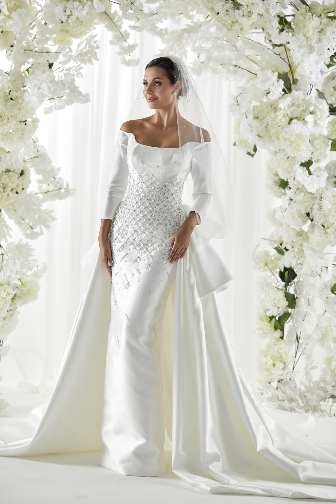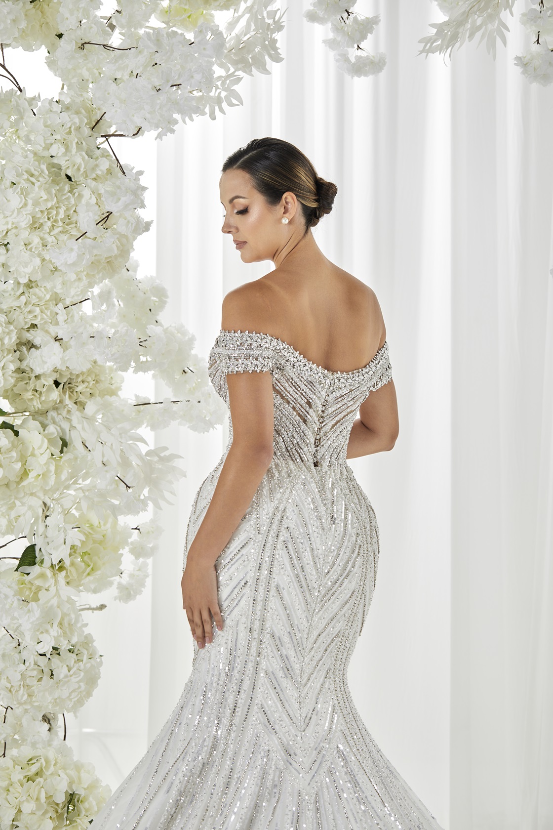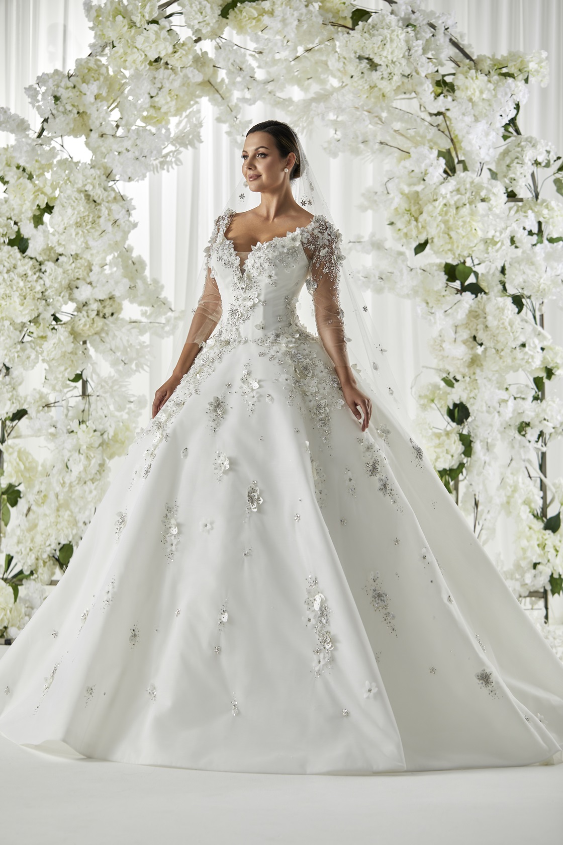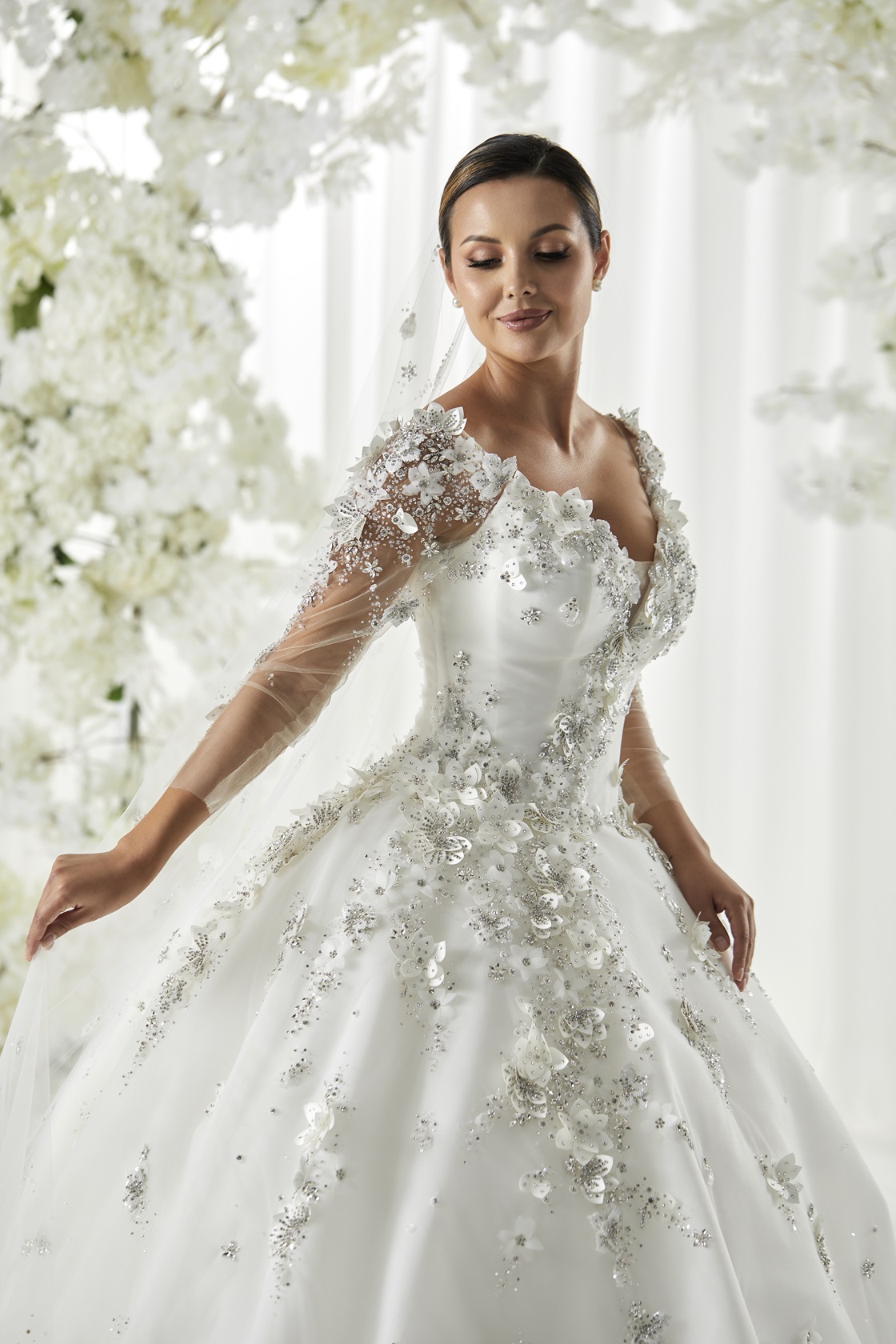 The collection offers a variety of silhouettes, from sleek, form-fitting designs to voluminous, dramatic gowns. Each silhouette is crafted to enhance the natural beauty of the wearer, offering something for everybody type and the personal taste and preference of the bride to be.