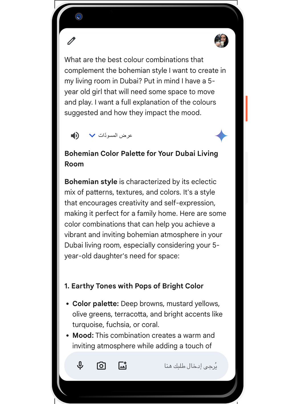 Gemini is currently available in various languages worldwide including English and Arabic. For Arabic specifically, you can use prompts in over 16 dialects such as the Egyptian Arabic colloquial, or the Syrian Arabic colloquial, and the model will understand your prompt and answer your question/inquiry in Modern Standard Arabic (Fush’a or MSA). People can even add their prompts - both by writing it or voicing it - in English or any other language and ask Gemini to share the answer in Arabic. You can access Gemini on desktop by gemini.google.com. If you have an Android device, you can download the Gemini app from the Google Play Store, and if you have an iOS powered device, you can access Gemini through Google’s official app.