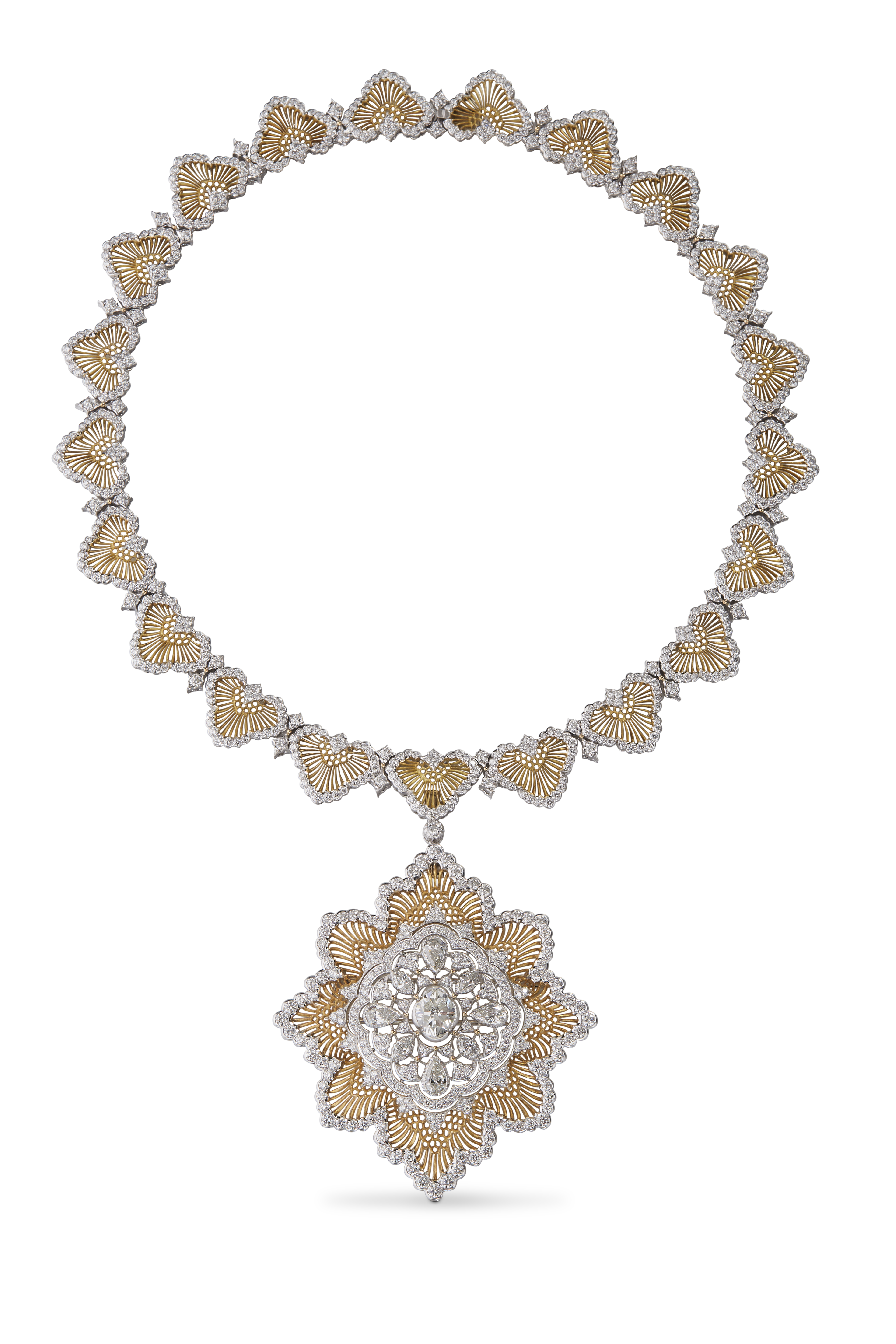 Lucrezia Buccellati: Yes, it's the piece I designed, a Tulle High Jewelry piece that will be showcased at the Biennale, reflecting my generation and my contribution within the Buccellati legacy. It's somewhat historic to create a piece exhibited at the Biennale. I collaborated closely with my father, maintaining constant contact with him, focusing on the movement and balance of every millimetre of it. My father provided significant assistance in the creation process, yet the piece still embodies my vision for Buccellati in its fourth generation.