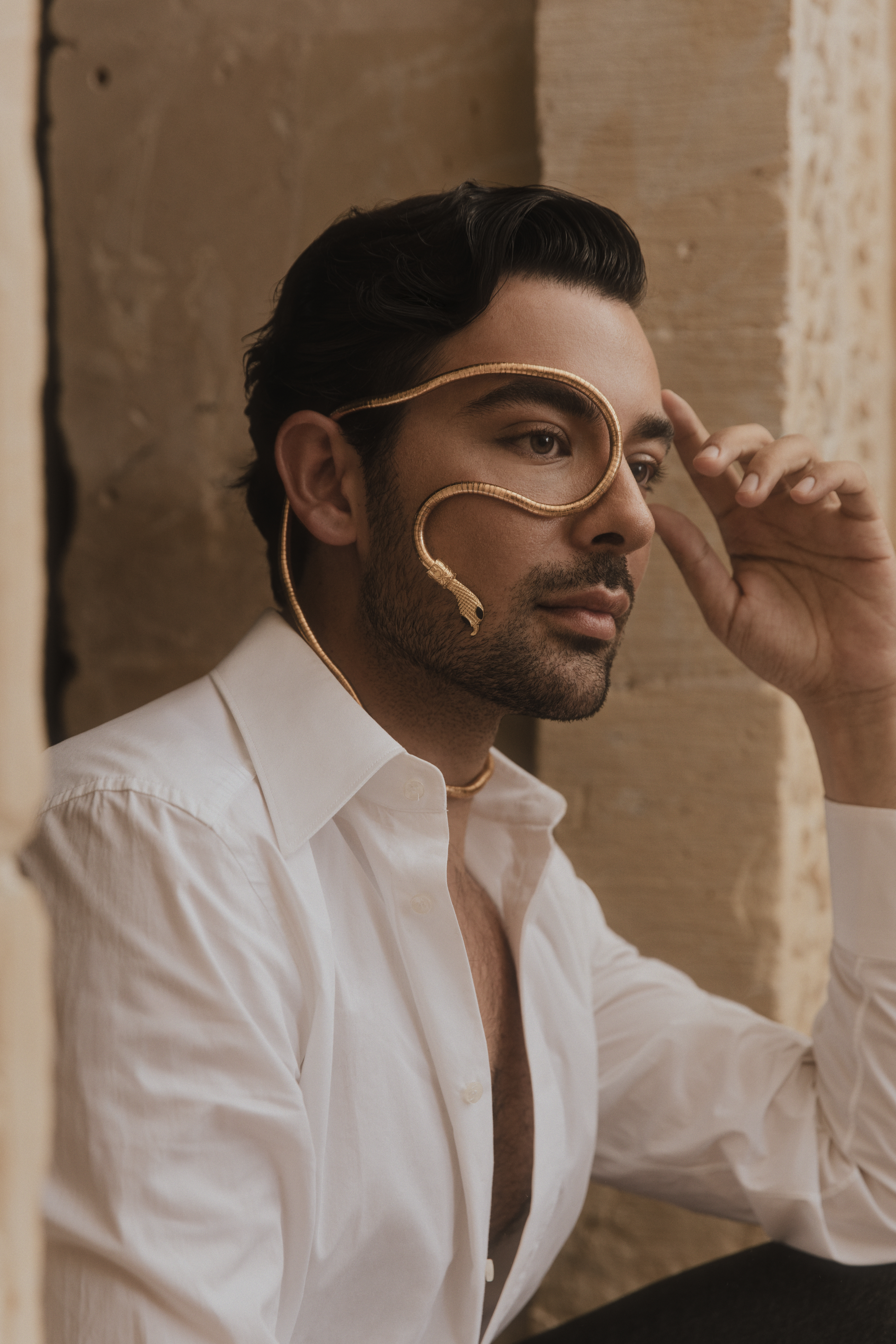 SERHAT ŞEN: When I first arrived at the Maridin Hotel, I was completely mesmerized. The golden light reflecting off the ancient stone walls, the breathtaking view over Mardin, and the sense of timeless history in every corner instantly set the tone for the shoot. It felt like stepping into a cinematic scene where tradition and elegance.