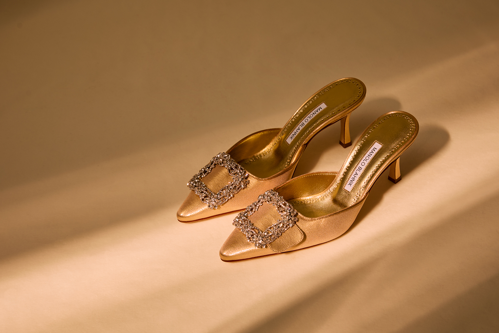 The MAYSALE mule, first introduced in 1991 for Isaac Mizrahi’s runway, returns in a shimmering new fabric, reinforcing its status as a fashion essential. The collection also brings a contemporary edge to heritage shoemaking with its light-catching ‘Liquid Gold’ material, embodying the perfect balance of innovation and tradition. Each design in the collection reflects Manolo Blahnik’s unwavering dedication to excellence, with artisans in the brand’s Italian atelier bringing these masterpieces to life.