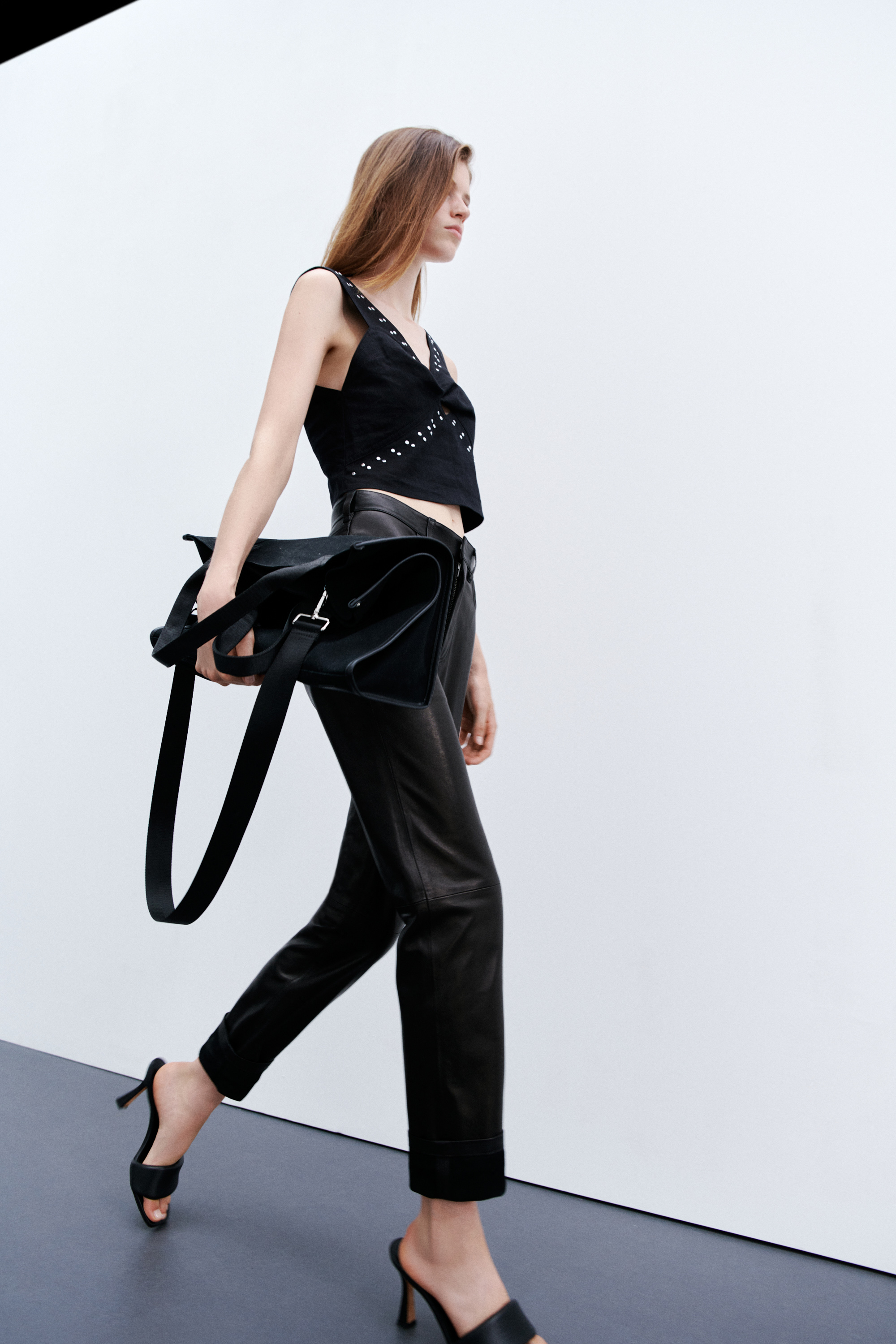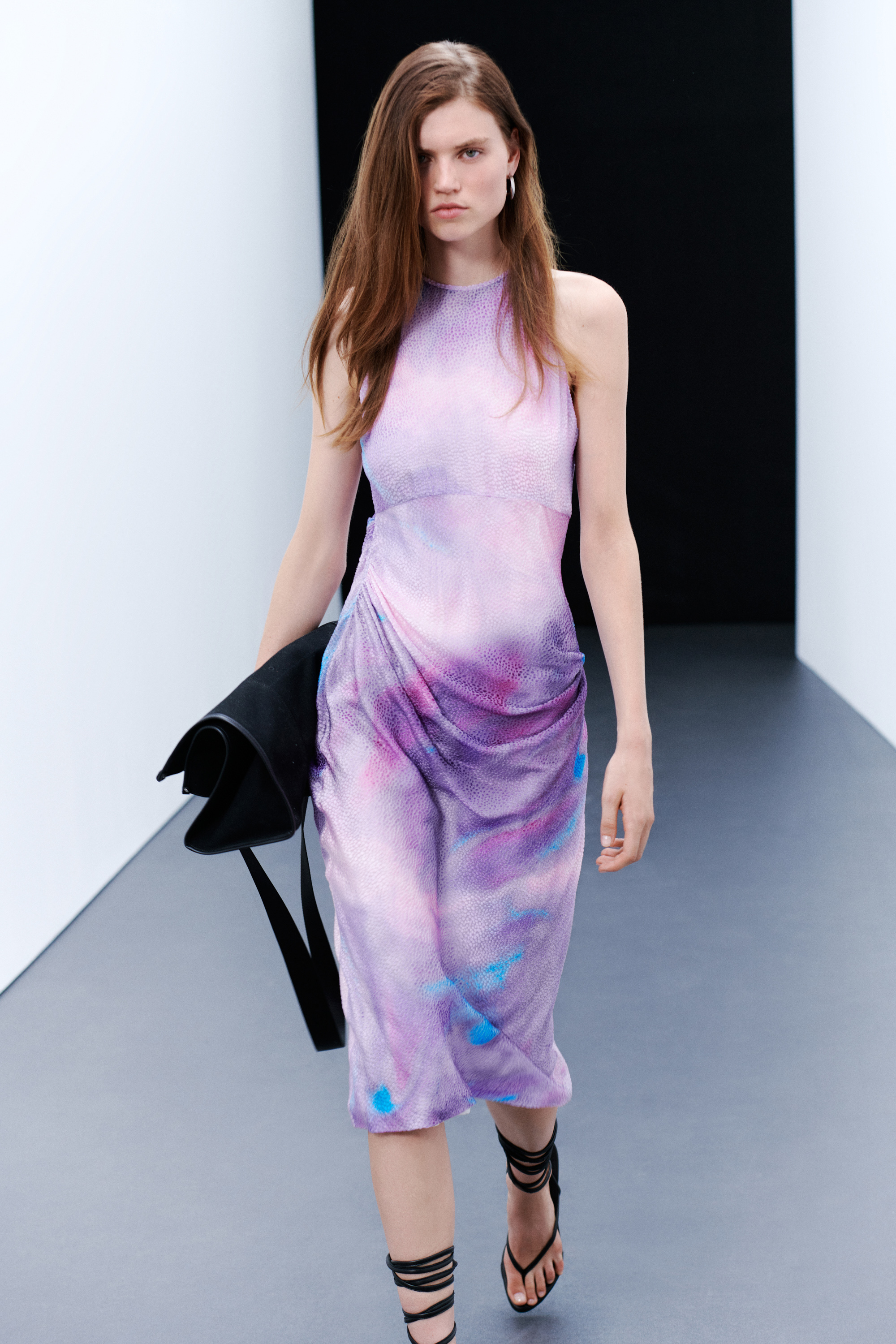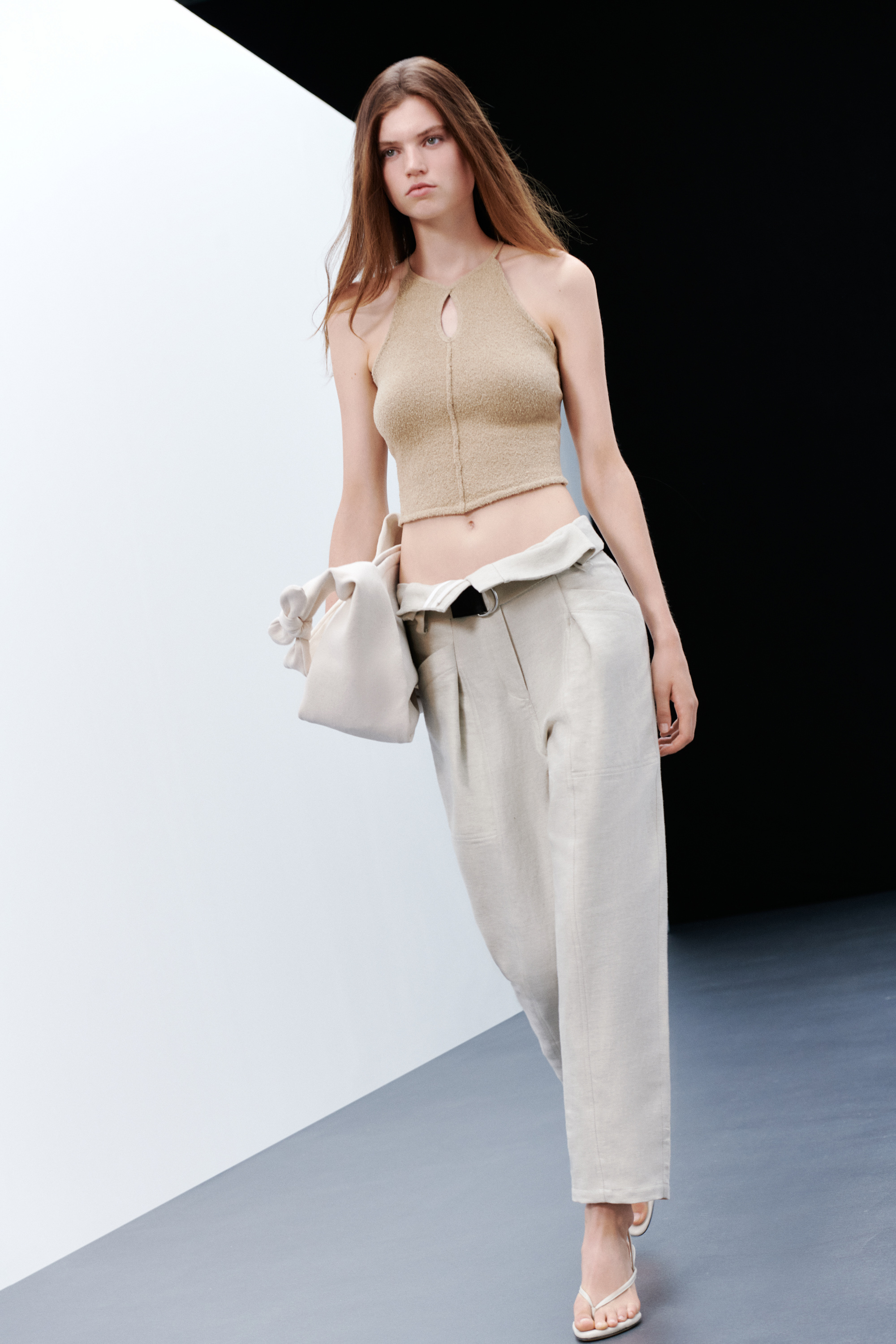 Inspired by women who create and do so with complete independence, she chooses pieces that are easy – a tunic tied at the waist with a slit skirt, a crochet style top or light leather pieces close to the body. Always in search of freedom, she plays with the asymmetry of a top or a dress, cut a raw edge on her denim shorts and combines earthy tints with fruity colors. She focuses on refined pieces that highlight her silhouette without ever neglecting her look: a straight cut mini dress with metal rivets, a structured jacket and a print that stands out.