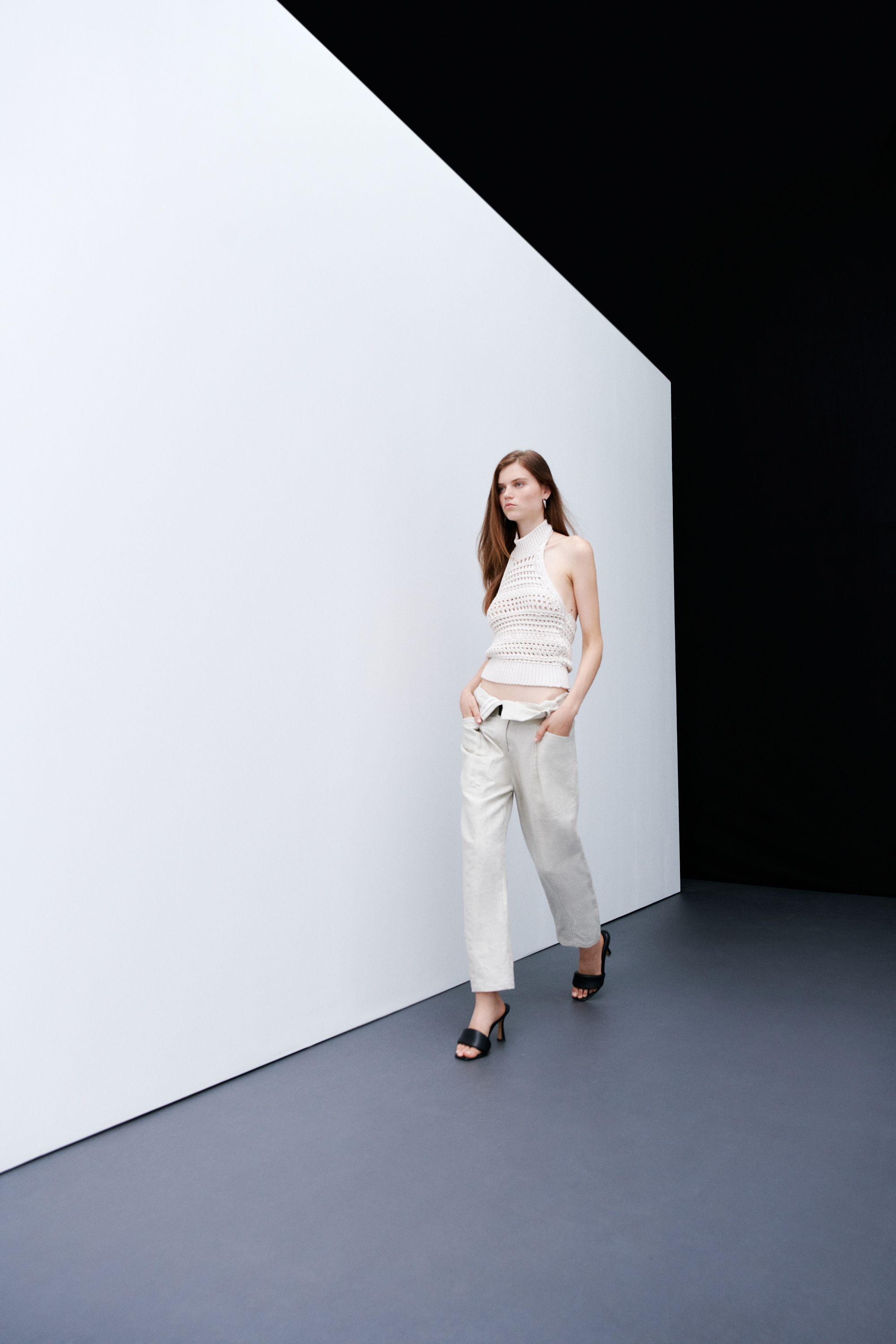 A modern and strong amazon, who travels the world with her bag in tow. Her fashion choices reflect her personality and desire to be free: pleated pants that she tucks at the waist for more ease and comfort, denim tunics and everyday jumpsuits.