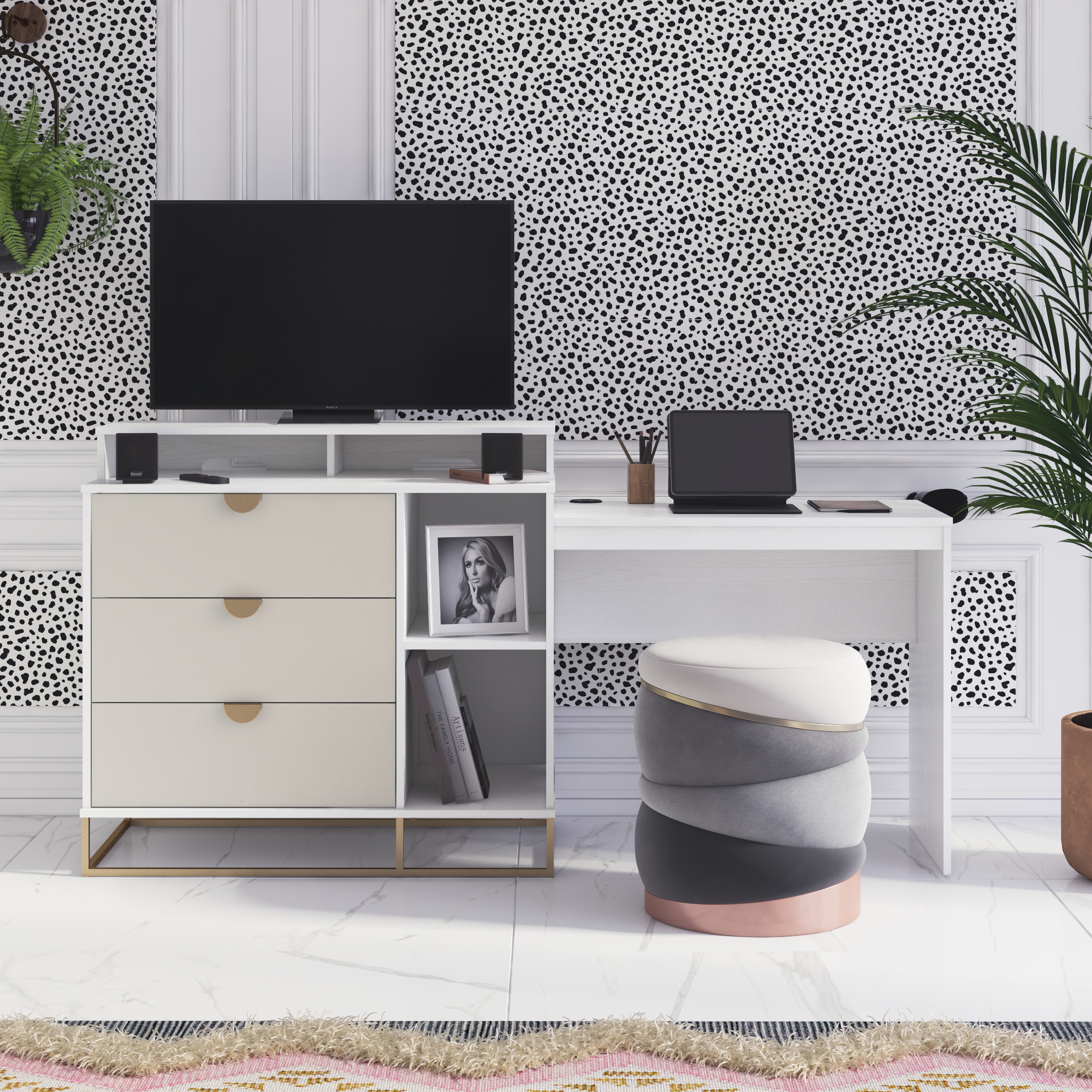 Designed with leading manufacturer Dorel Home, the collection is premiering with living room and bedroom essentials that embrace classic neutral hues, glamorous art deco patterns, and luxurious brass accents. Standout pieces include a regal Cassidy Futon and a mid-century retro accent cabinet among other stellar furnishings. The perfect pieces for anyone looking to add both high-style and sparkle to their home. The highly anticipated collaboration will be available on Overstock.com and ShopTheNovogratz.com launching in the beginning of October.