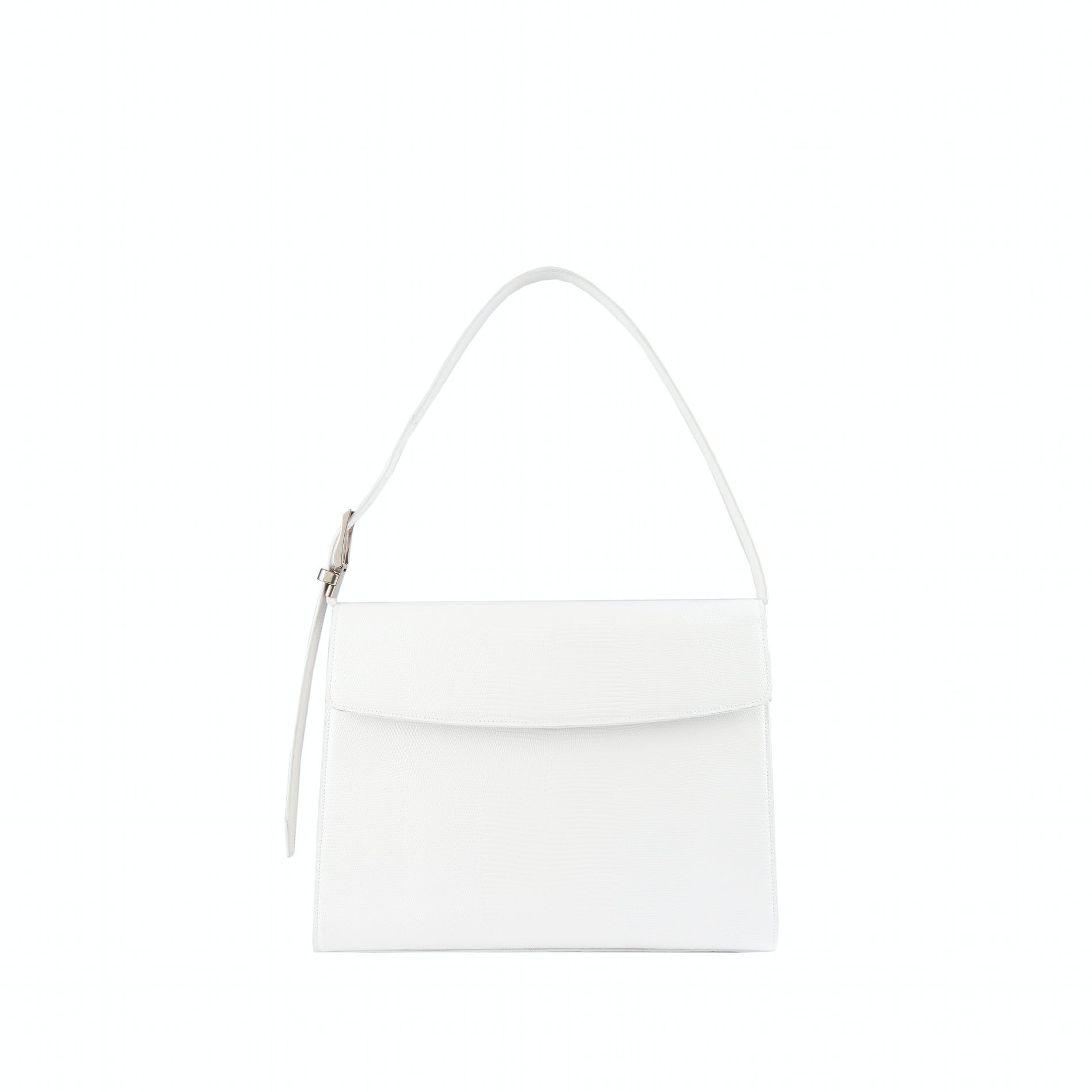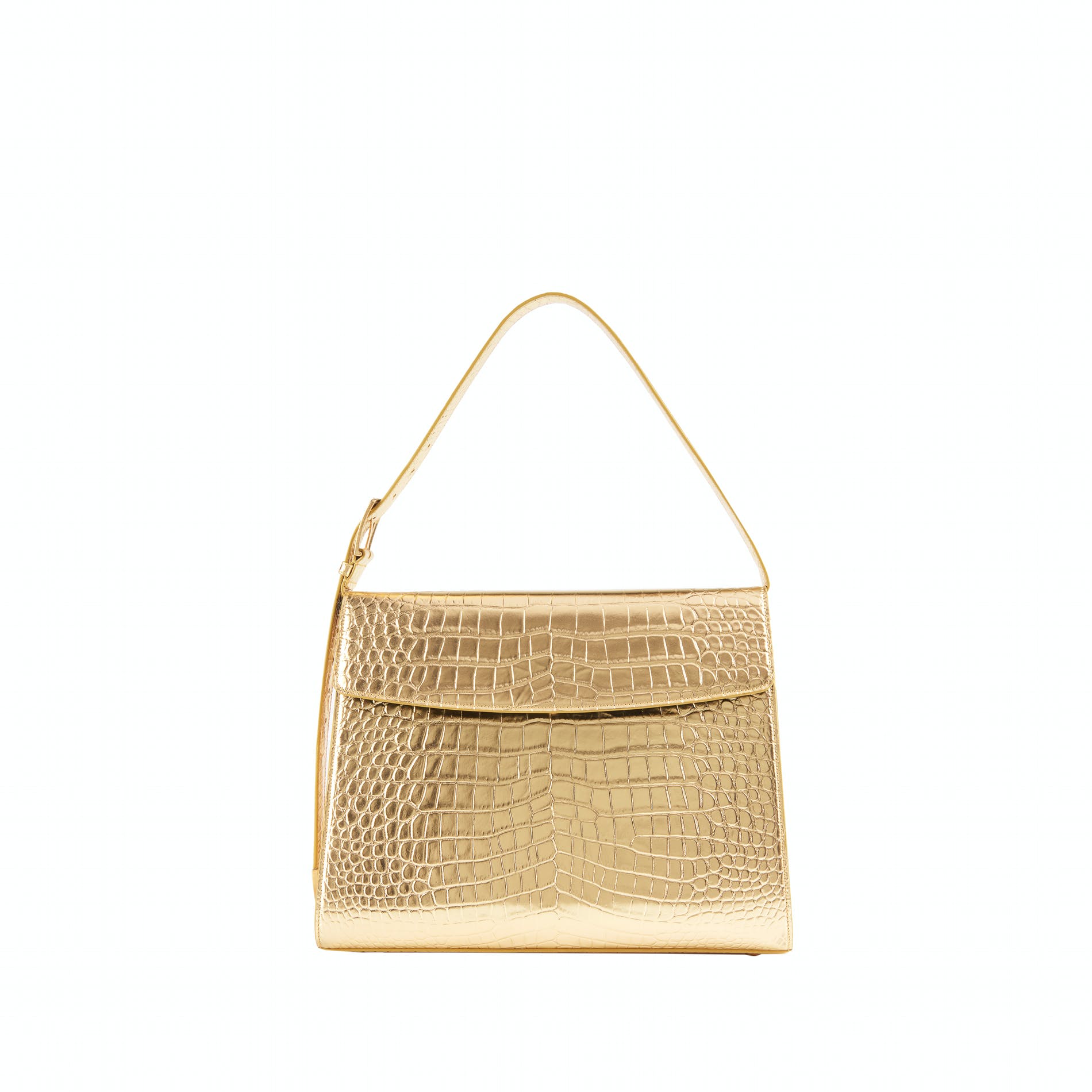 The first offerings from the line come in an array of styles, shapes, and sizes, and in shiny leather, either embossed with a crocodile or lizard skin texture, or smooth. Colors are neutral and classic: black, camel, white, bright red, and gold.