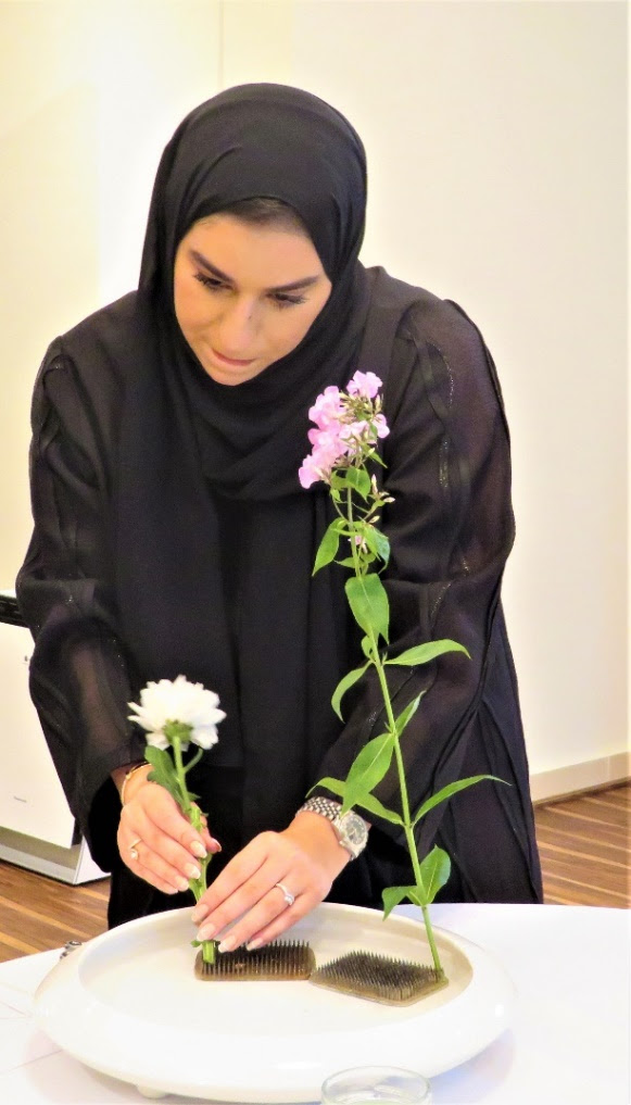 Young Emirati Ms Amani Alshehhi, is the first United Arab Emirates national to obtain the certification of Ikebana Instructor from the Ohara School of Ikebana, Japan. The history of Ikebana, the Japanese art of flower arrangement, dates back 600 years and focuses on simplicity, asymmetrical beauty and seasonal materials. The emphasis on the Japanese aesthetic of “empty” space distinguishes Ikebana from flower arranging practiced in other parts of the world.
