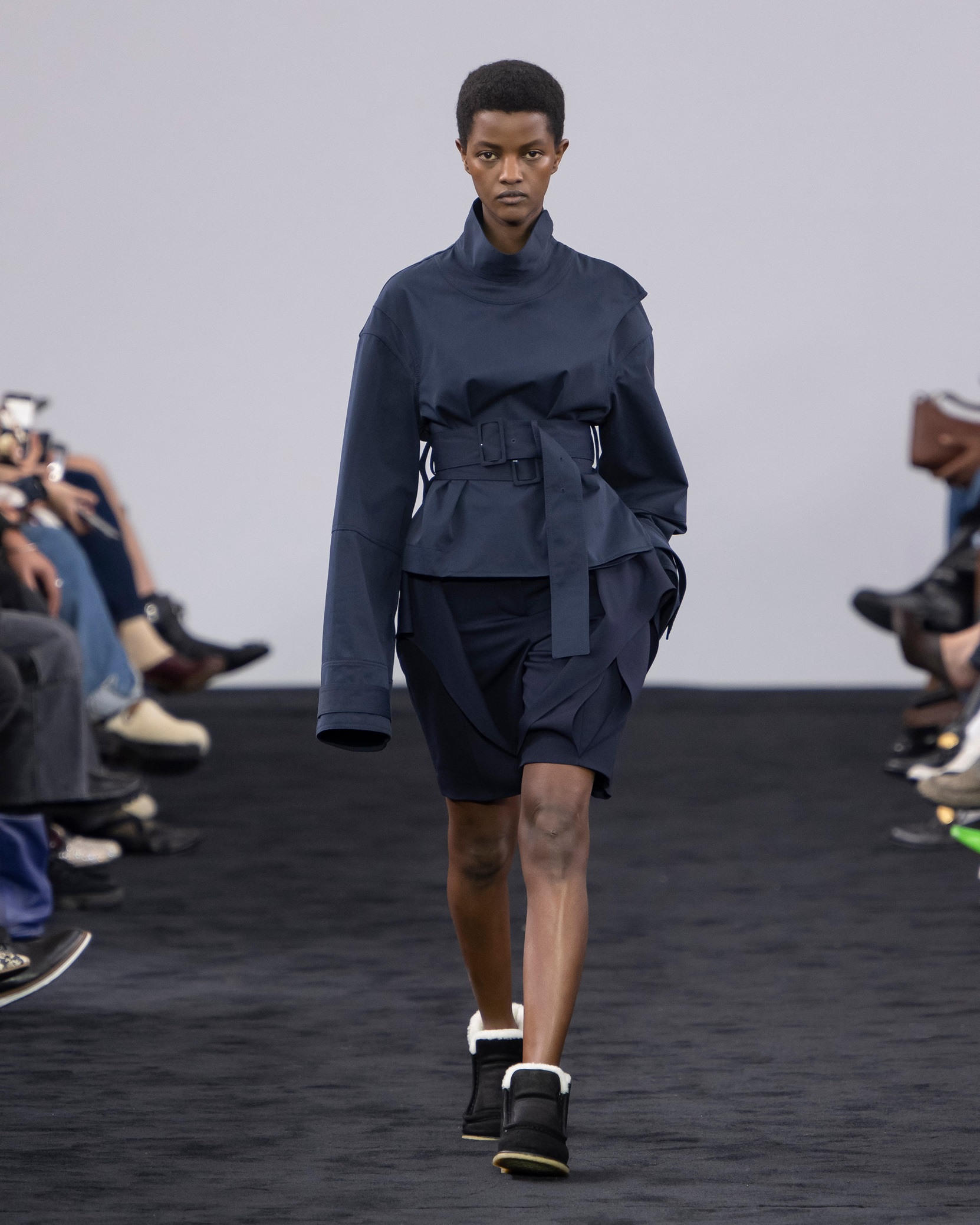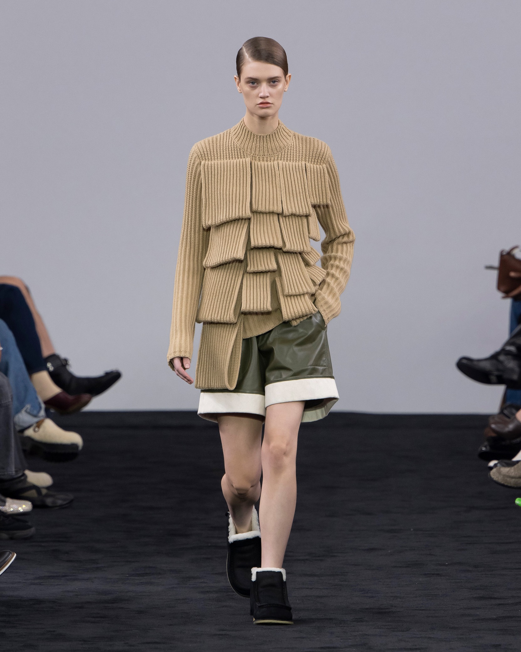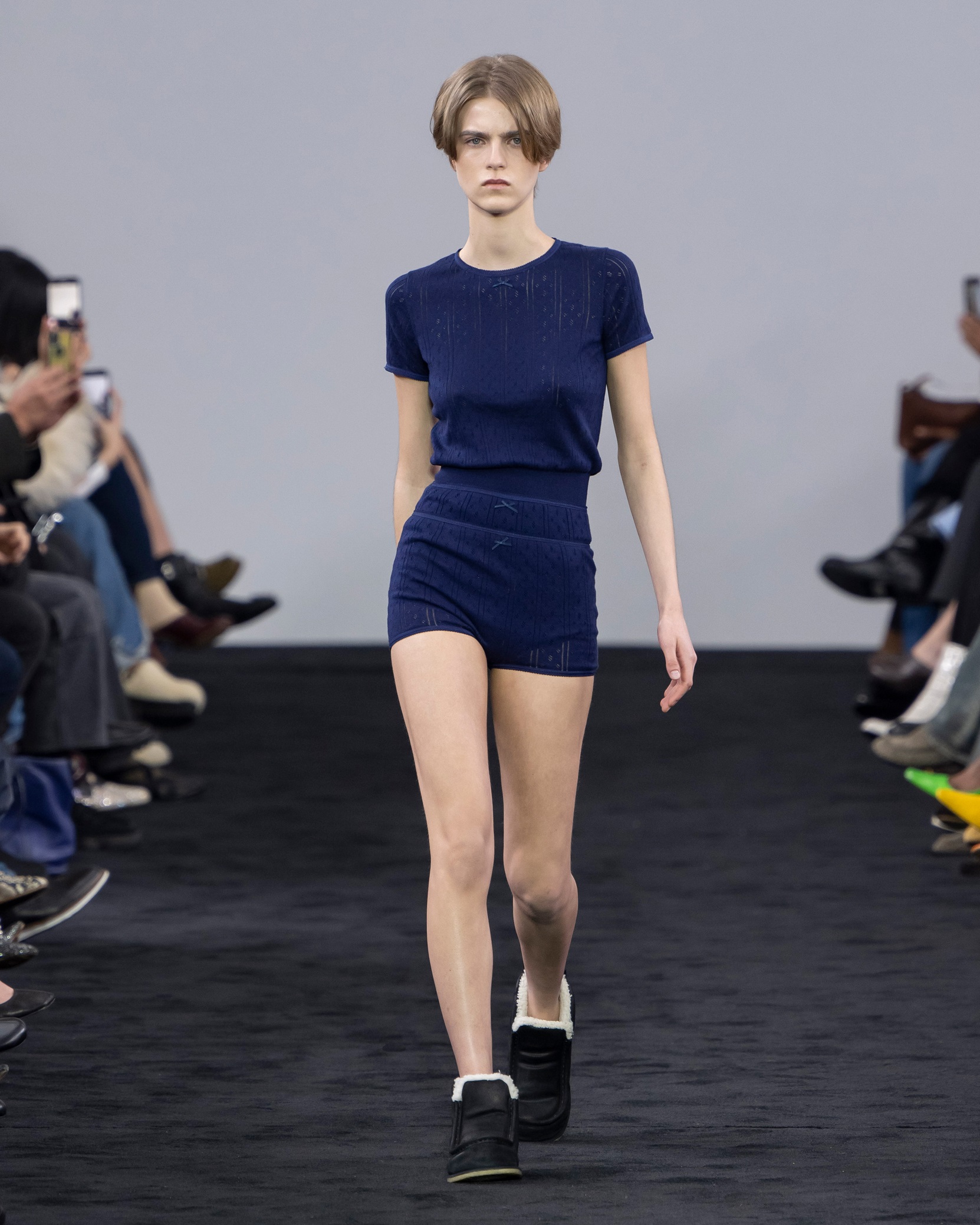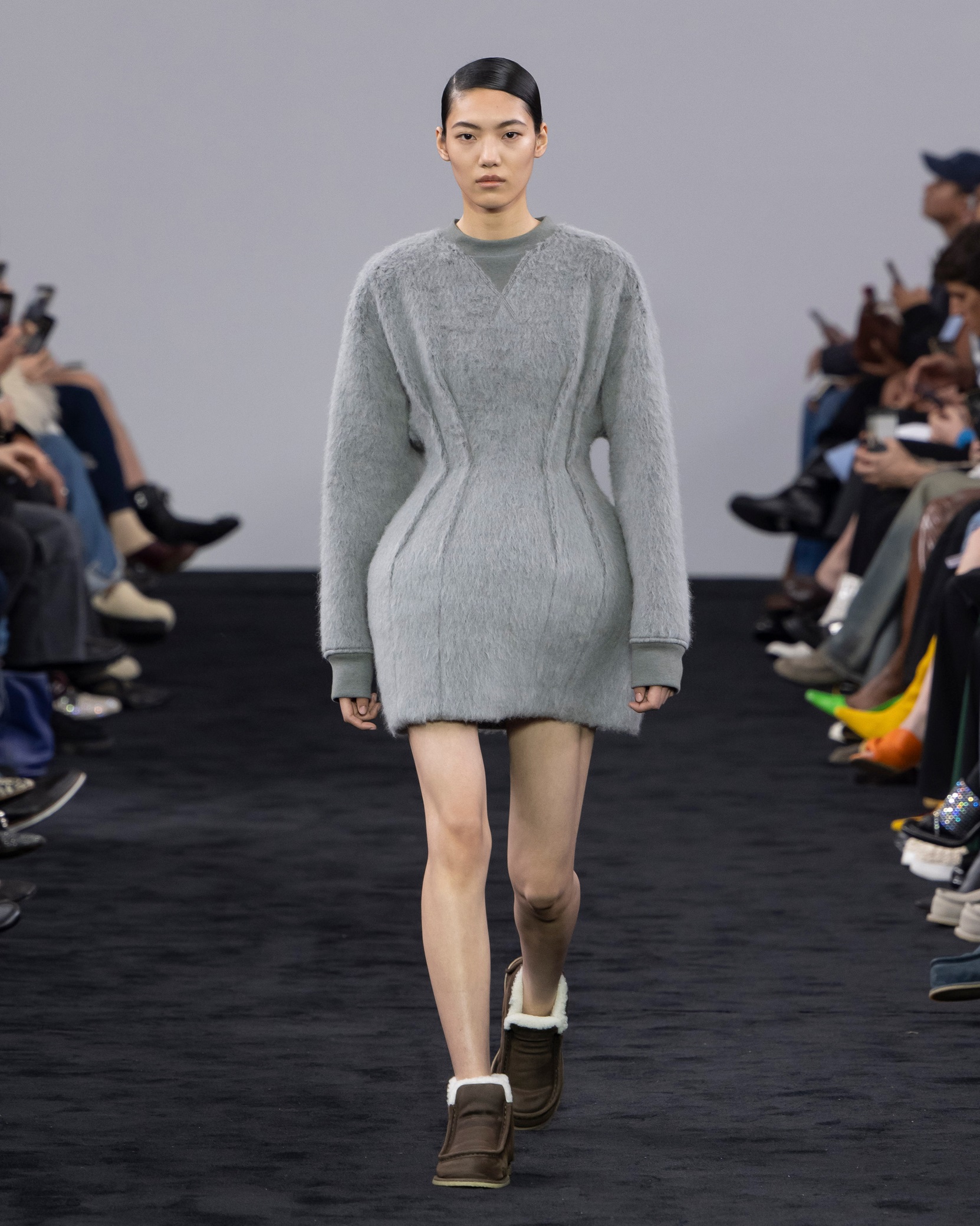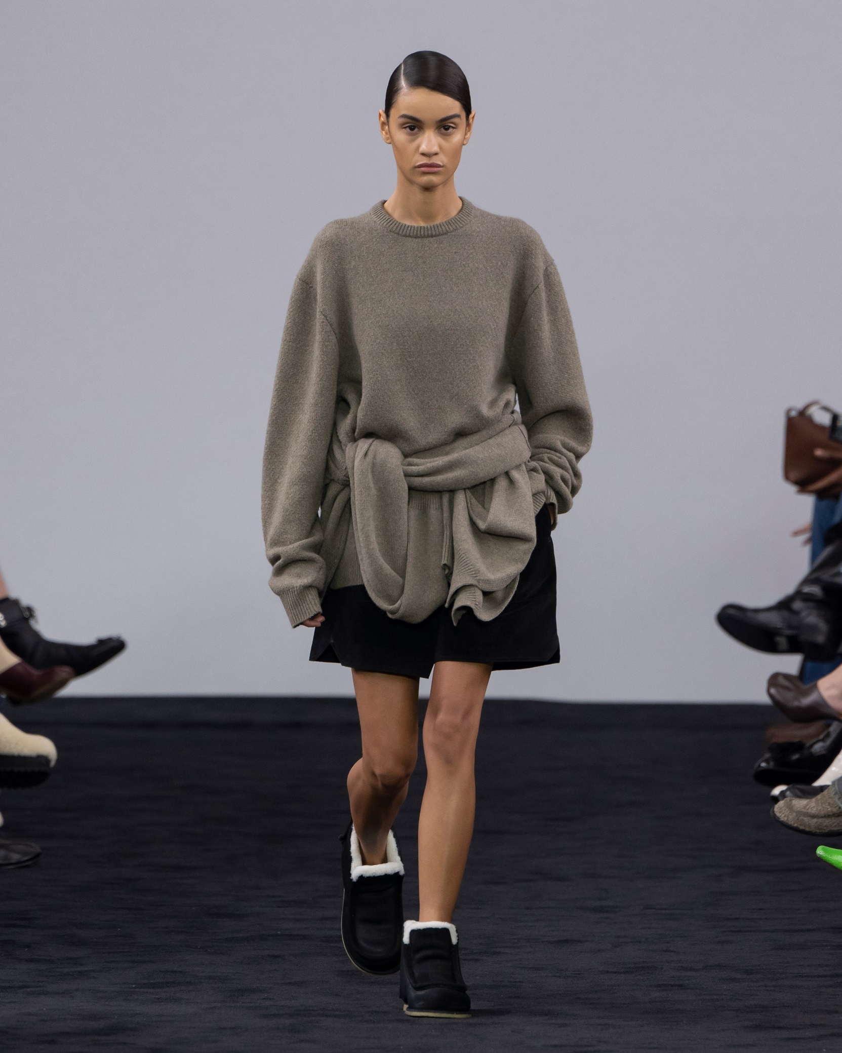 The subtle and the loud. A grey wig as a device. And flats. Housewife flats.