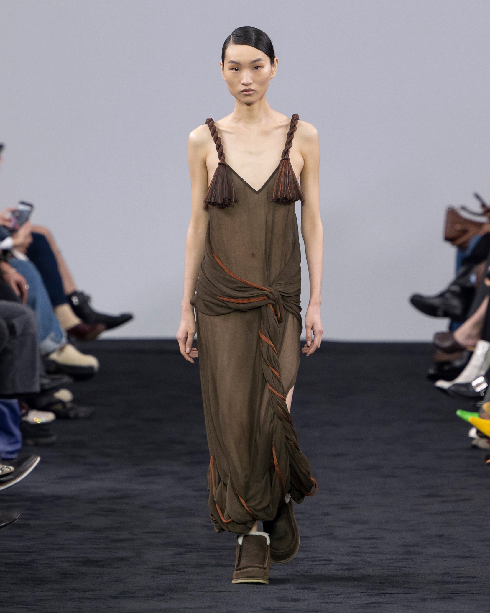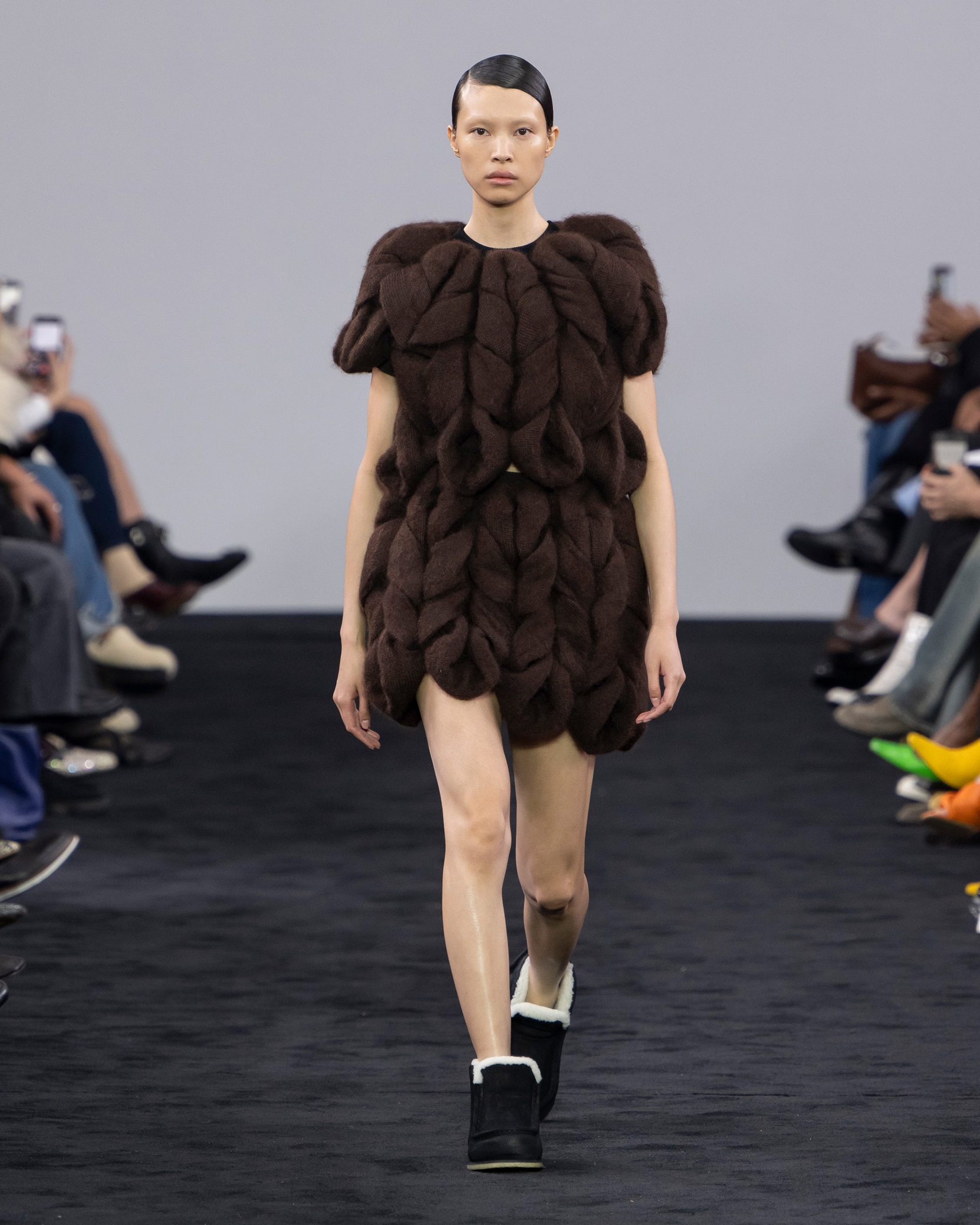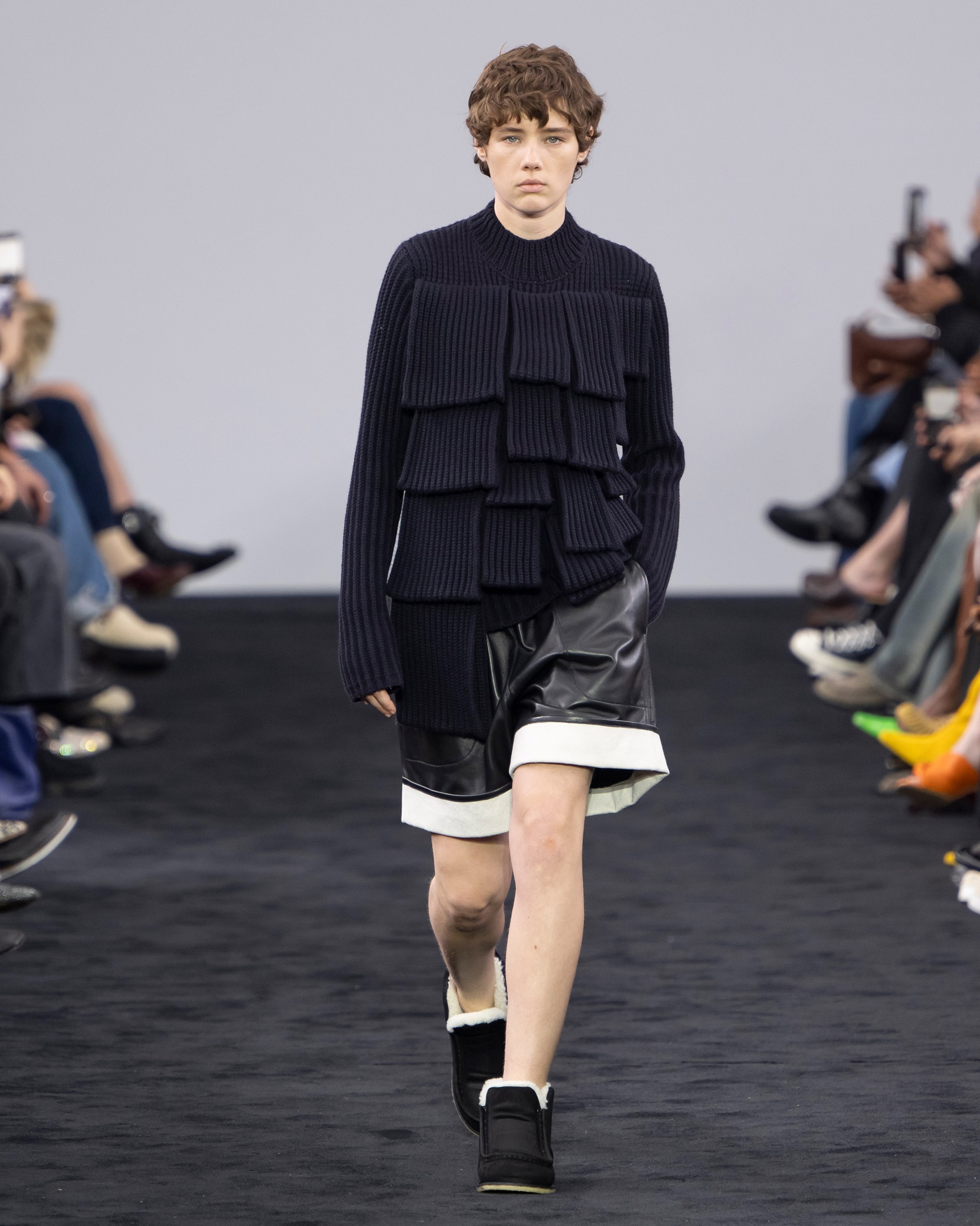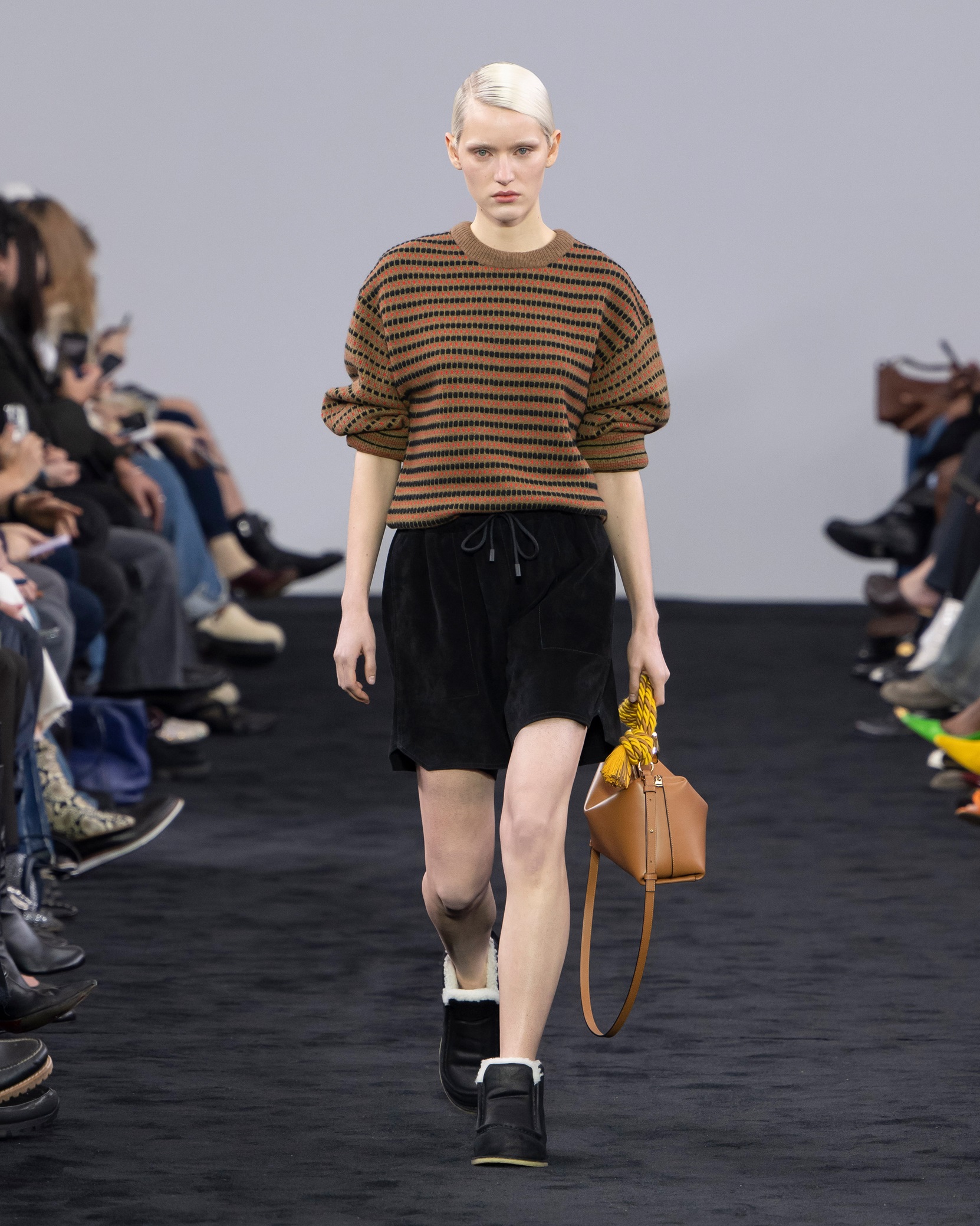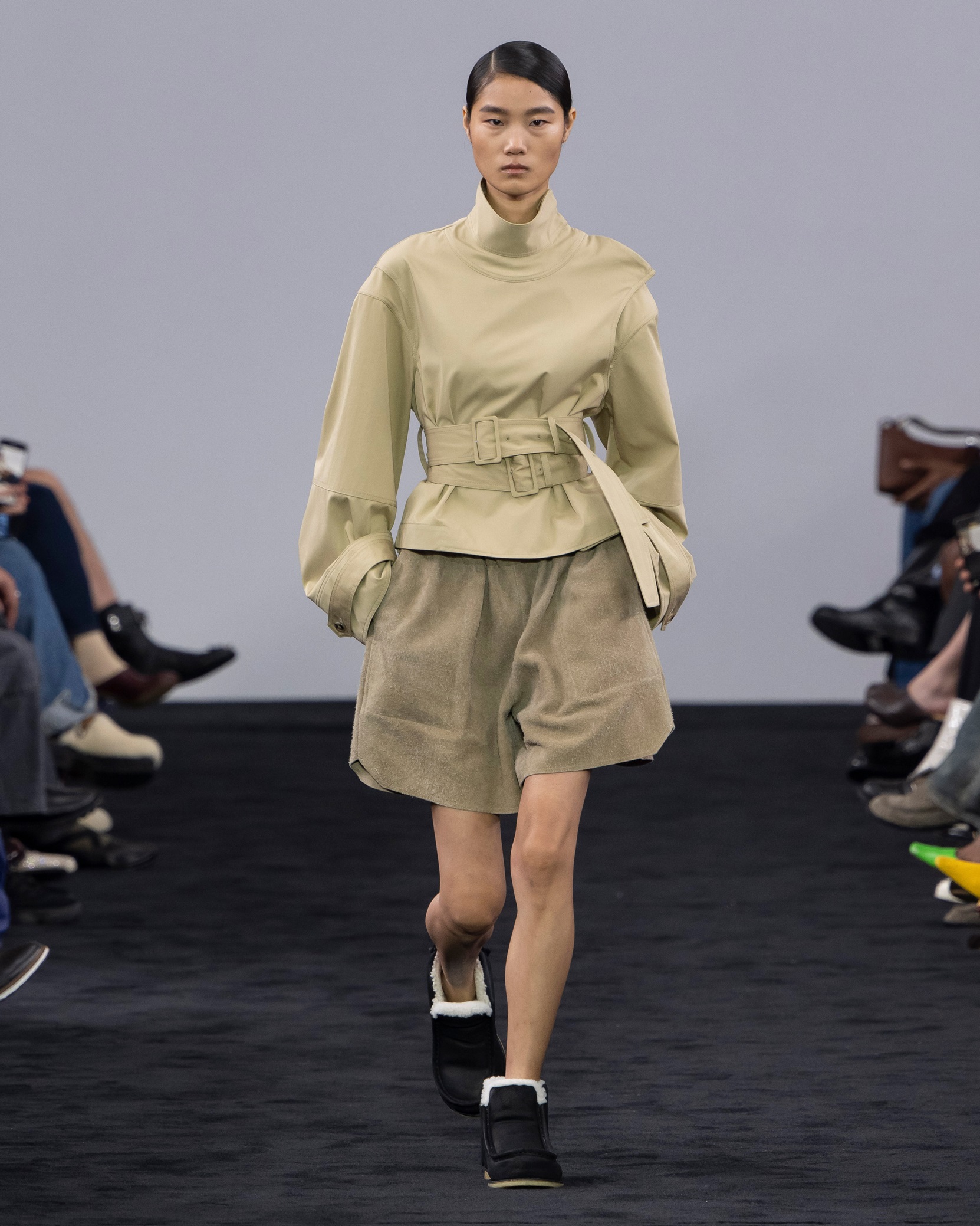 The subtle and the loud. A grey wig as a device. And flats. Housewife flats.