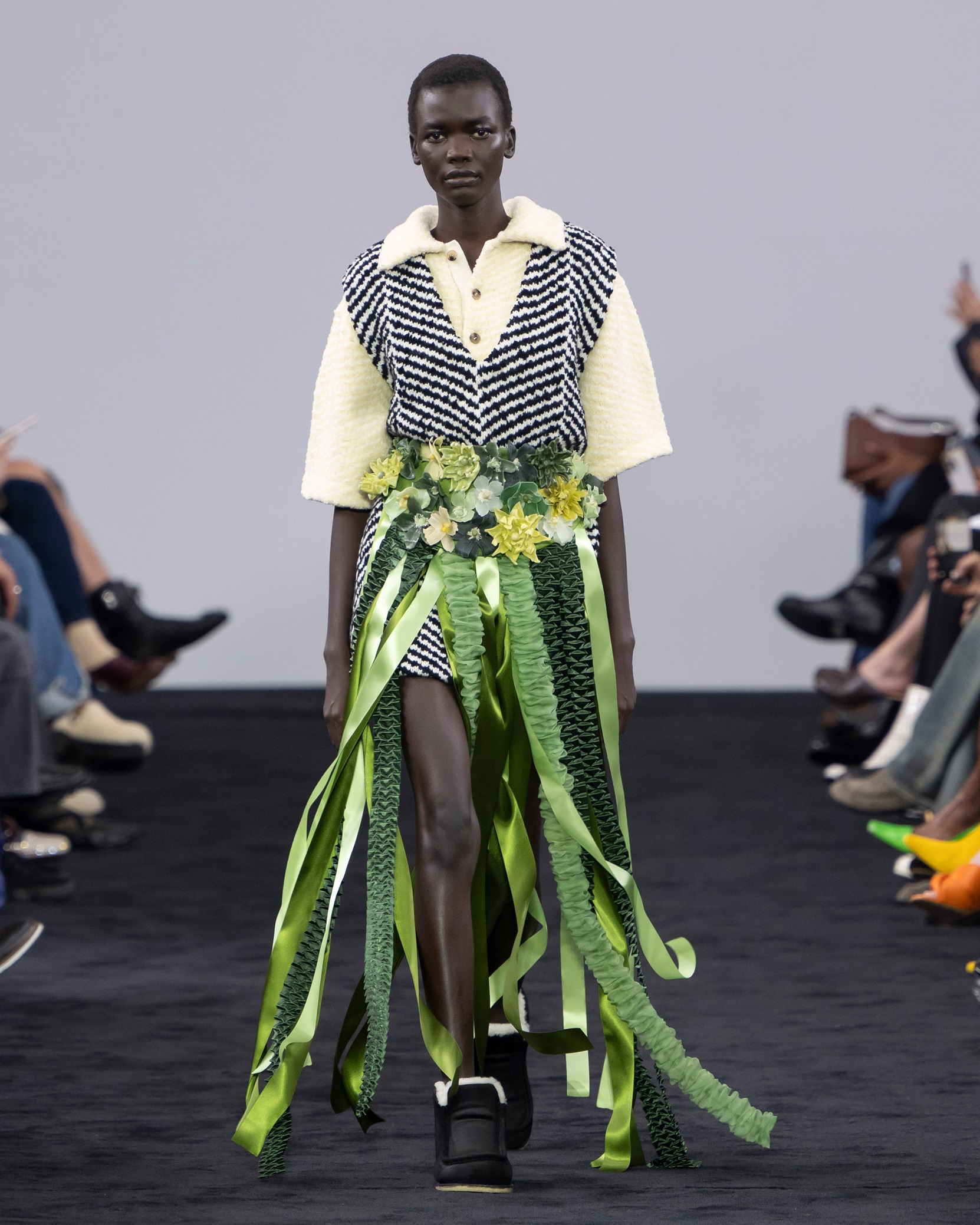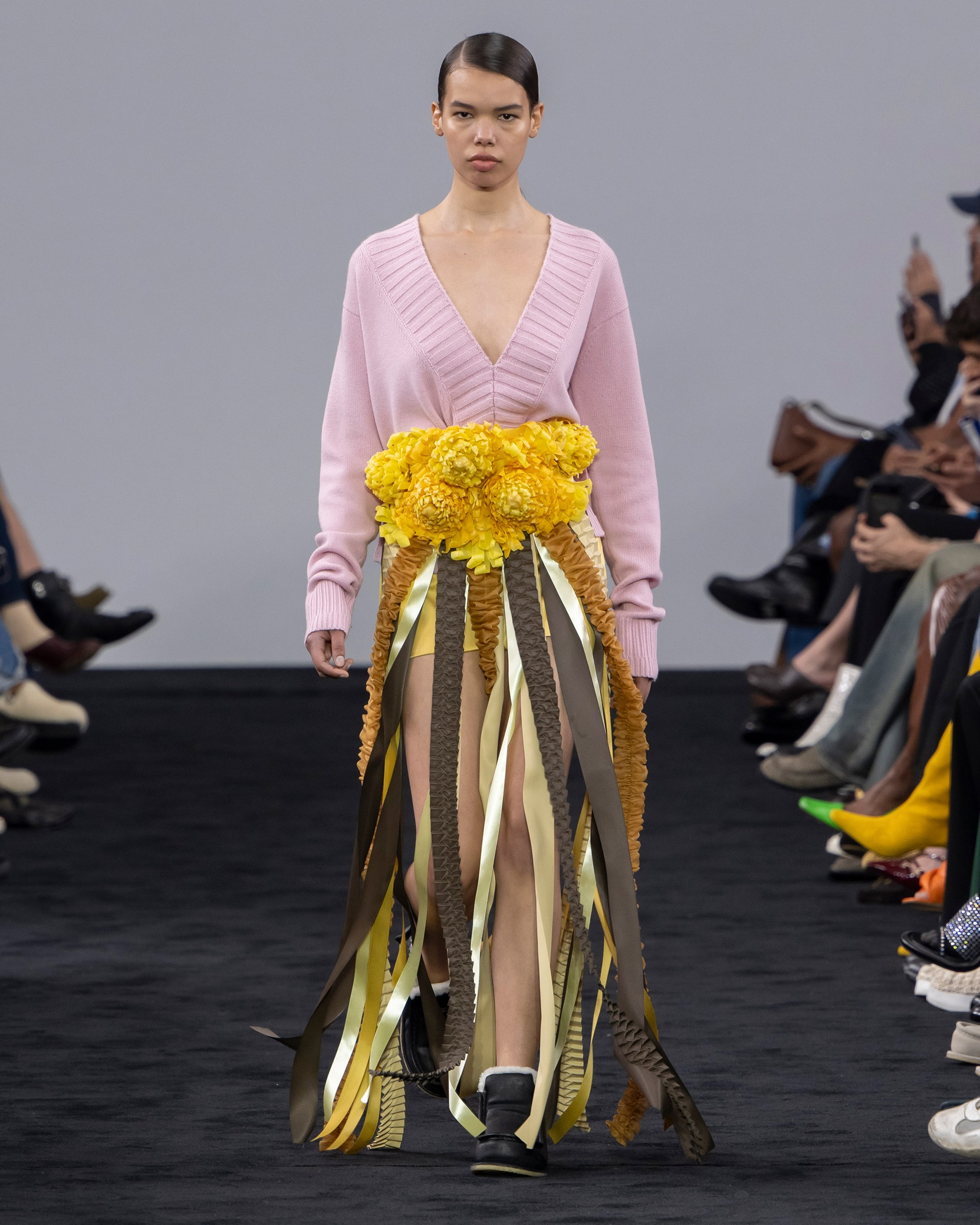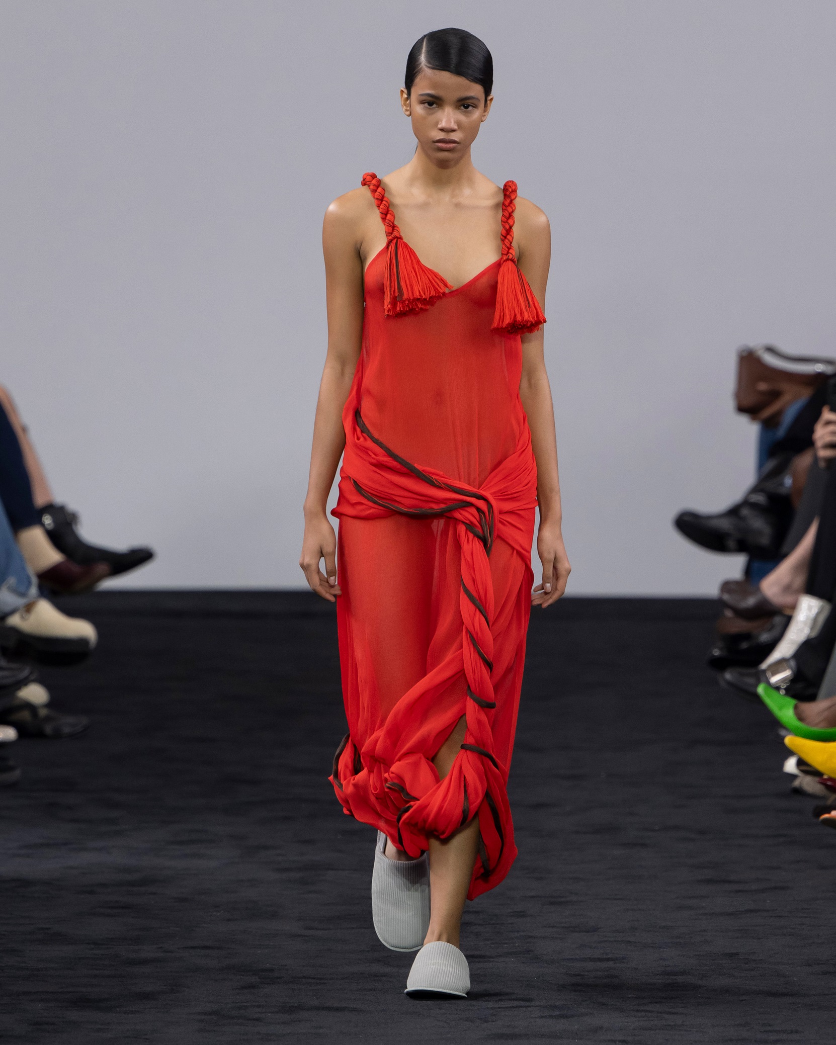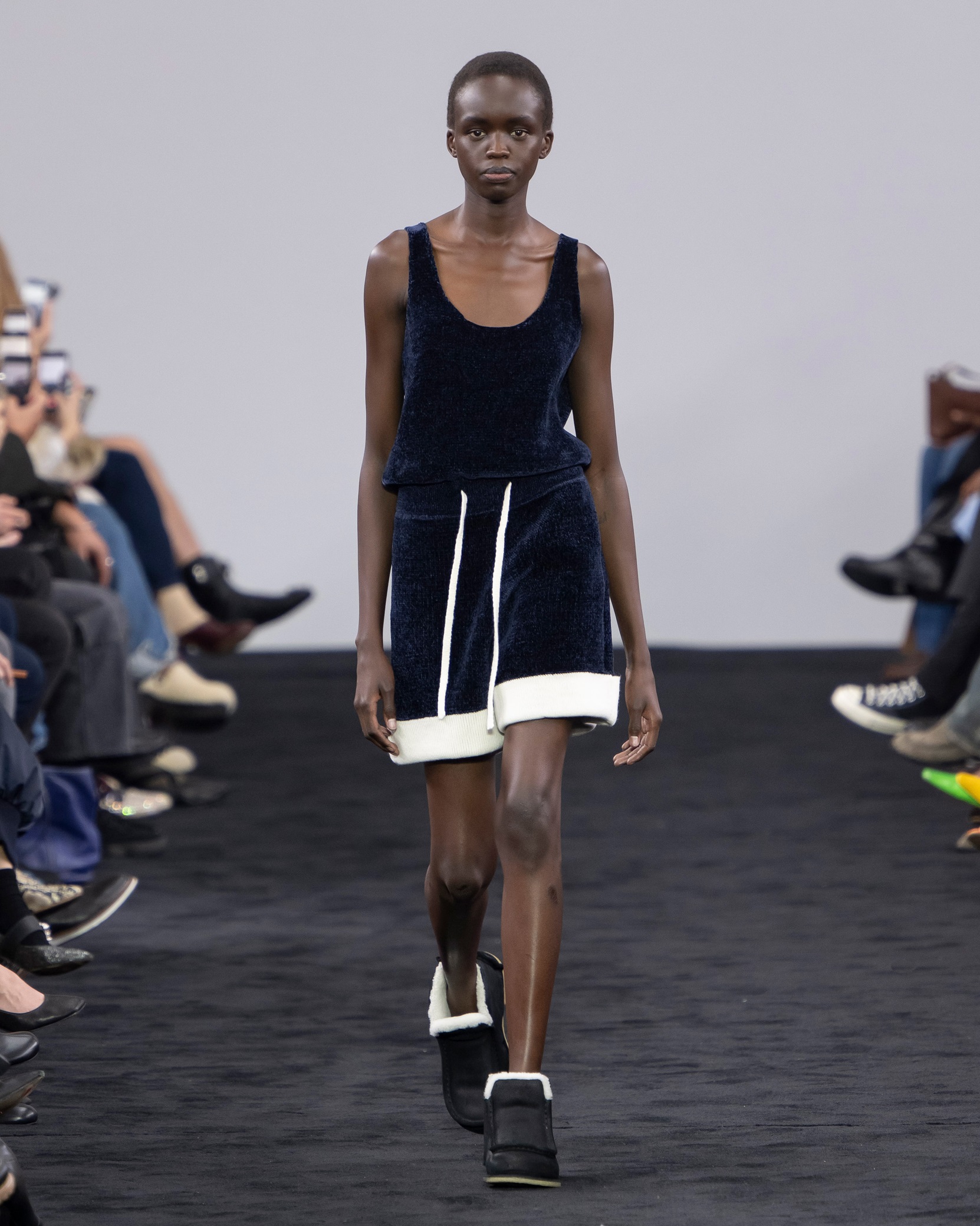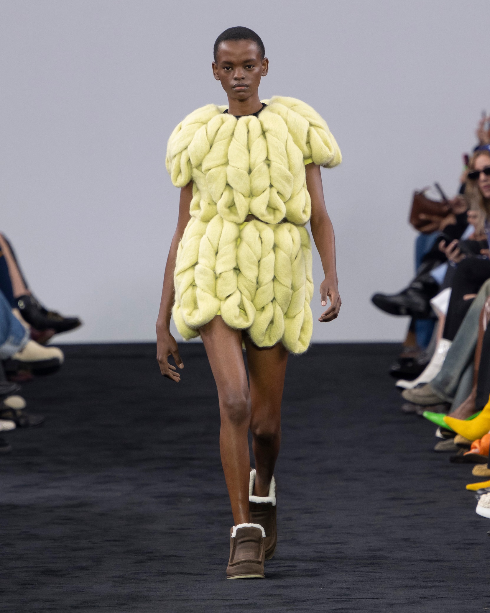 The subtle and the loud. A grey wig as a device. And flats. Housewife flats.