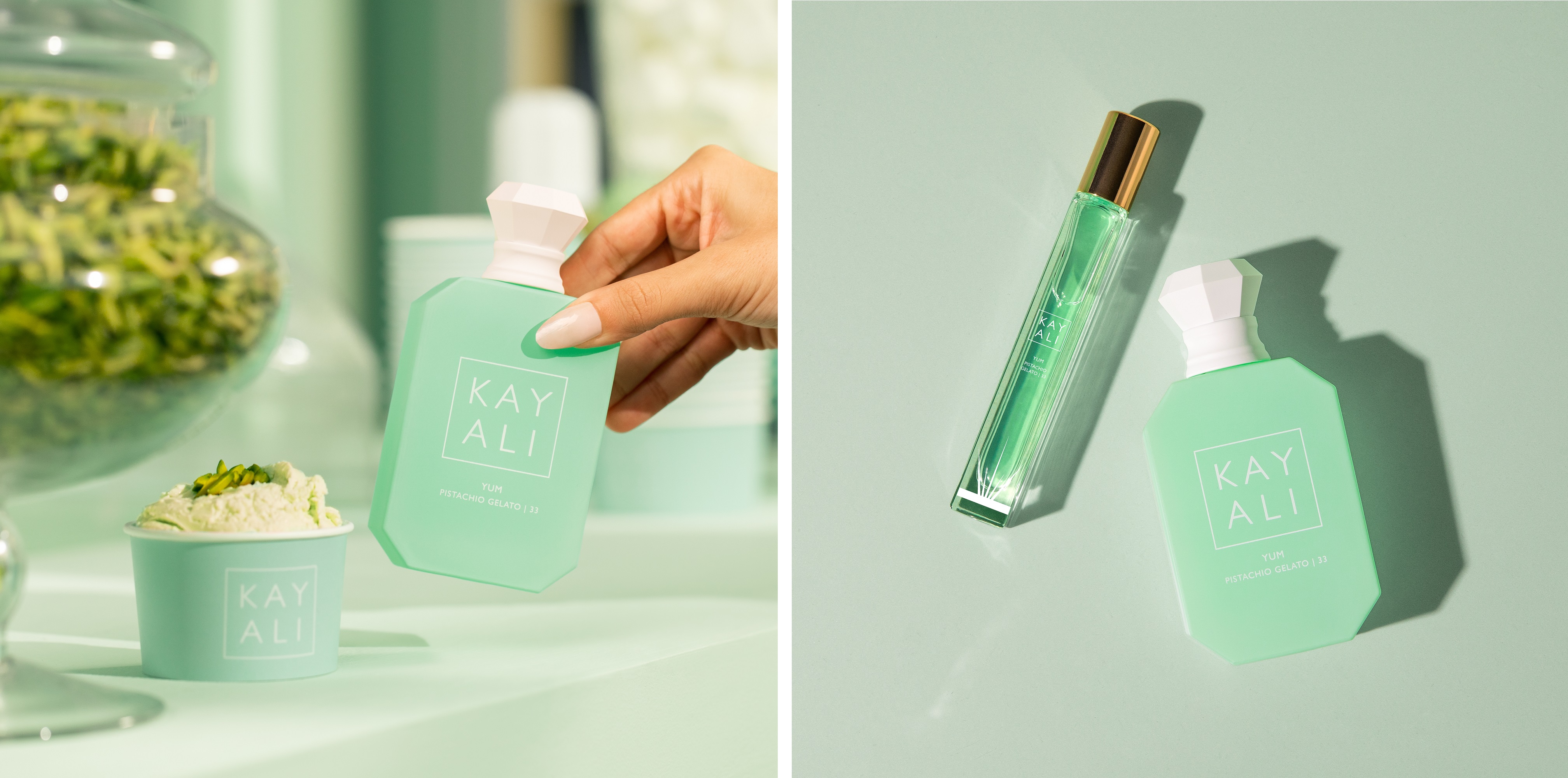 “I wanted to combine my two favorite indulgences, fragrance & gelato! Ever since I can remember, ice cream has been my favorite food and always my #1 choice when asked what would be my last meal! In 2014, I went on a trip to Rome with my sister Alya and discovered pistachio gelato - I have been OBSESSED ever since! Just like the dreamy dessert, I wanted to create something that made me feel yummy, happy and irresistible” - Mona Kattan, Founder of Kayali