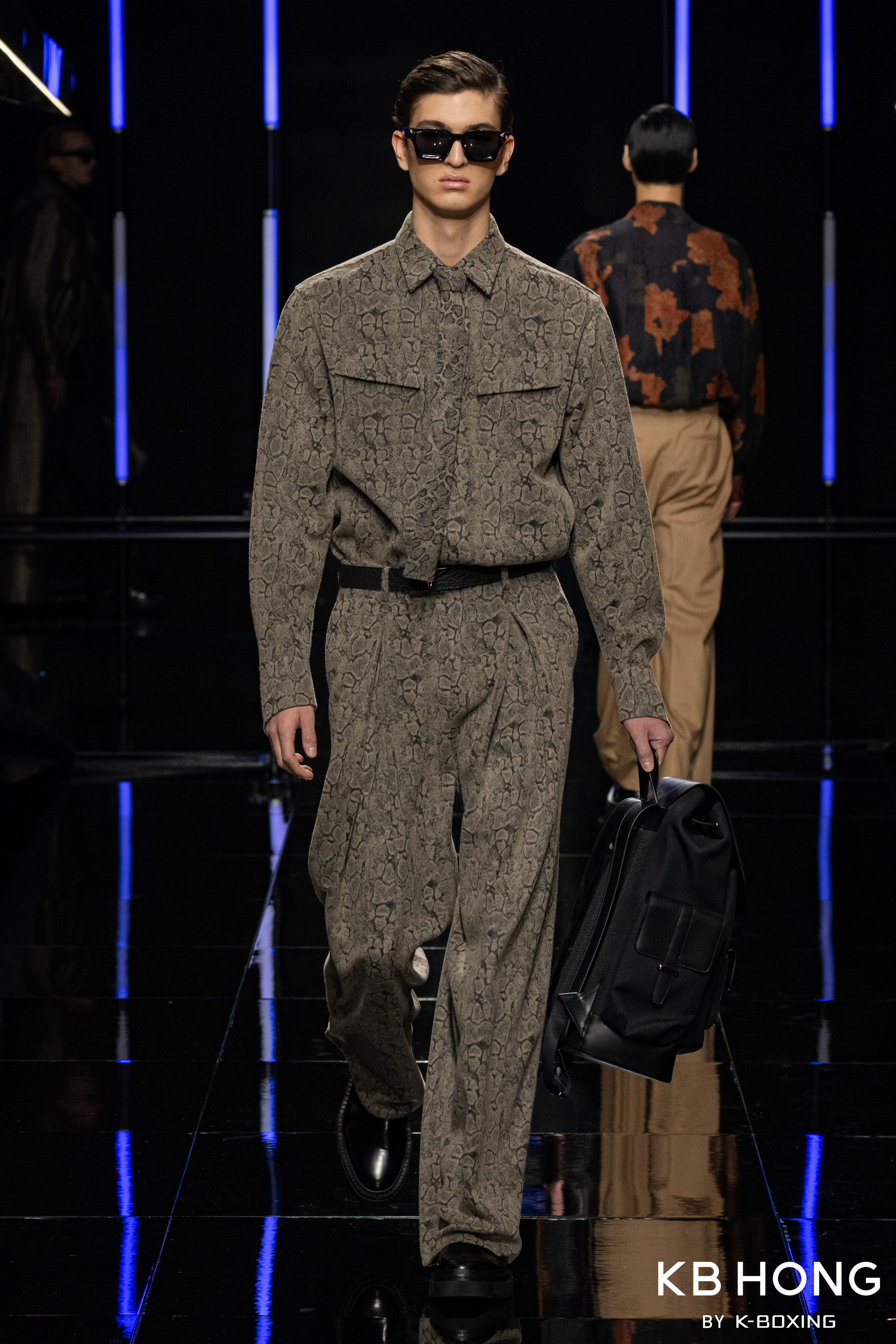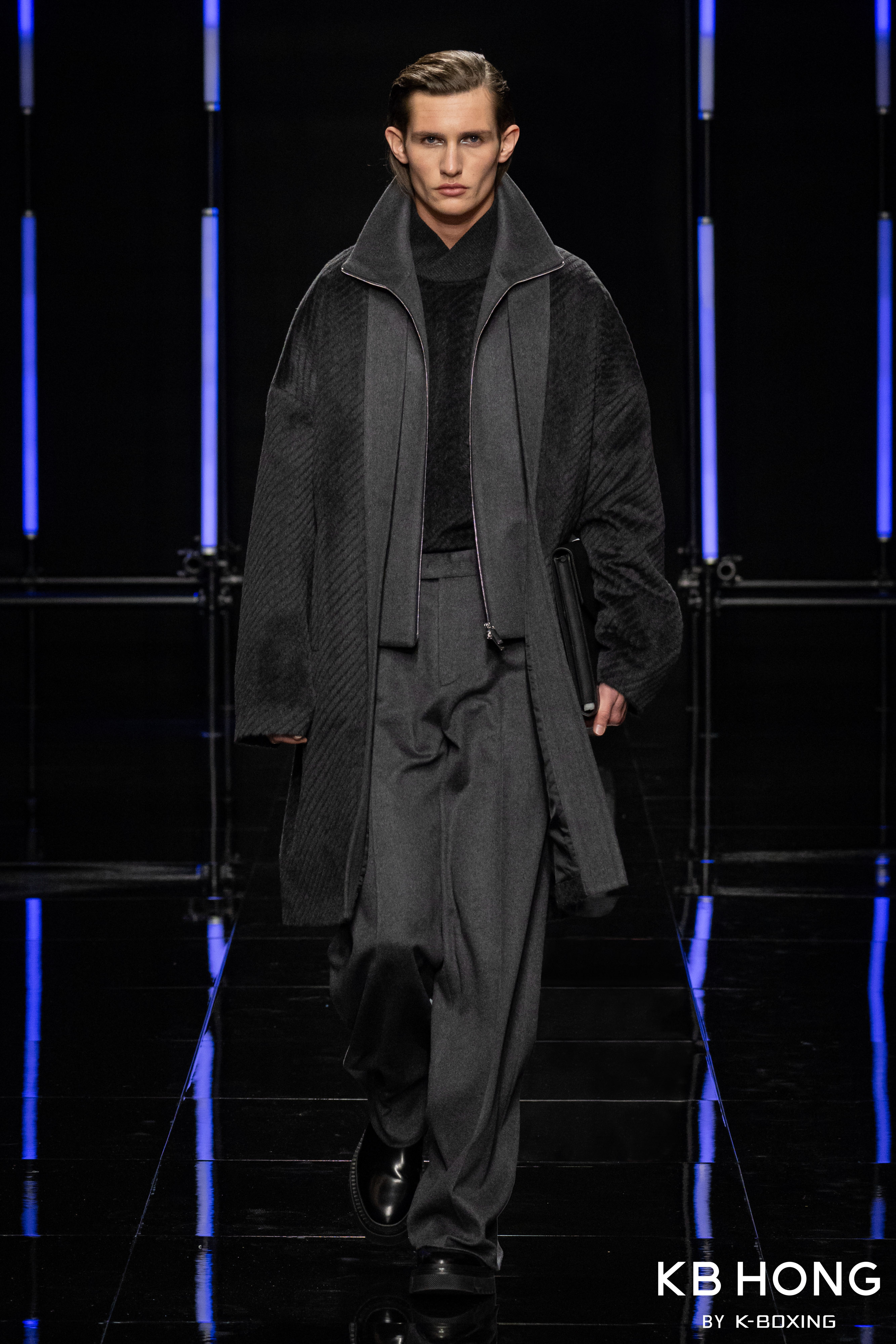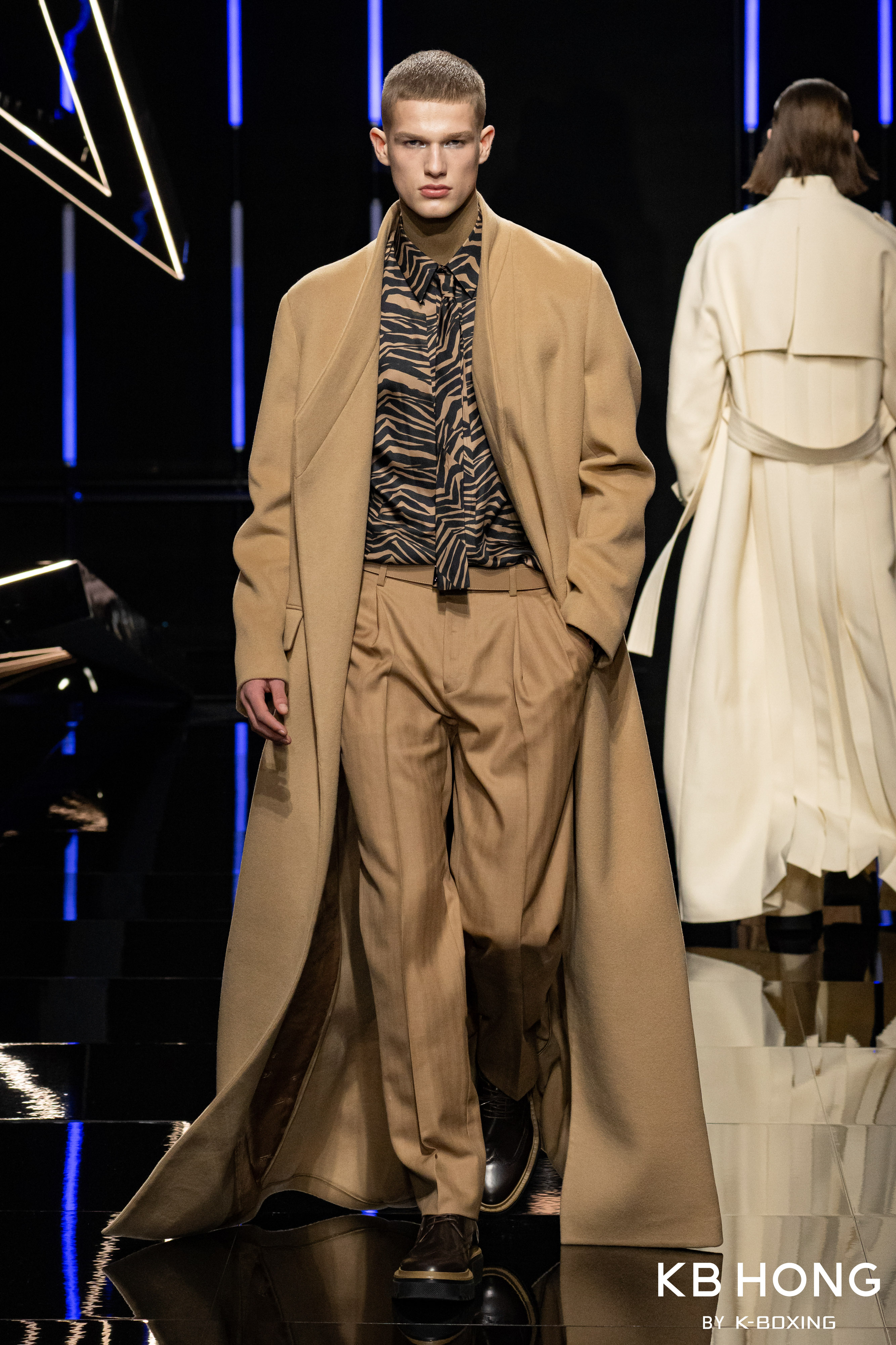 The same dynamic of unexpected encounters, the same ones that you can have on a trip, returns in the choice of the textiles: to be chosen were not only the best Italian textiles of the past, but also high-end traditional Chinese fabrics known as "soft gold," Xiangyun Yarn. With natural and luxurious fibers, such as cachemire, camelhair, alpaca wool, wool and silk are mixed with more modern and artificial fibers to create the more technical pieces. A sophisticated mix of elements is shown in oversize fits and maxi lengths for a masculine wardrobe with a genderless and timeless allure, highlighting the beauty of the bond and mixture of different cultures.