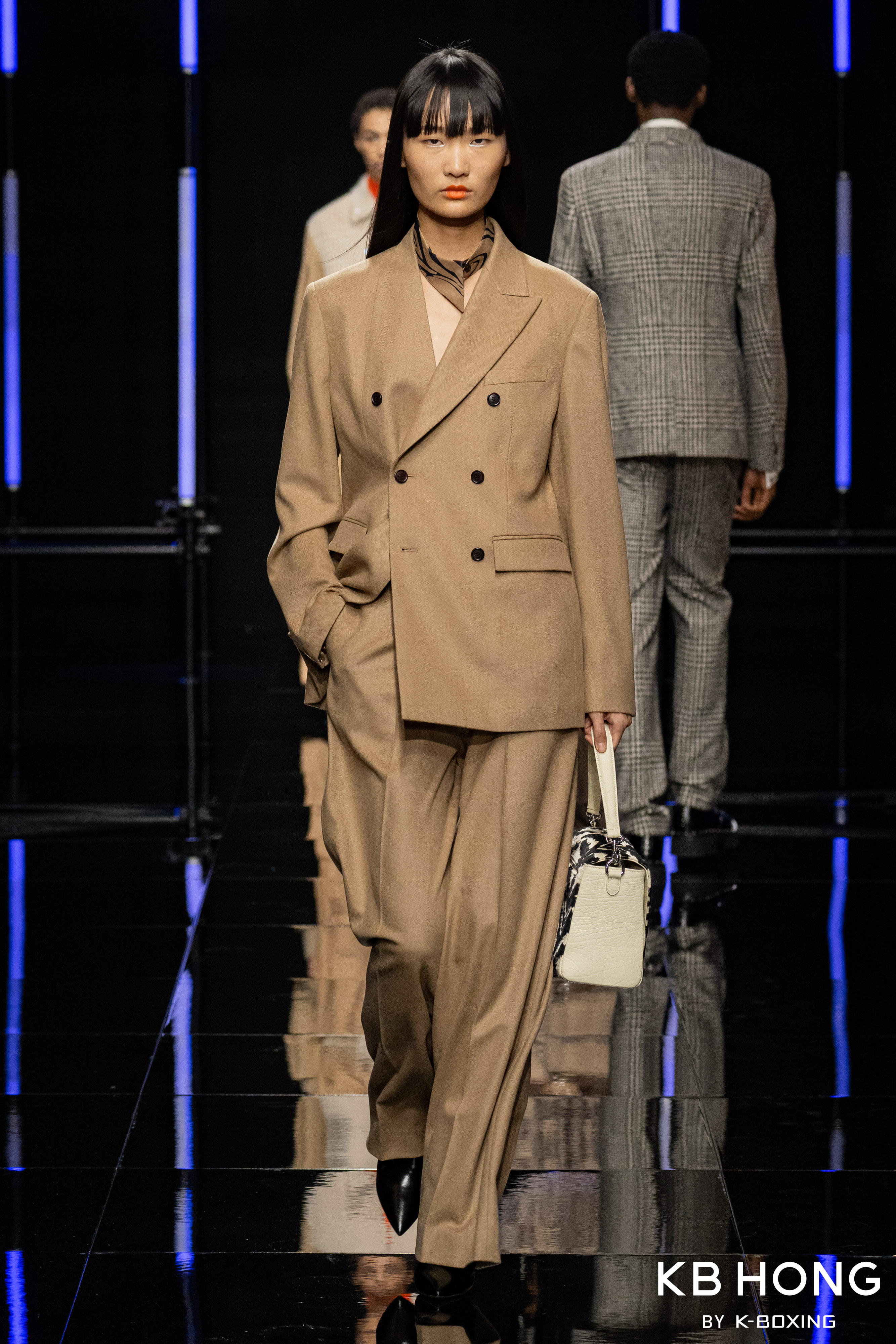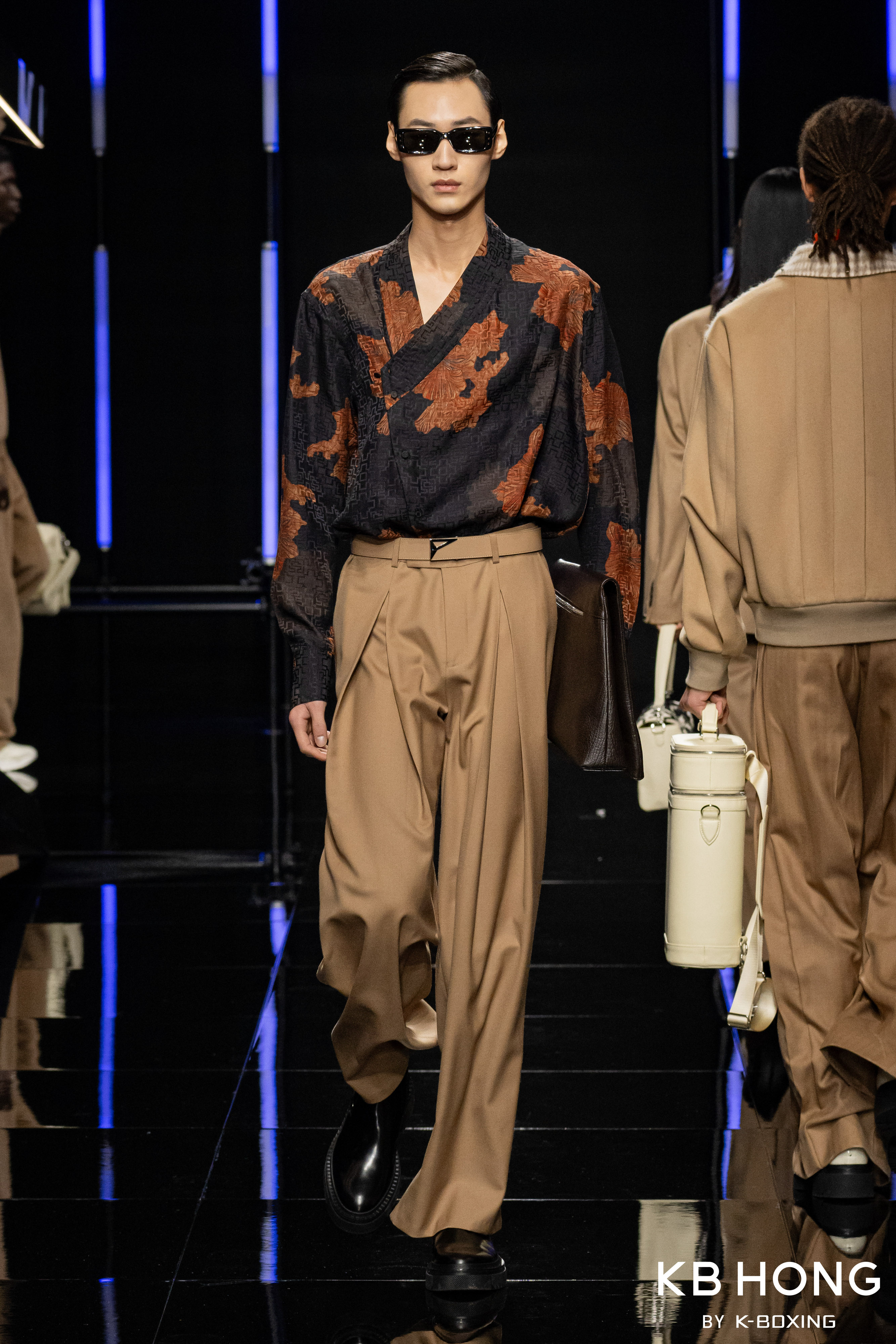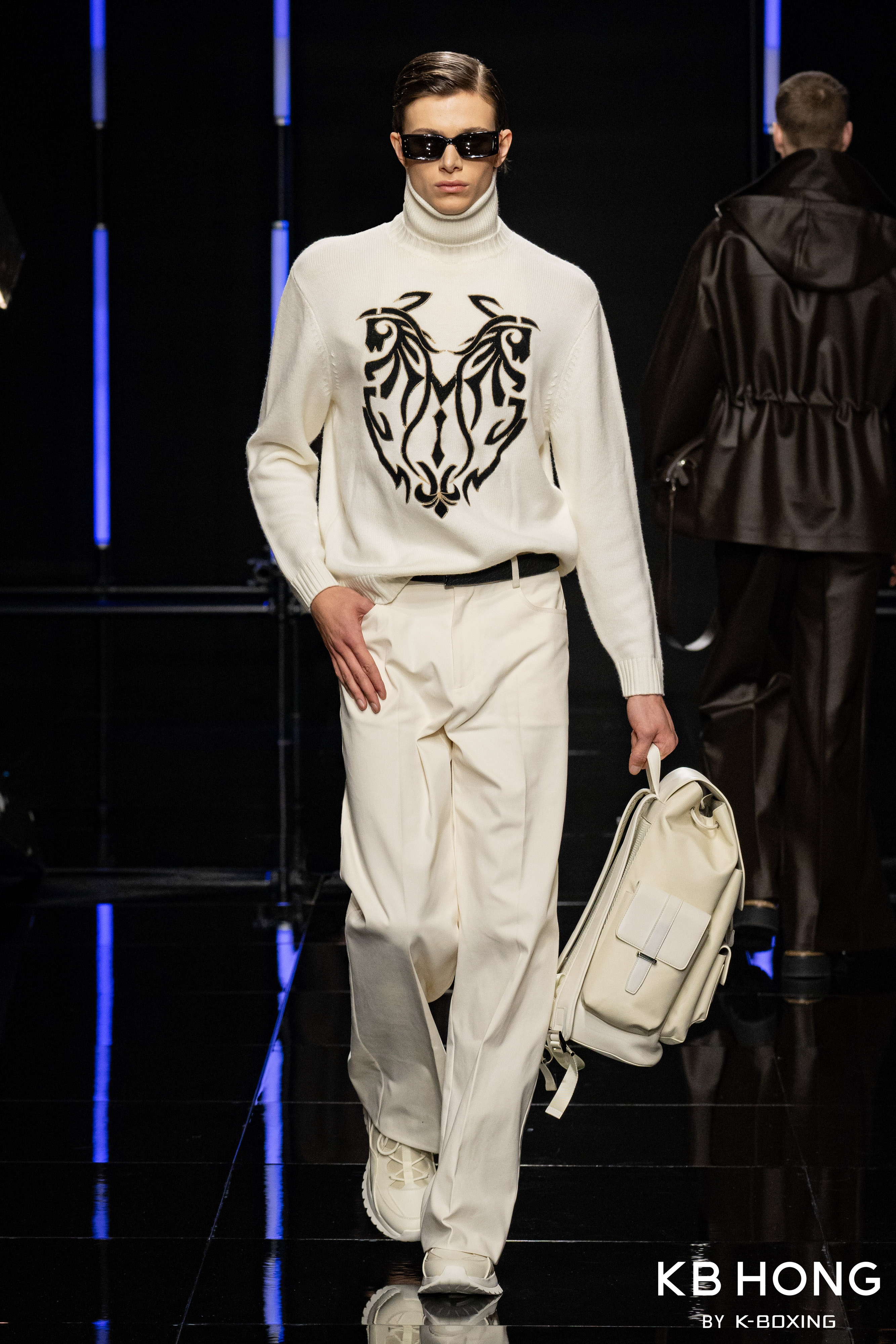 The same dynamic of unexpected encounters, the same ones that you can have on a trip, returns in the choice of the textiles: to be chosen were not only the best Italian textiles of the past, but also high-end traditional Chinese fabrics known as "soft gold," Xiangyun Yarn. With natural and luxurious fibers, such as cachemire, camelhair, alpaca wool, wool and silk are mixed with more modern and artificial fibers to create the more technical pieces. A sophisticated mix of elements is shown in oversize fits and maxi lengths for a masculine wardrobe with a genderless and timeless allure, highlighting the beauty of the bond and mixture of different cultures.