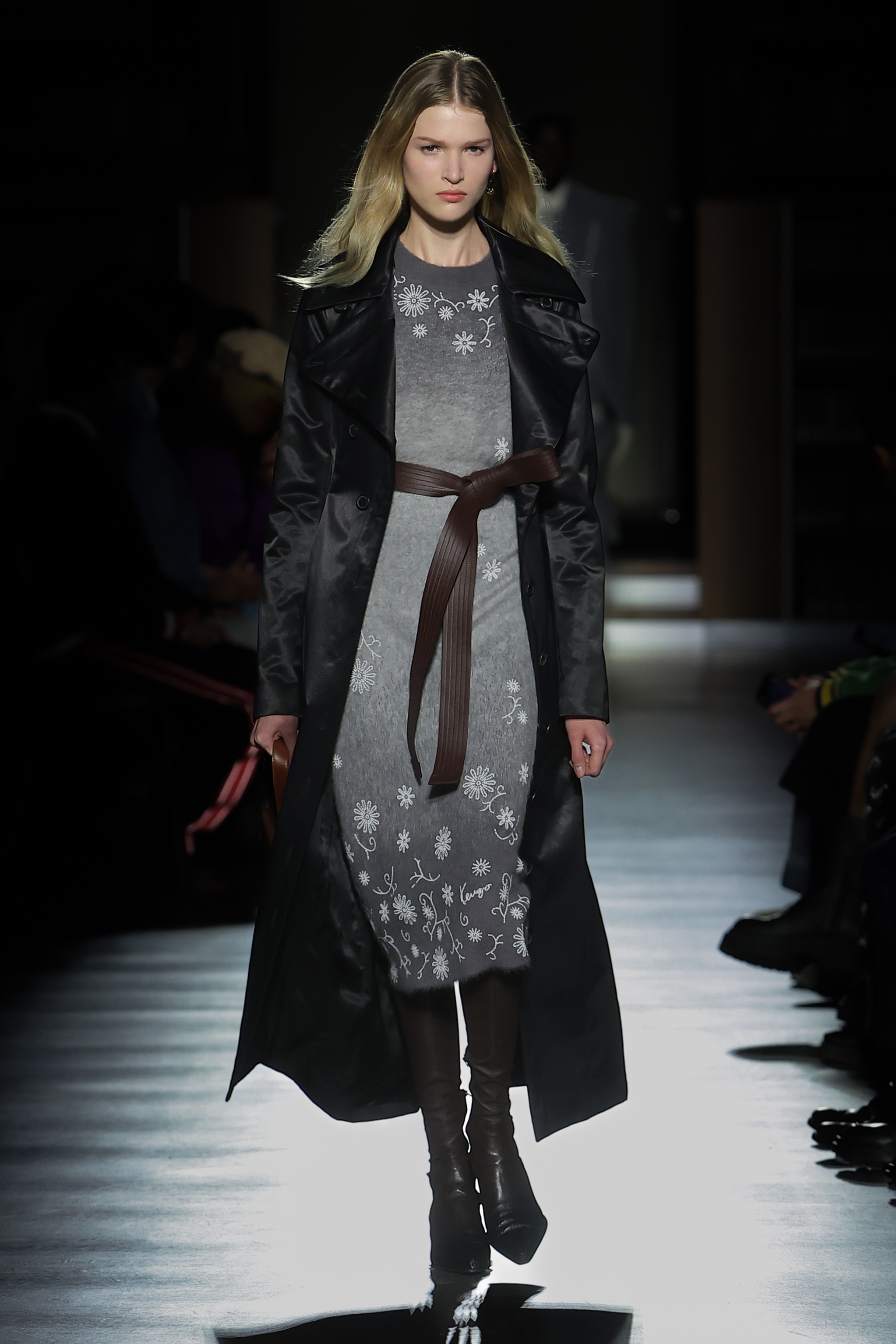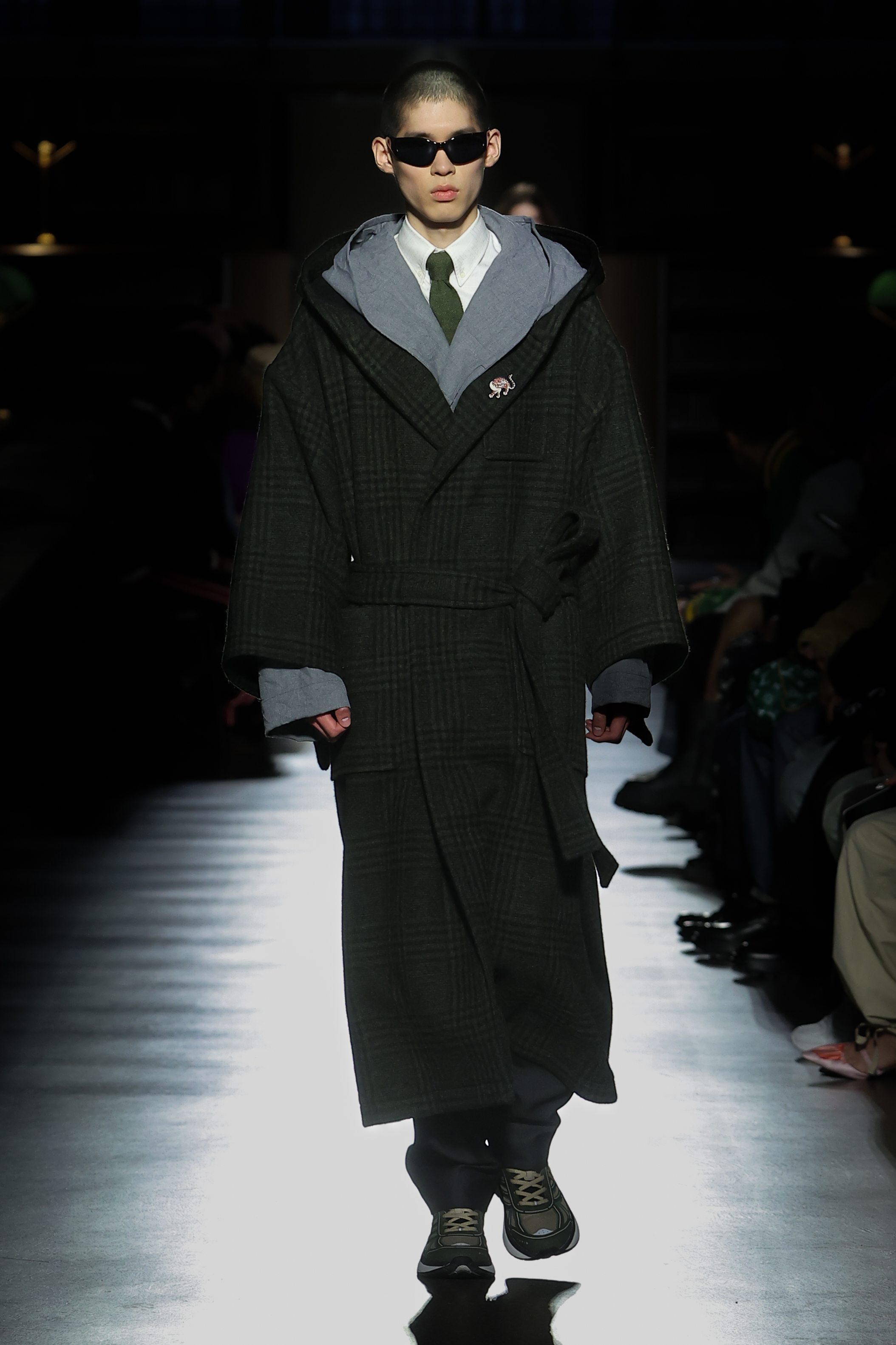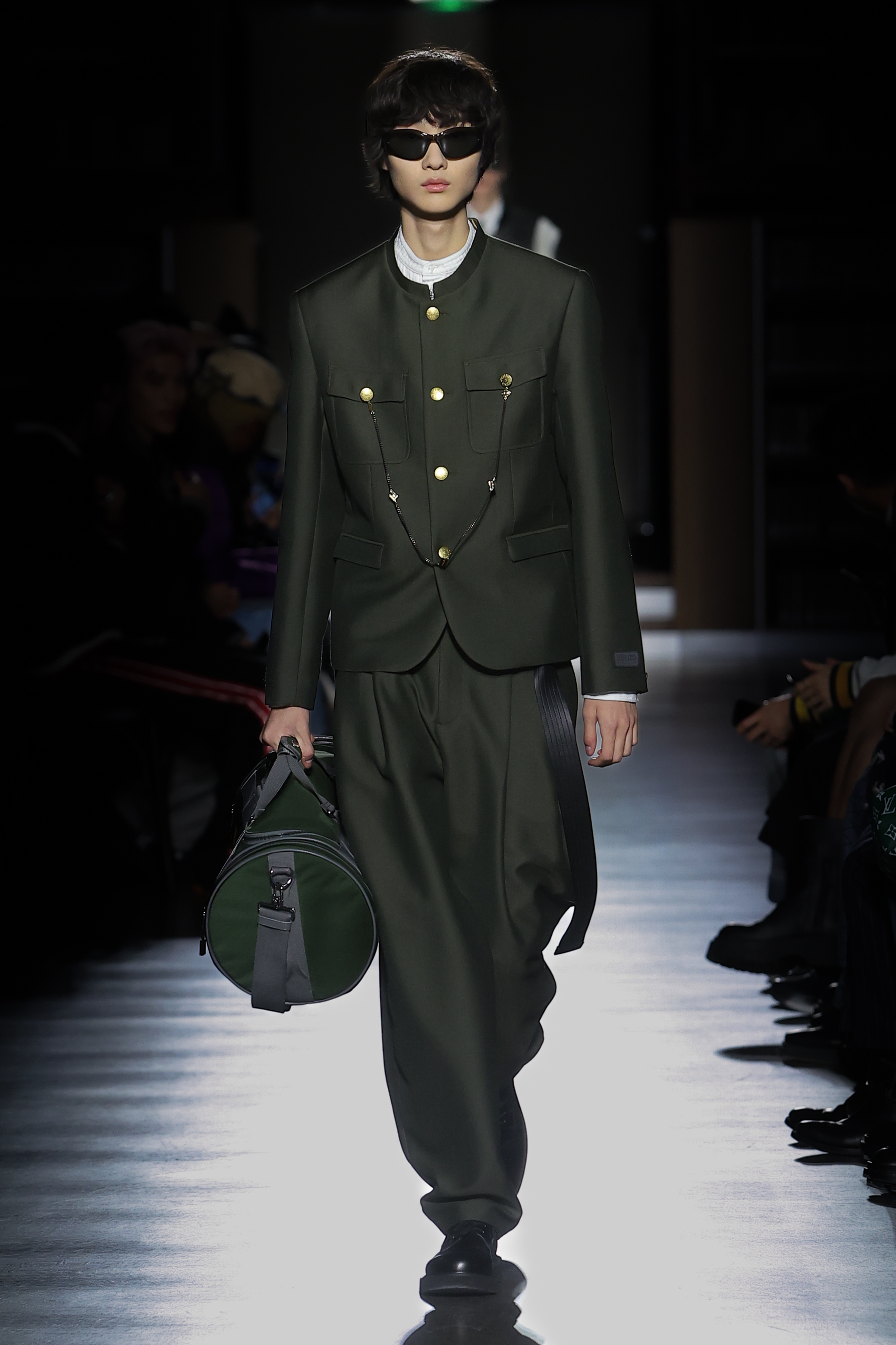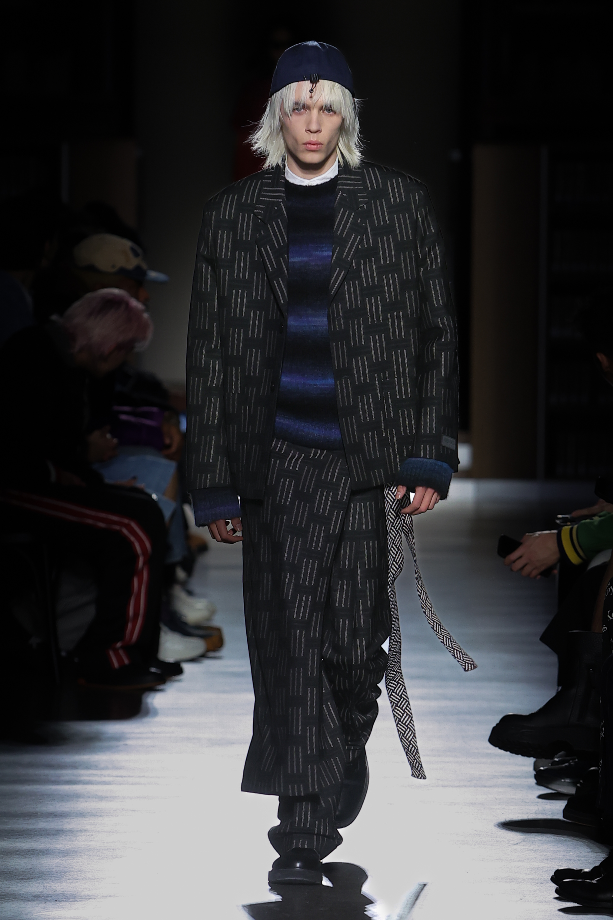 The women’s silhouette adapts the Maison’s elongated line across body-conscious and looser volumes with gestures of sculpting. Twin-set compositions set the tone for variations on suits, continuously nipped at the waist with judo belts. Dresses, skirts and tops in plissé soleil establish a crafty feel echoed throughout. Women’s tailoring fuses Eastern and Western construction in oversized and fitted forms, while flight and cargo garments appear in elegant cuts. Led by the gakuran schoolboy suit, the men’s silhouette morphs tailored and casual lines likewise expressed in voluminous duffel and car coats and barrel-leg trousers. Occidental/oriental men’s tailoring blends with casualwear informed by military pieces.