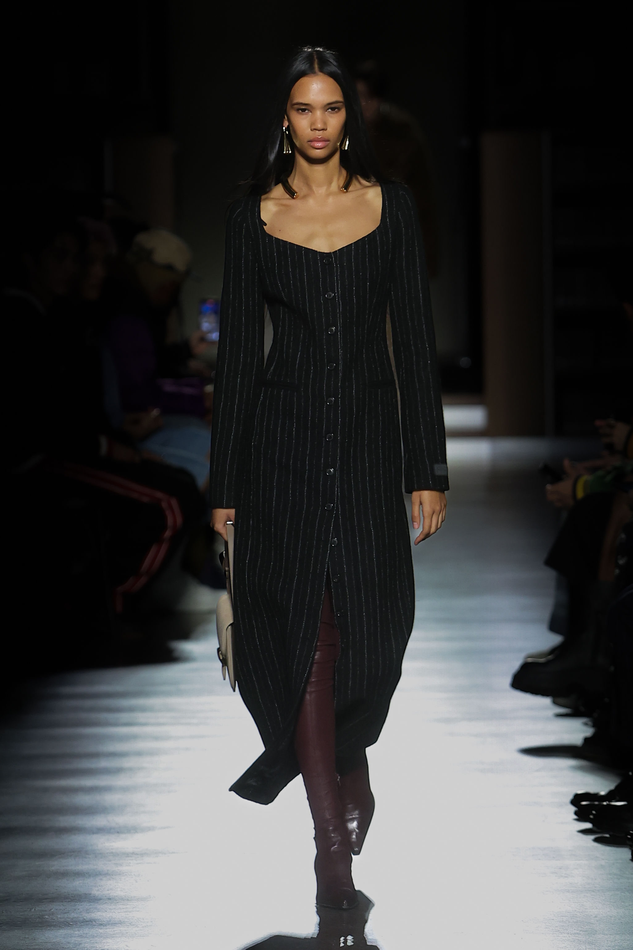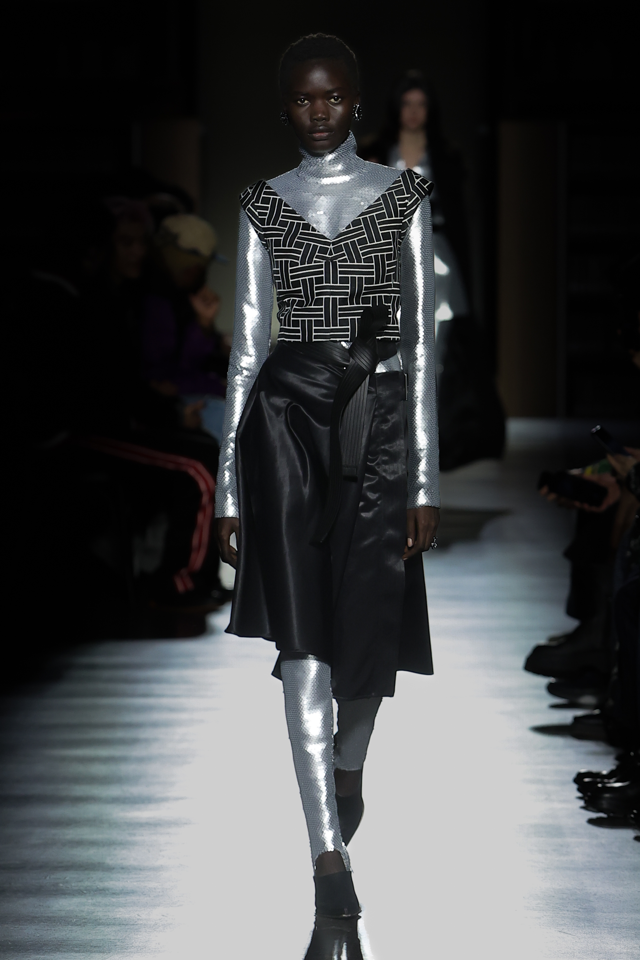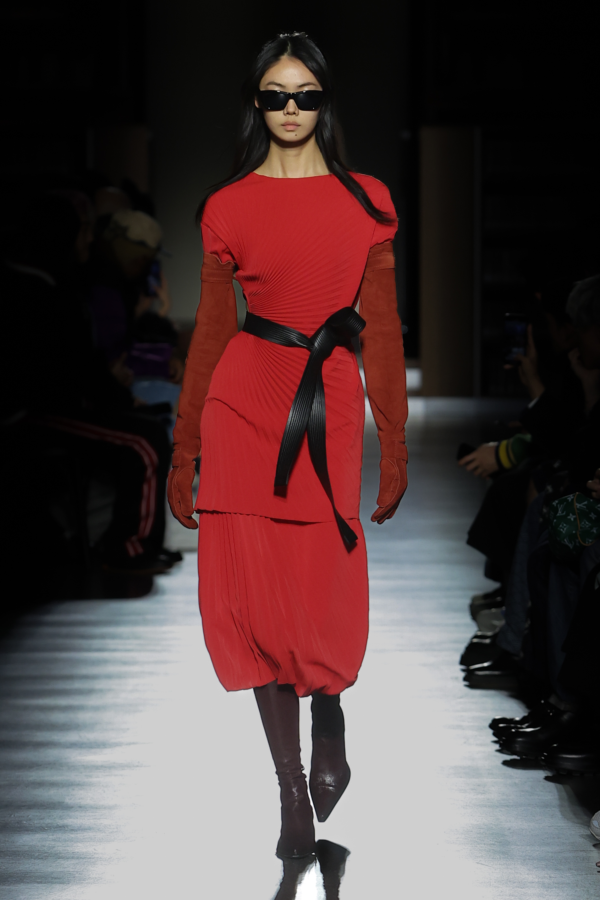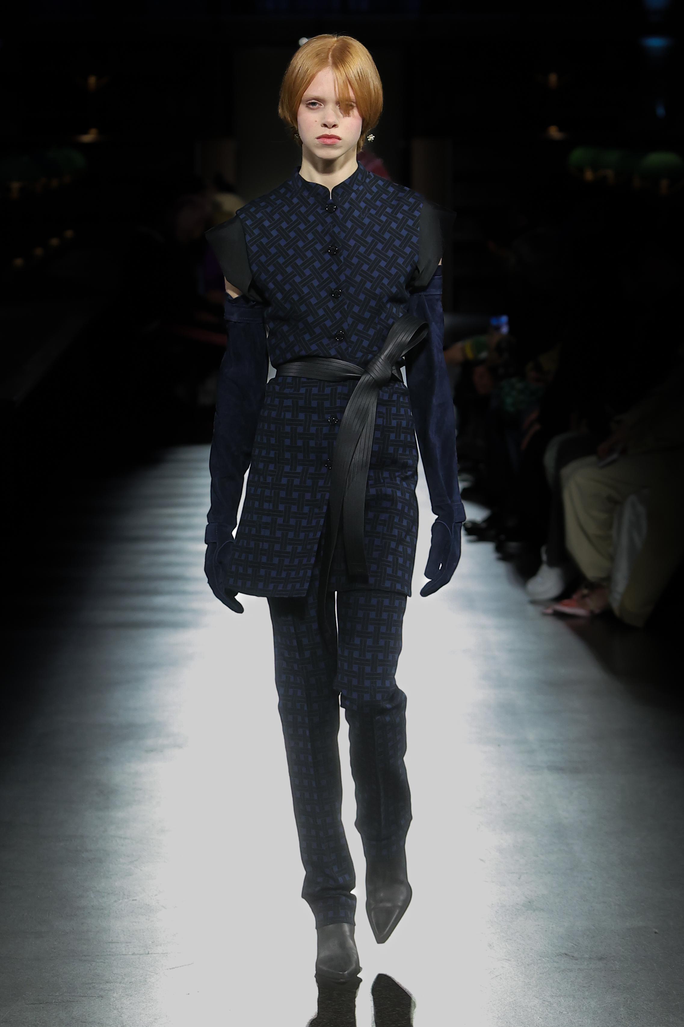 The women’s silhouette adapts the Maison’s elongated line across body-conscious and looser volumes with gestures of sculpting. Twin-set compositions set the tone for variations on suits, continuously nipped at the waist with judo belts. Dresses, skirts and tops in plissé soleil establish a crafty feel echoed throughout. Women’s tailoring fuses Eastern and Western construction in oversized and fitted forms, while flight and cargo garments appear in elegant cuts. Led by the gakuran schoolboy suit, the men’s silhouette morphs tailored and casual lines likewise expressed in voluminous duffel and car coats and barrel-leg trousers. Occidental/oriental men’s tailoring blends with casualwear informed by military pieces.