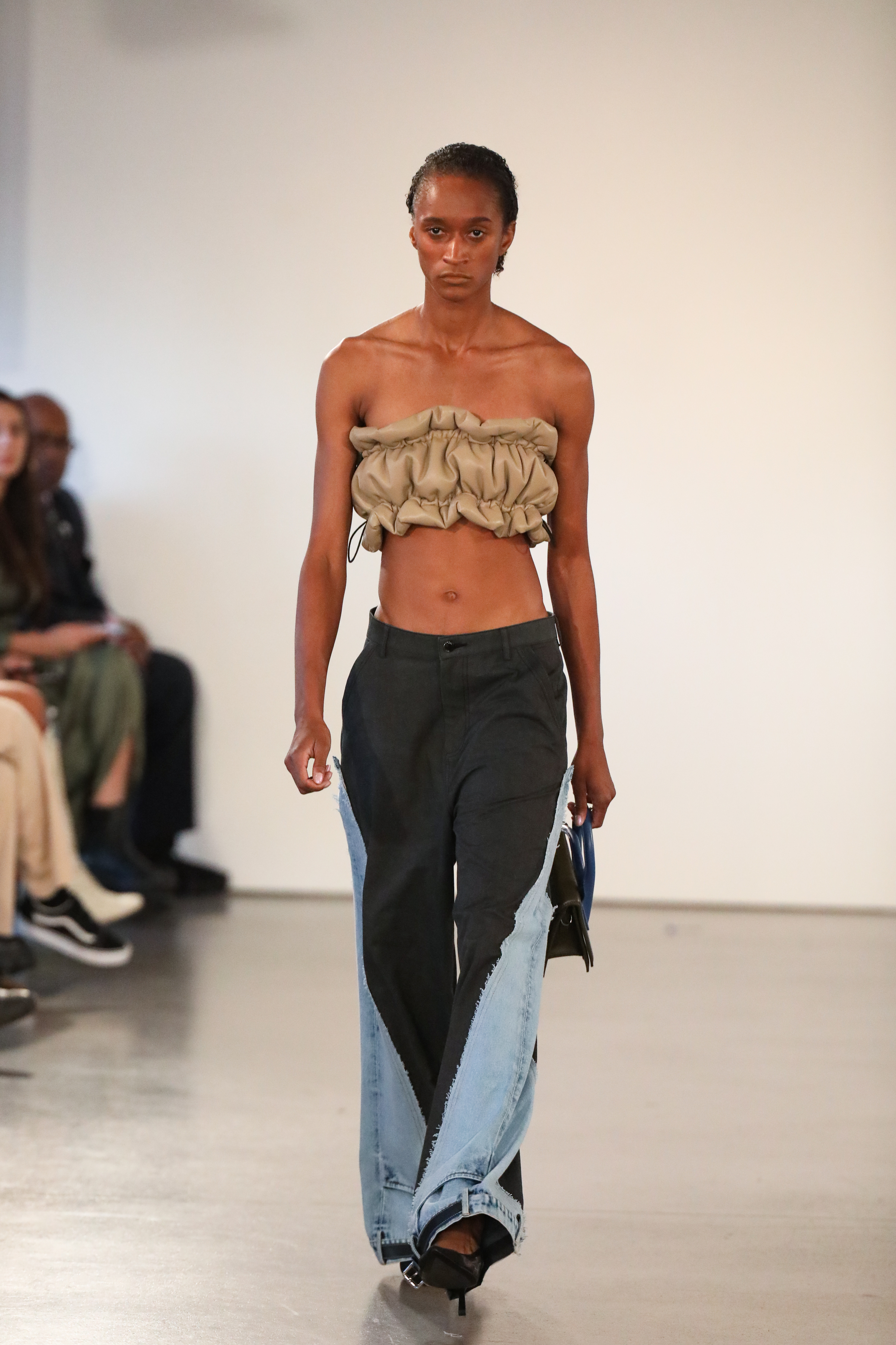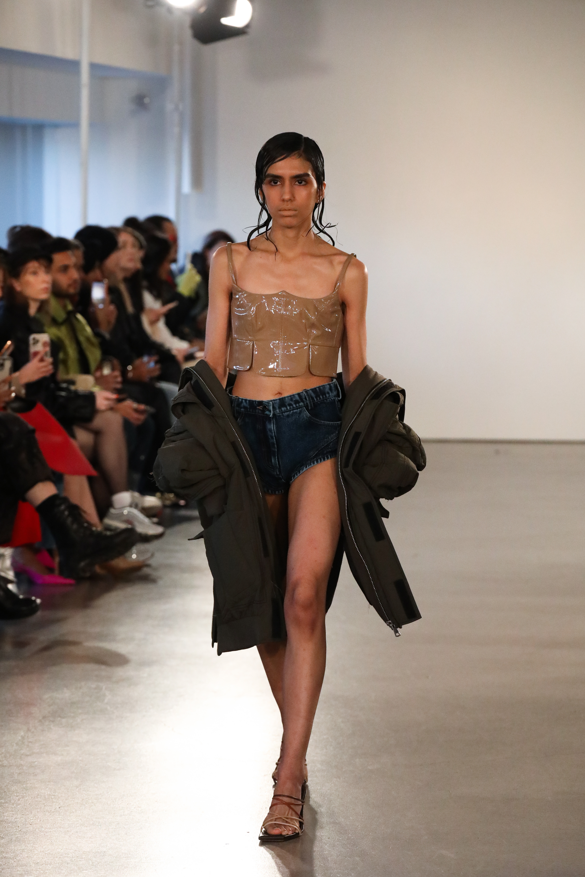 A multi-faceted creature serves as the mascot for the season - concocted as a representation of the innate curiosity and malleability of the psyche. Twisted and convoluted takes on uniform grids and soothing stripes adorn prints and embroideries-emulating nature at its most feral and uncontrolled. Proportions are played with arbitrarily and elements blocked with one another to be abrupt and fragmented. In the midst of fabric one may find glossy textures, decorative stitches and reinforced trims of leather.