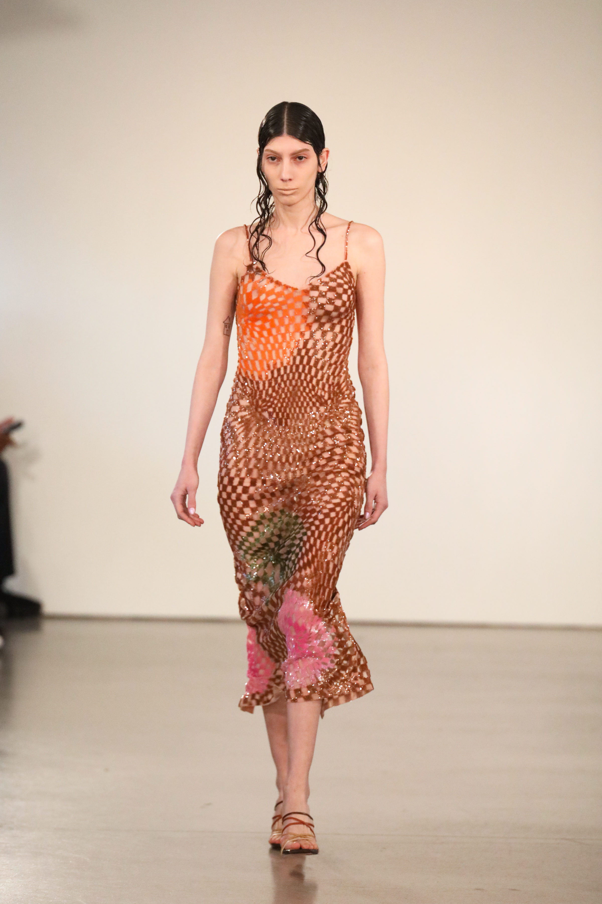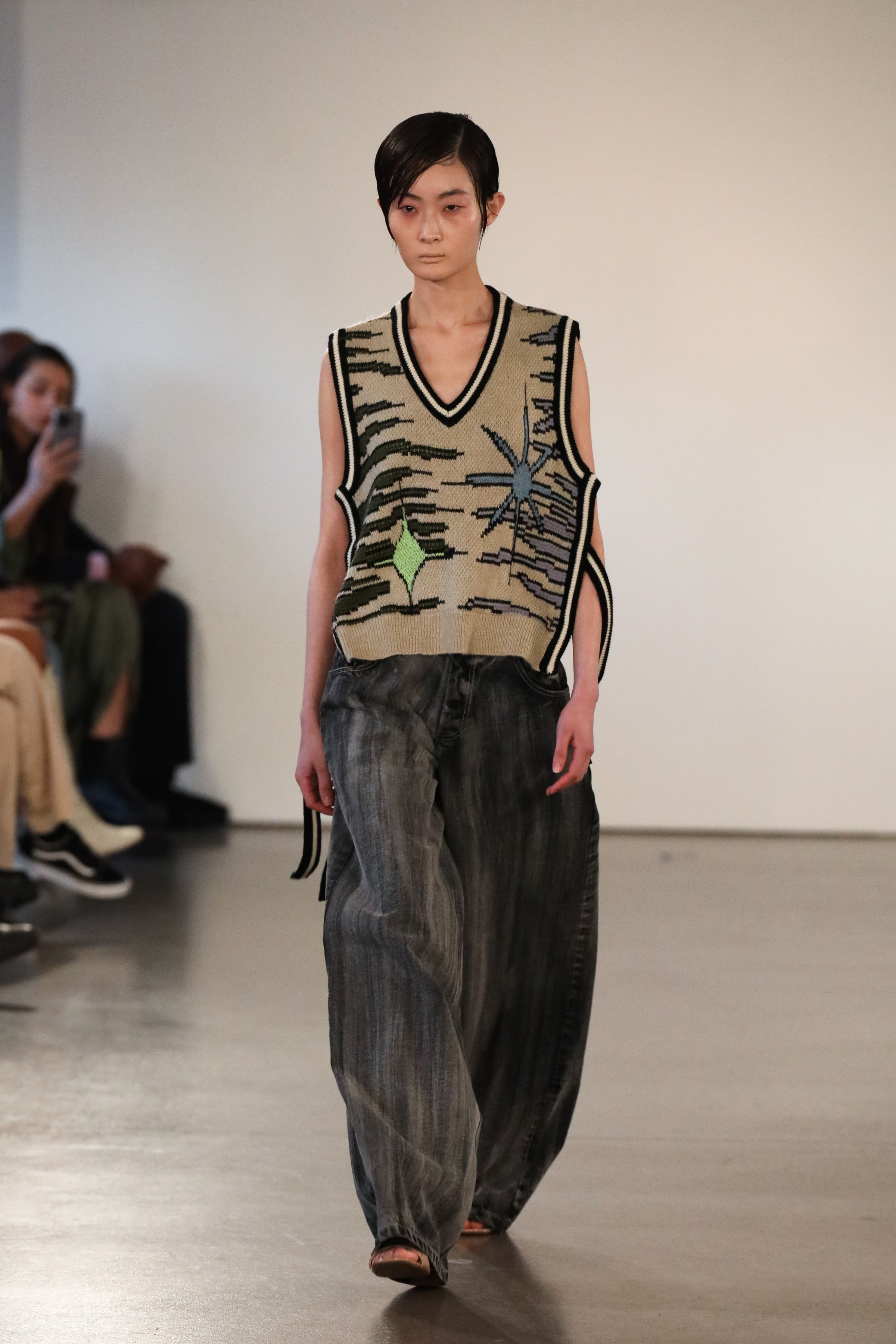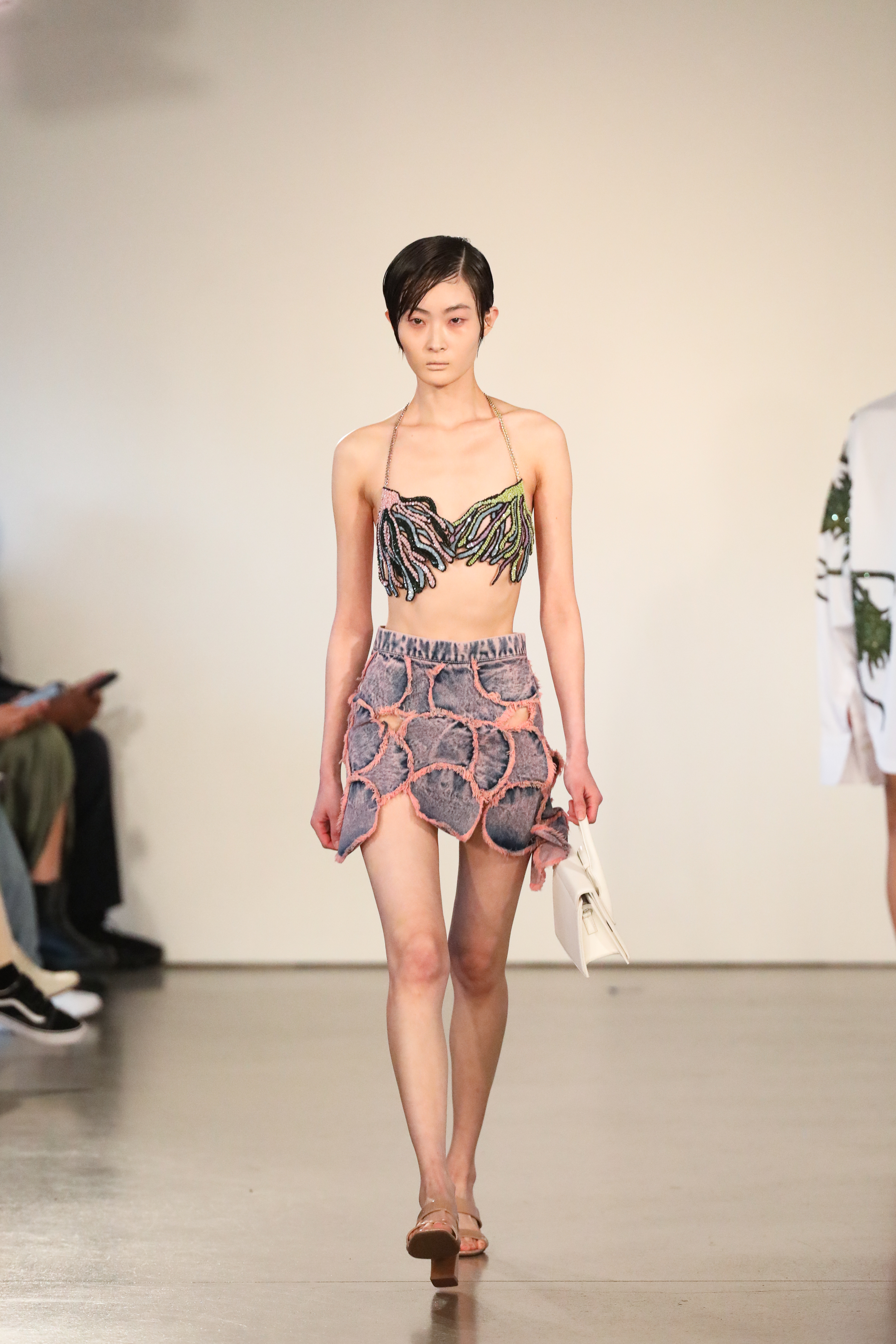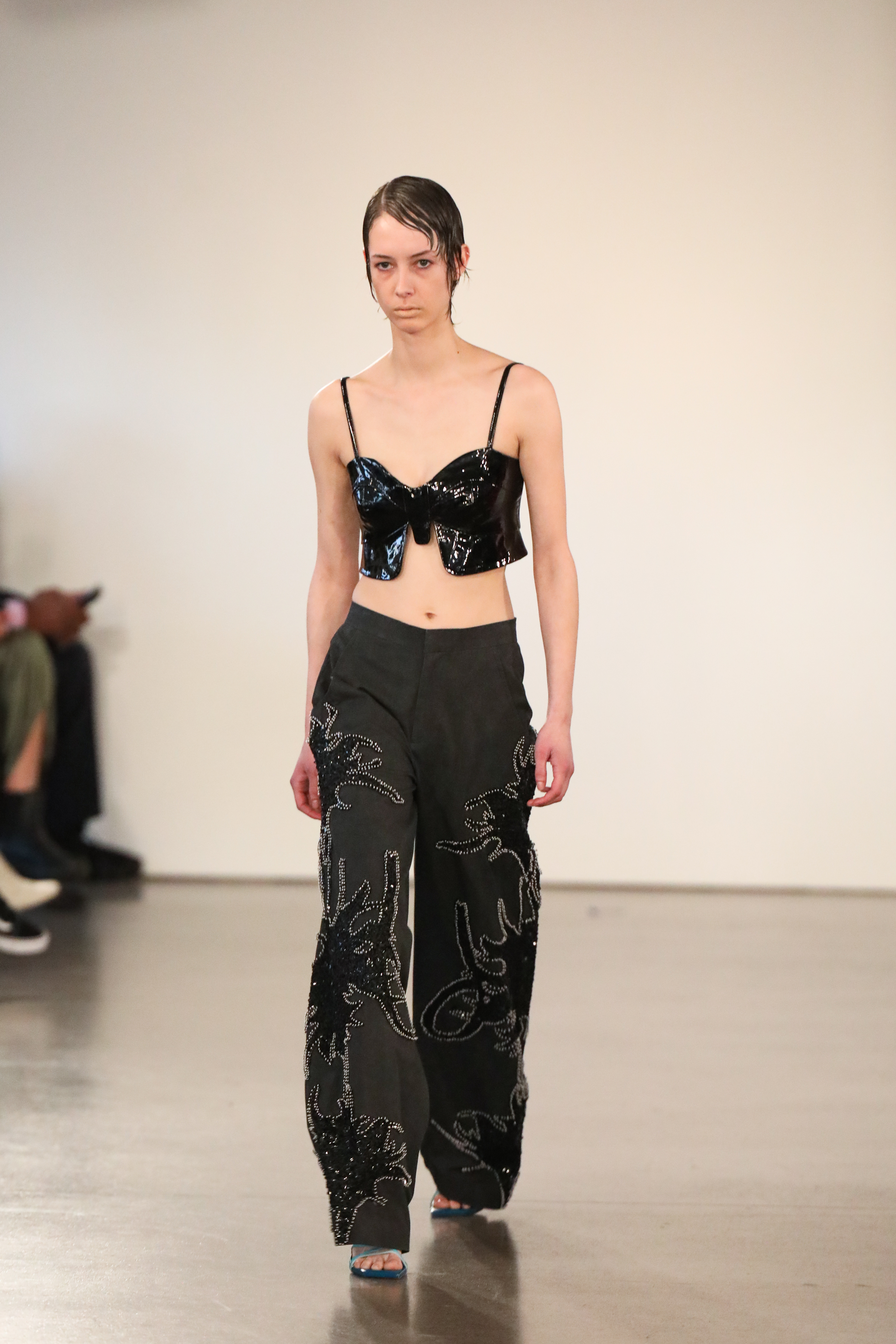 Through a mix of simple psychedelic elements and extravagant blooms of embroidered motifs classically tailored relaxed pieces, the dichotomy of an active imagination is brought to the forefront. A party for one turned rife with ruination, a creature emanating from a mirror-ball sparkling in the mind, Flowers that act as transformative portals; it’s all as real as real can be in the endless realm of the mind.