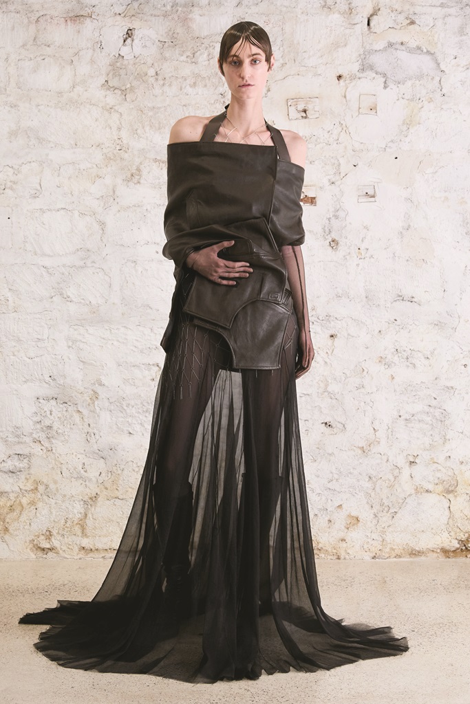 This collection embodies a shift for Koché, a more peaceful vision of fashion, feminine and masculine, softer, more sensual, for day and night.