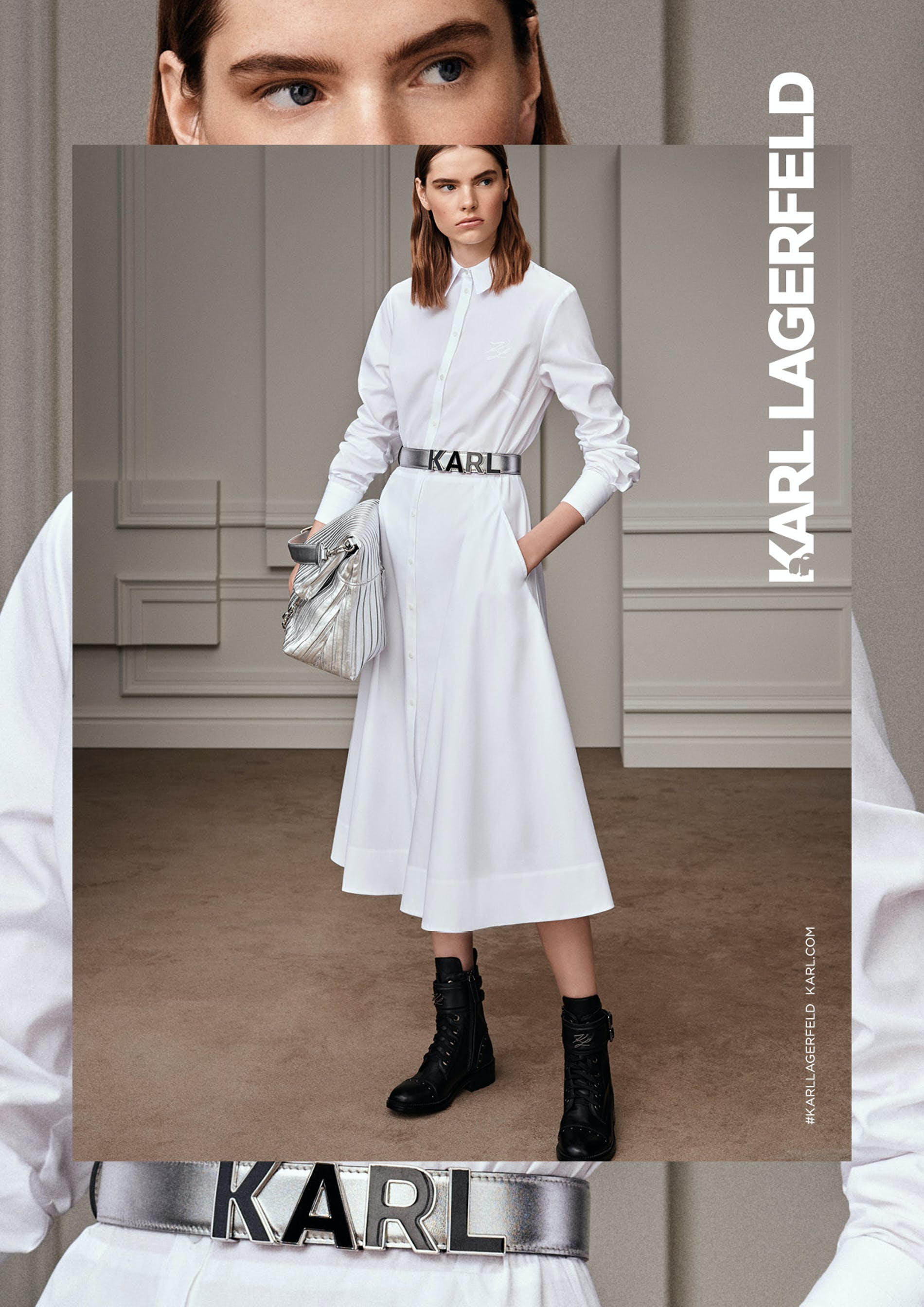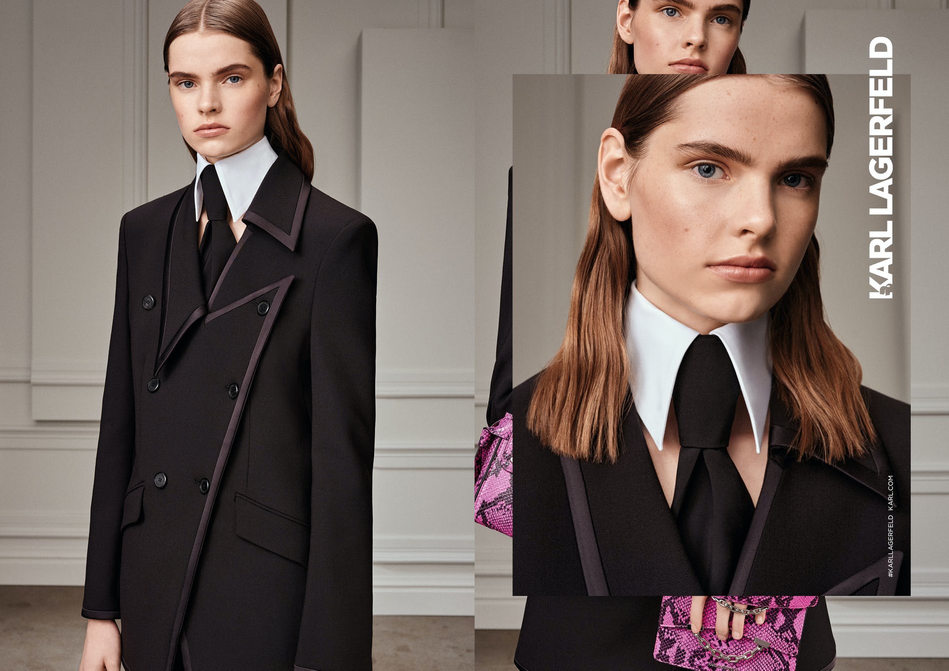 The KARL LAGERFELD Fall 2020 women’s collection brings a contemporary touch to influences from historic decades and places. Styles combine references found in 18th century Europe — a time period which Karl Lagerfeld was passionate about — paired with artisanal details, ‘90s silhouettes and a sophisticated spirit. The result brings a modern-day interpretation to classic inspirations; it’s fresh, feminine and powerful for a new age of chic.