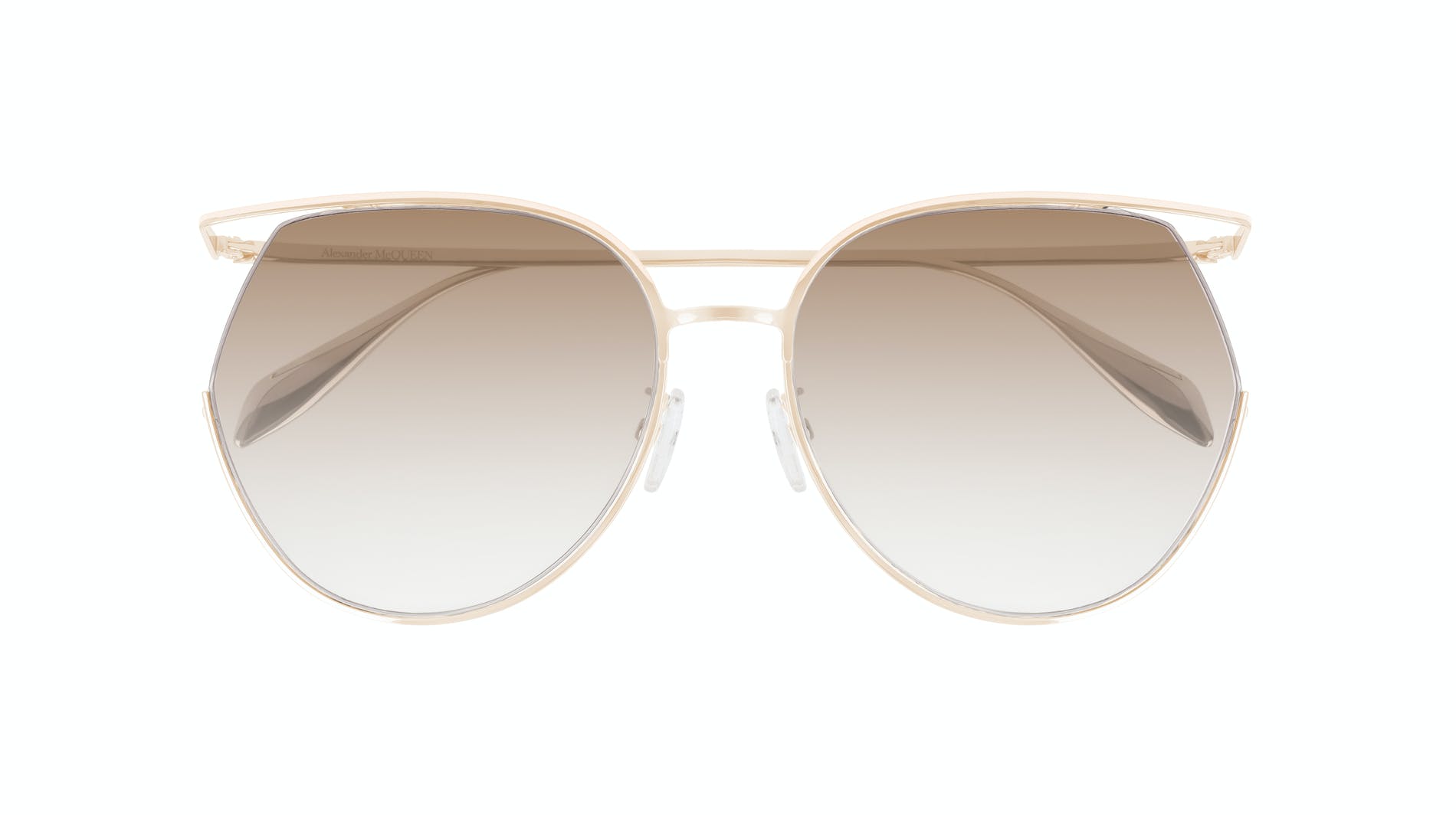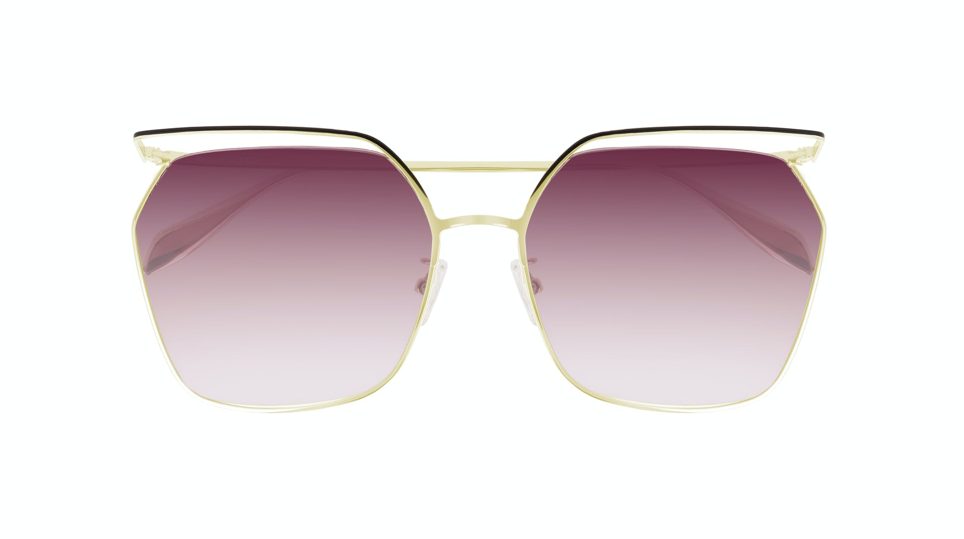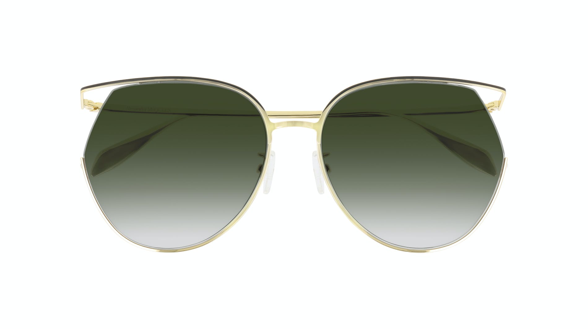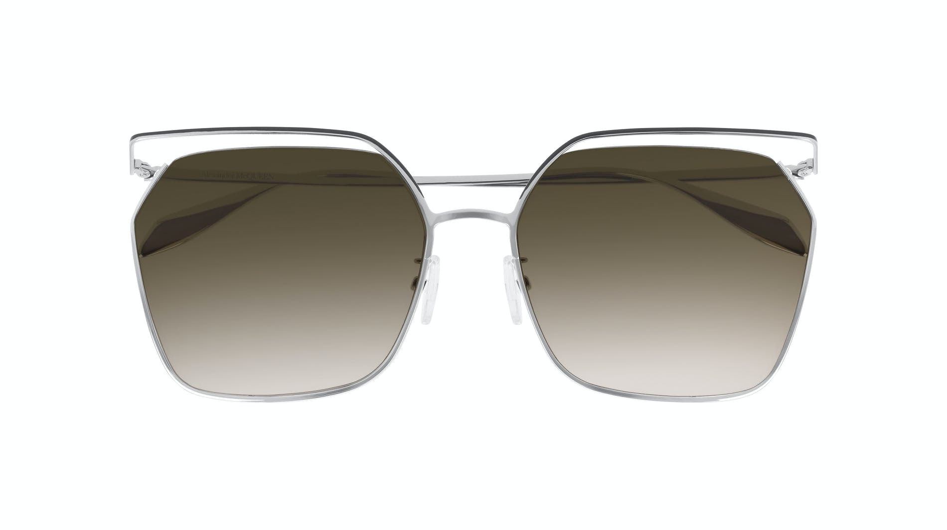 Upholding the house's empowering spirit, oversized frames ensure impact with cut-out effects, nylon wire rims and smooth enamel touches for a sophisticated and elegant look. The temples are directly connected to the highest part of the cut rim and feature an engraved Alexander McQueen logo.