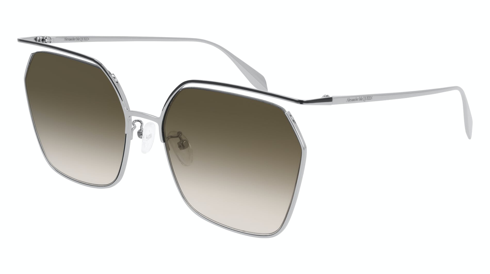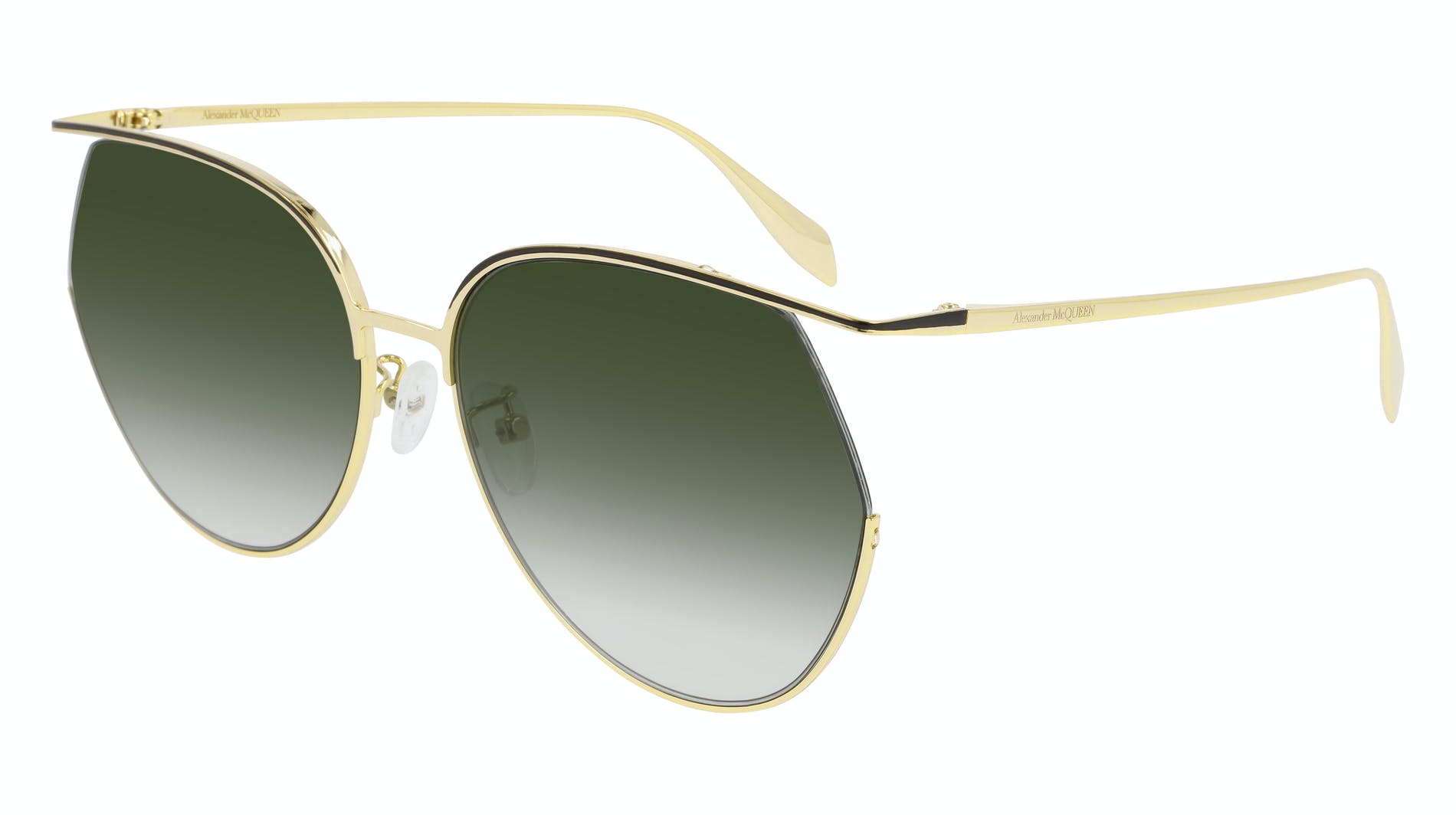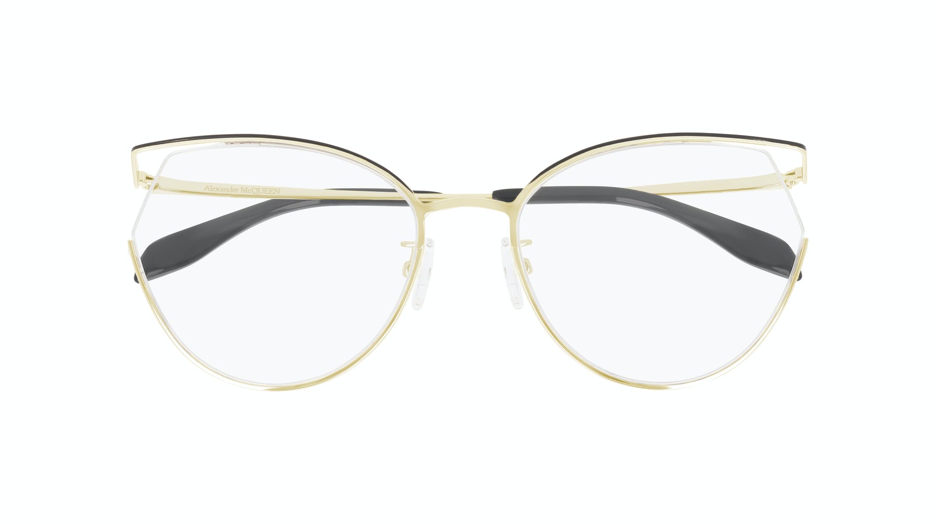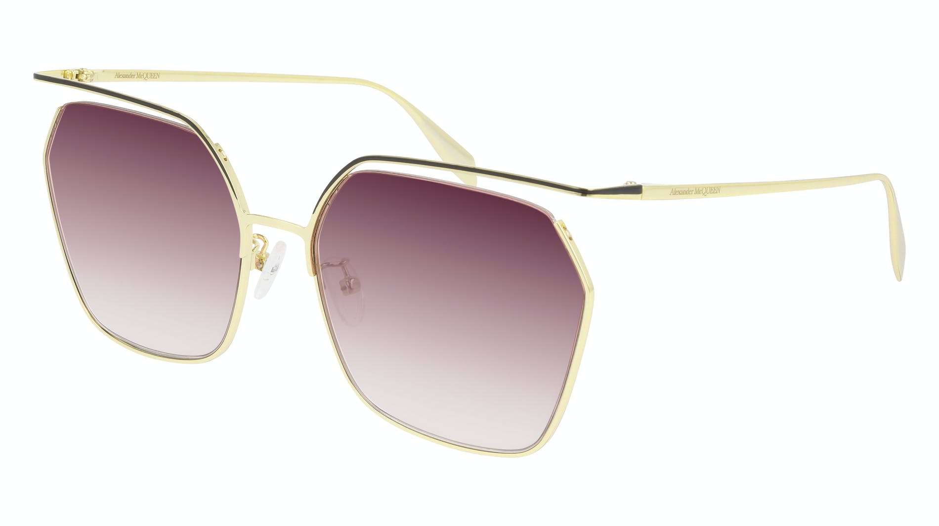 Upholding the house's empowering spirit, oversized frames ensure impact with cut-out effects, nylon wire rims and smooth enamel touches for a sophisticated and elegant look. The temples are directly connected to the highest part of the cut rim and feature an engraved Alexander McQueen logo.