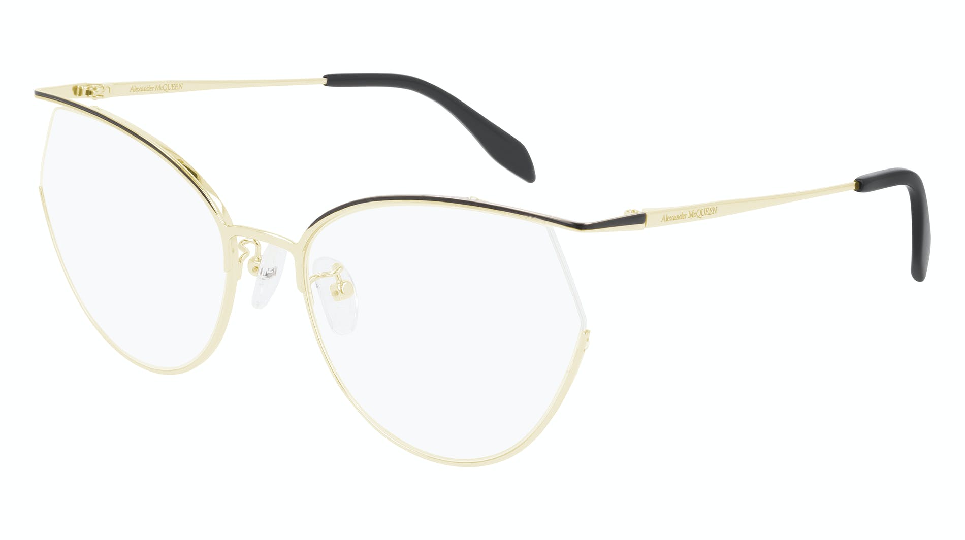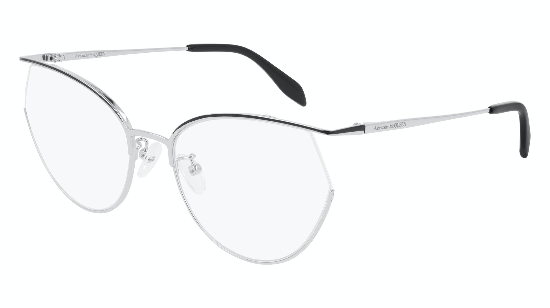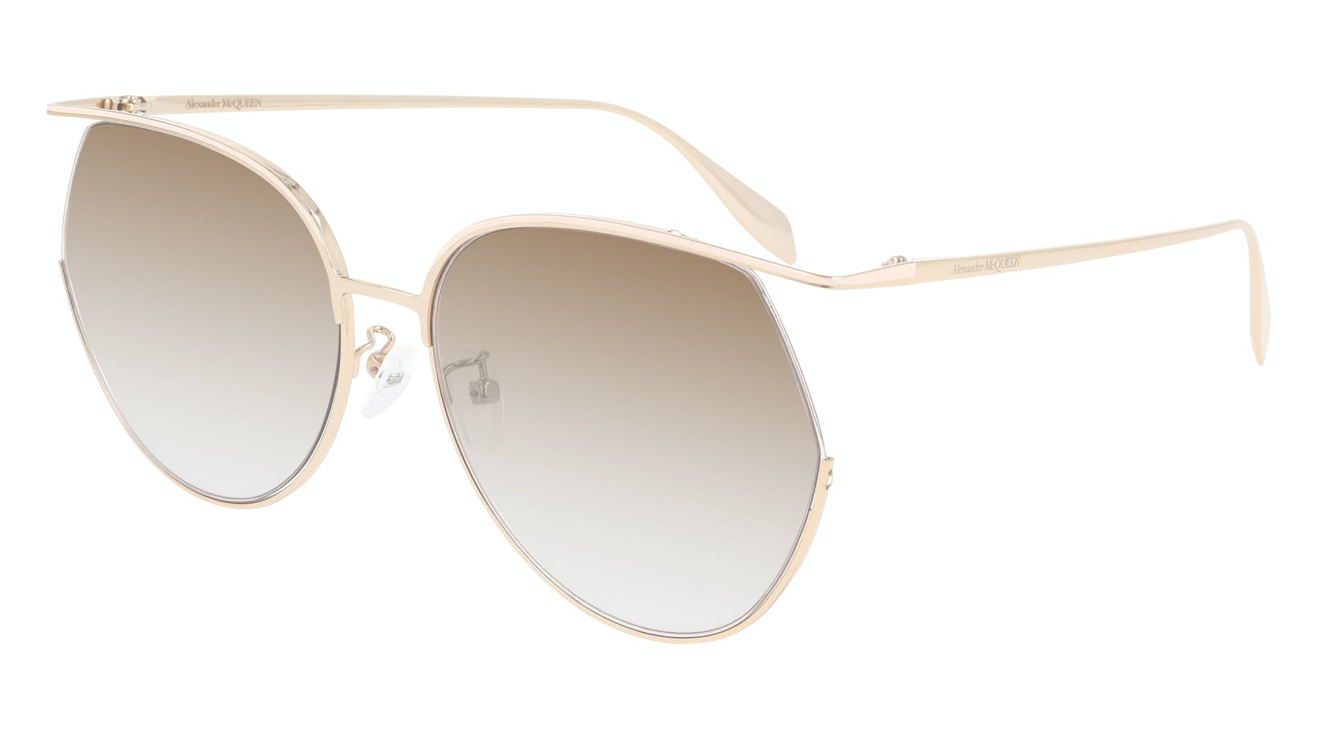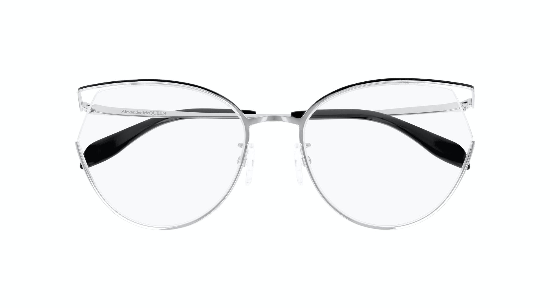 Upholding the house's empowering spirit, oversized frames ensure impact with cut-out effects, nylon wire rims and smooth enamel touches for a sophisticated and elegant look. The temples are directly connected to the highest part of the cut rim and feature an engraved Alexander McQueen logo.