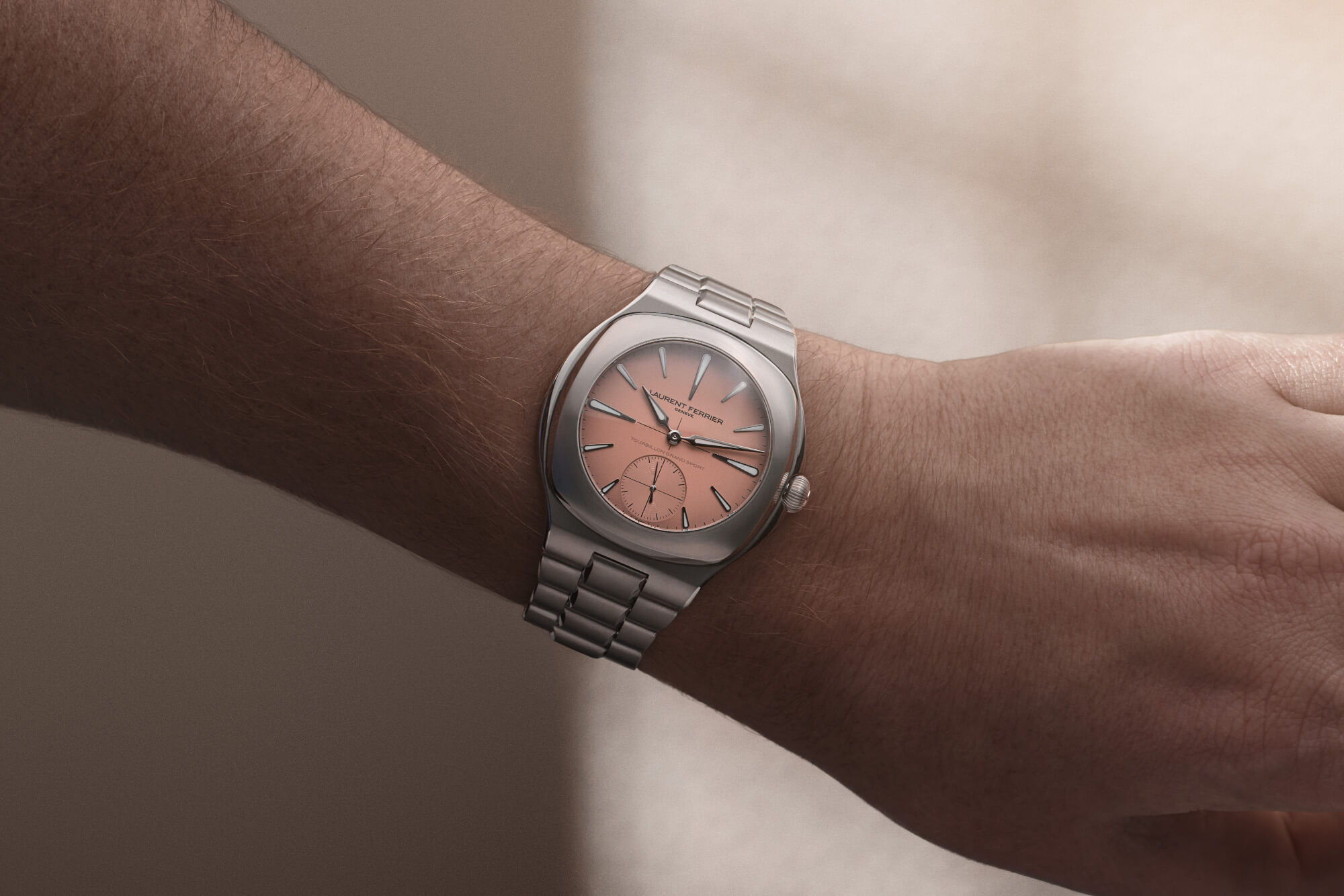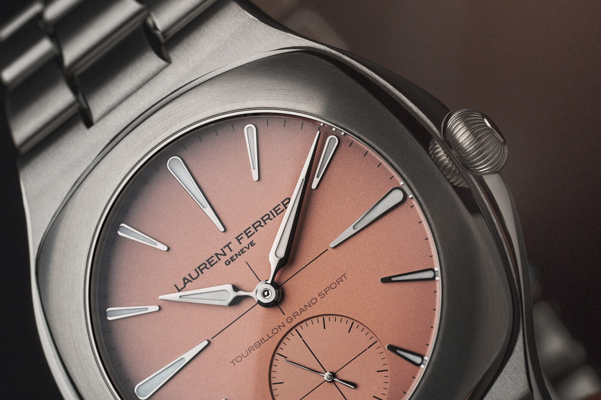 This new version of the Grand Sport Tourbillon features a case with an integrated bracelet, made entirely of grade 5 titanium and adorned with an elegant dial with gradient shades of salmon-pink . Previously launched in different, highly limited editions, this new version is intended to be timeless, and will therefore become part of the brand's permanent collection. However, as with each LAURENT FERRIER design, the Grand Sport Tourbillon Pursuit will be highly exclusive, with only 15 pieces manufactured each year.