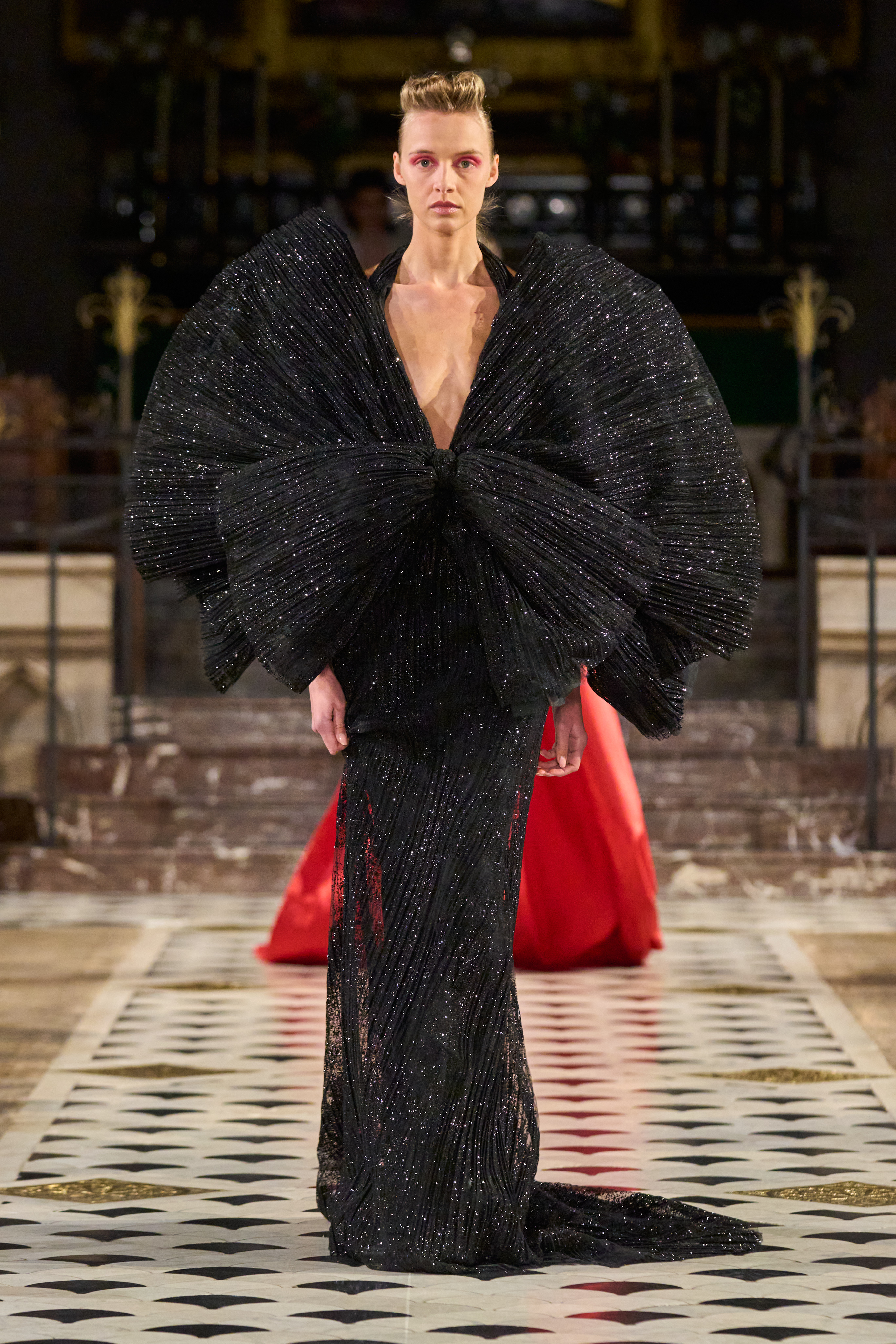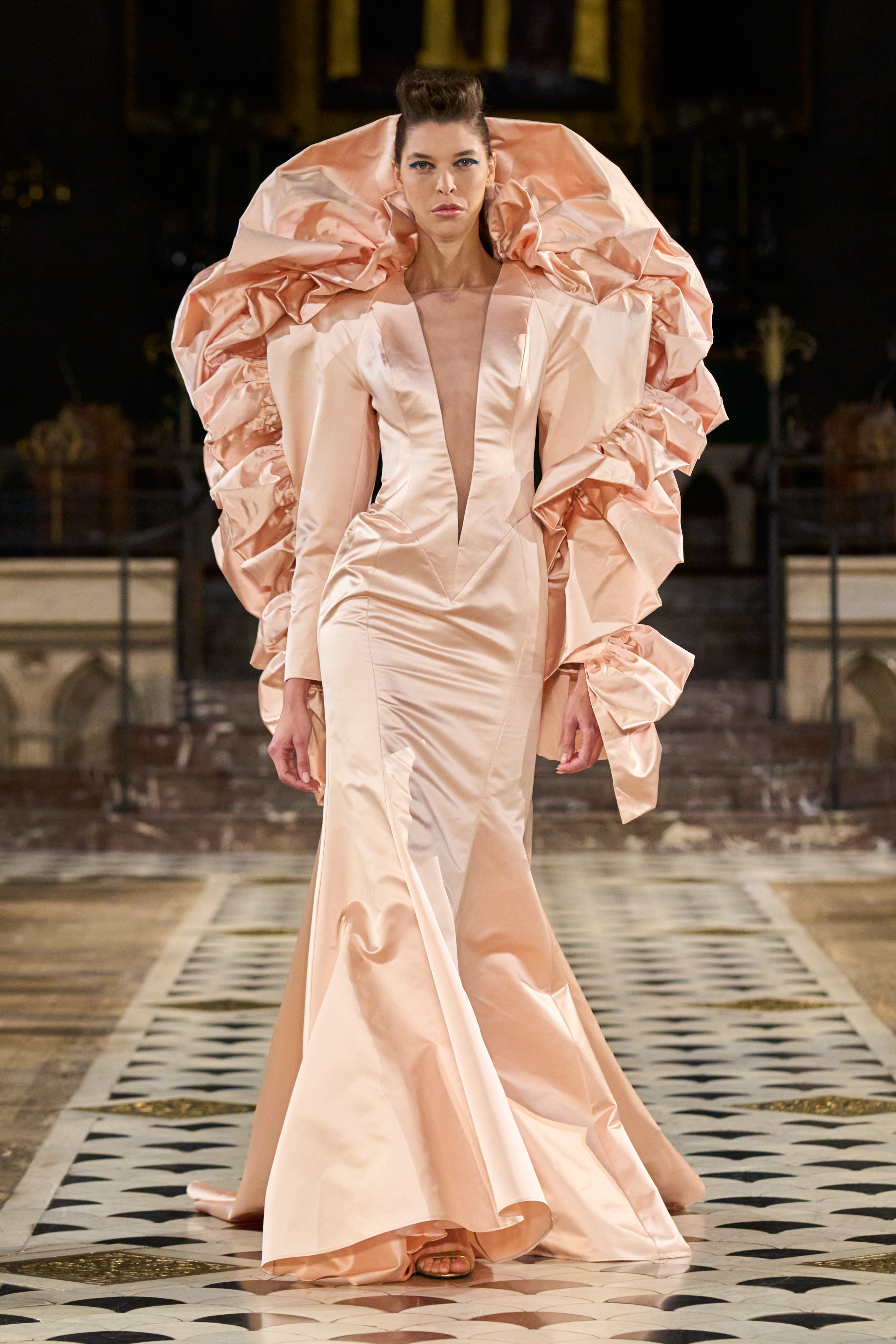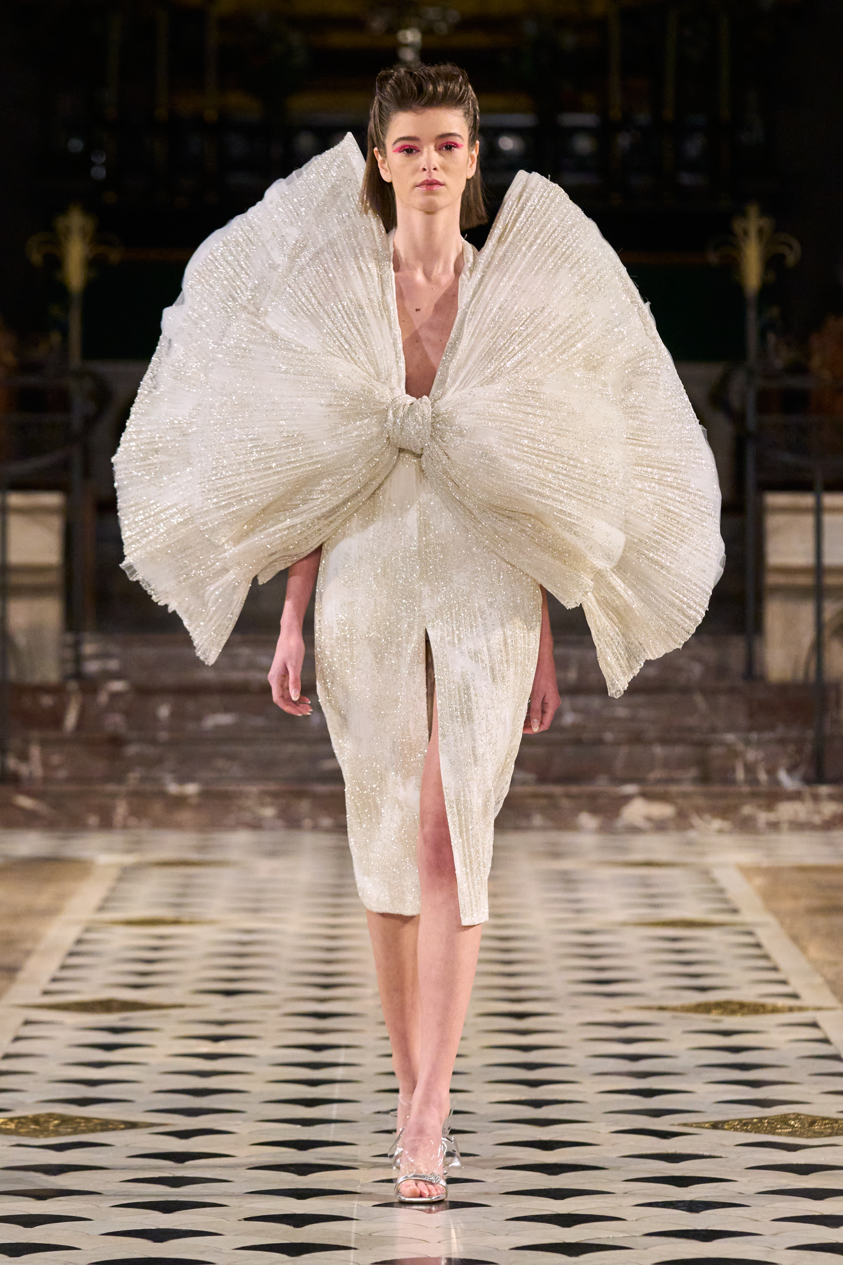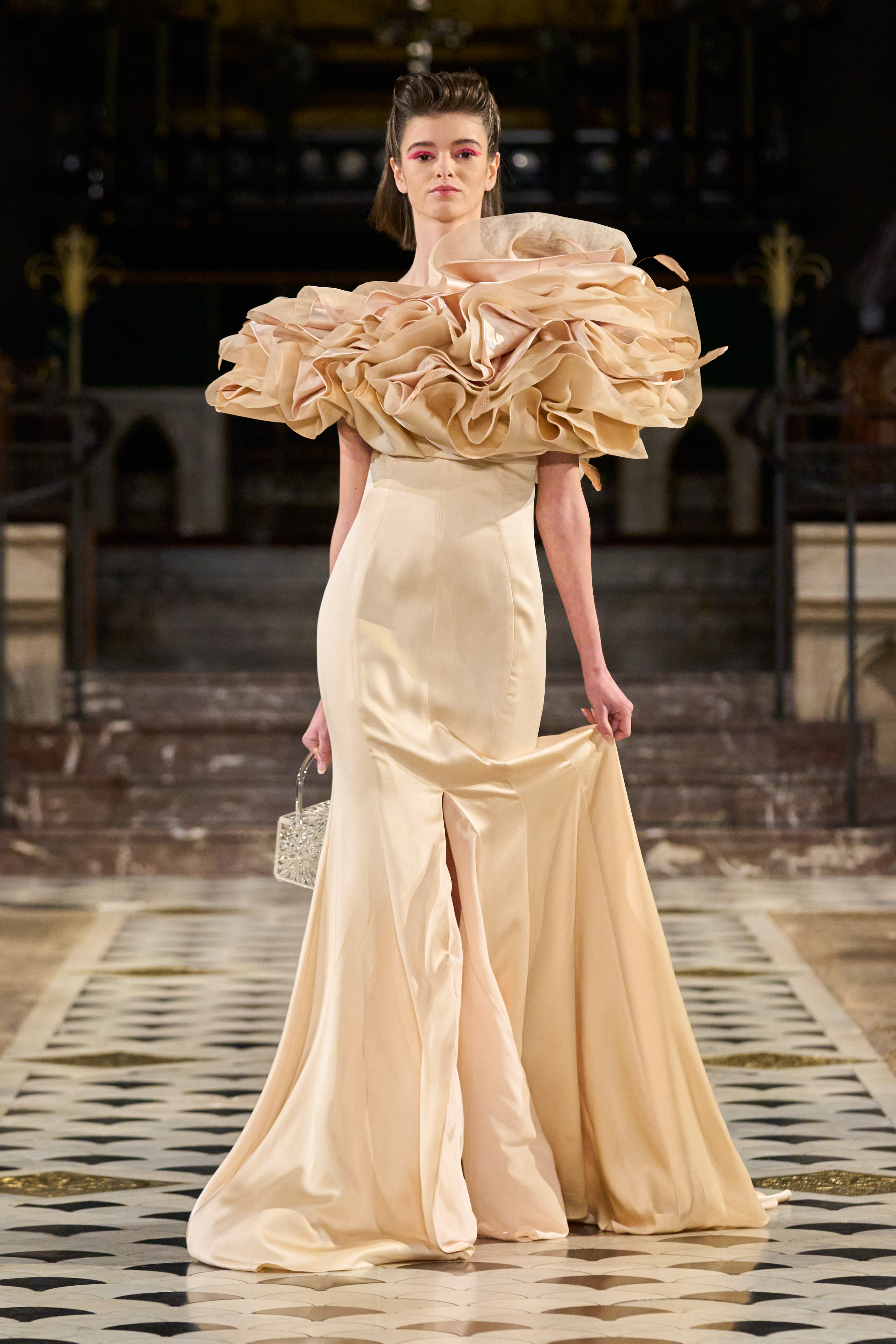 Lena Erziak turns the spotlight on the stars of Hollywood. Inspired by the golden age of cinema, the designer takes her inspiration from an era where couture has never been more in tune with its contemporaries. Like the Hollywood stars, Lena Erziak presents a spectacular luxuriant collection. Without nostalgia, Lena reinvents glamour by adding a very personal and modern vision.