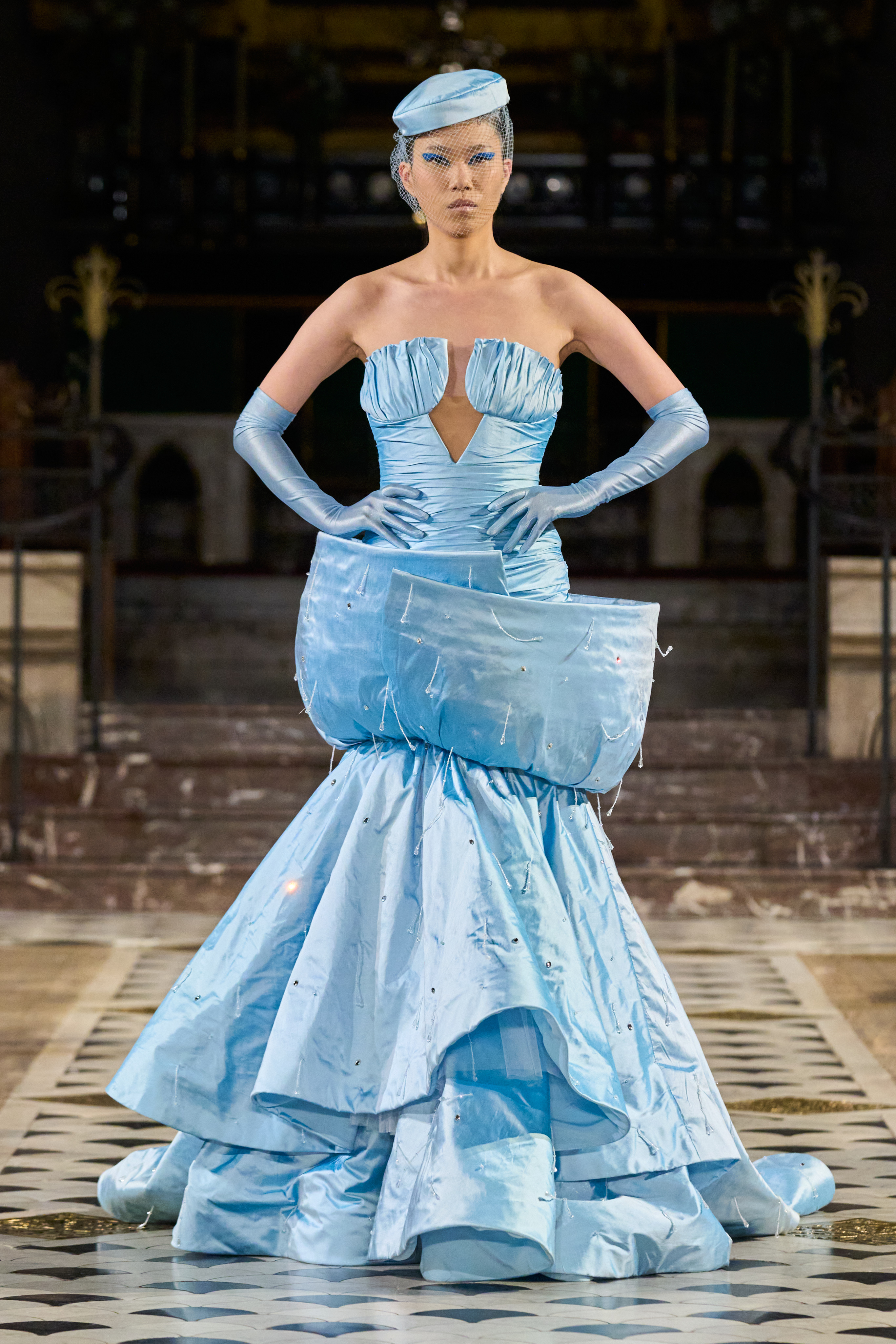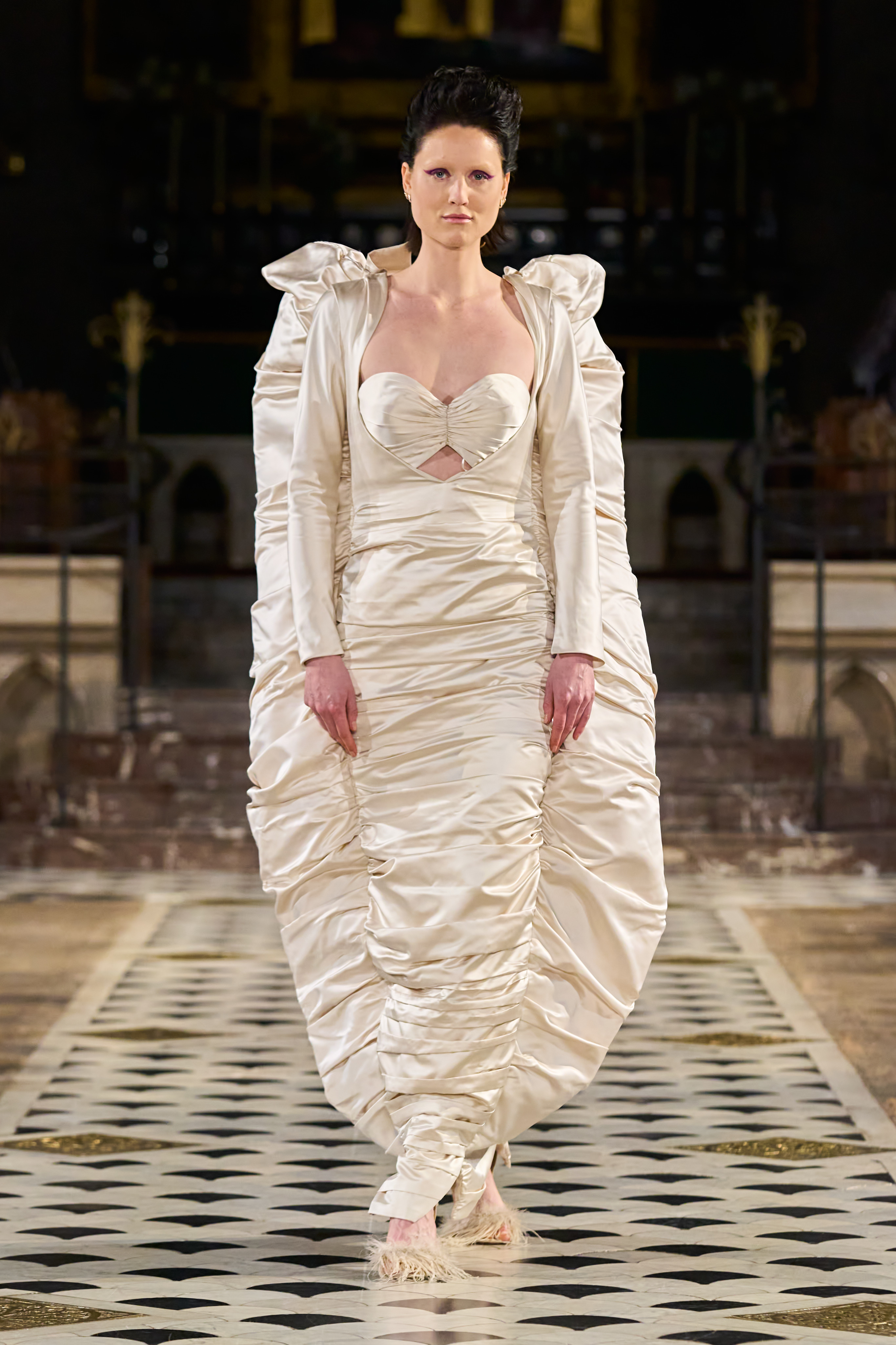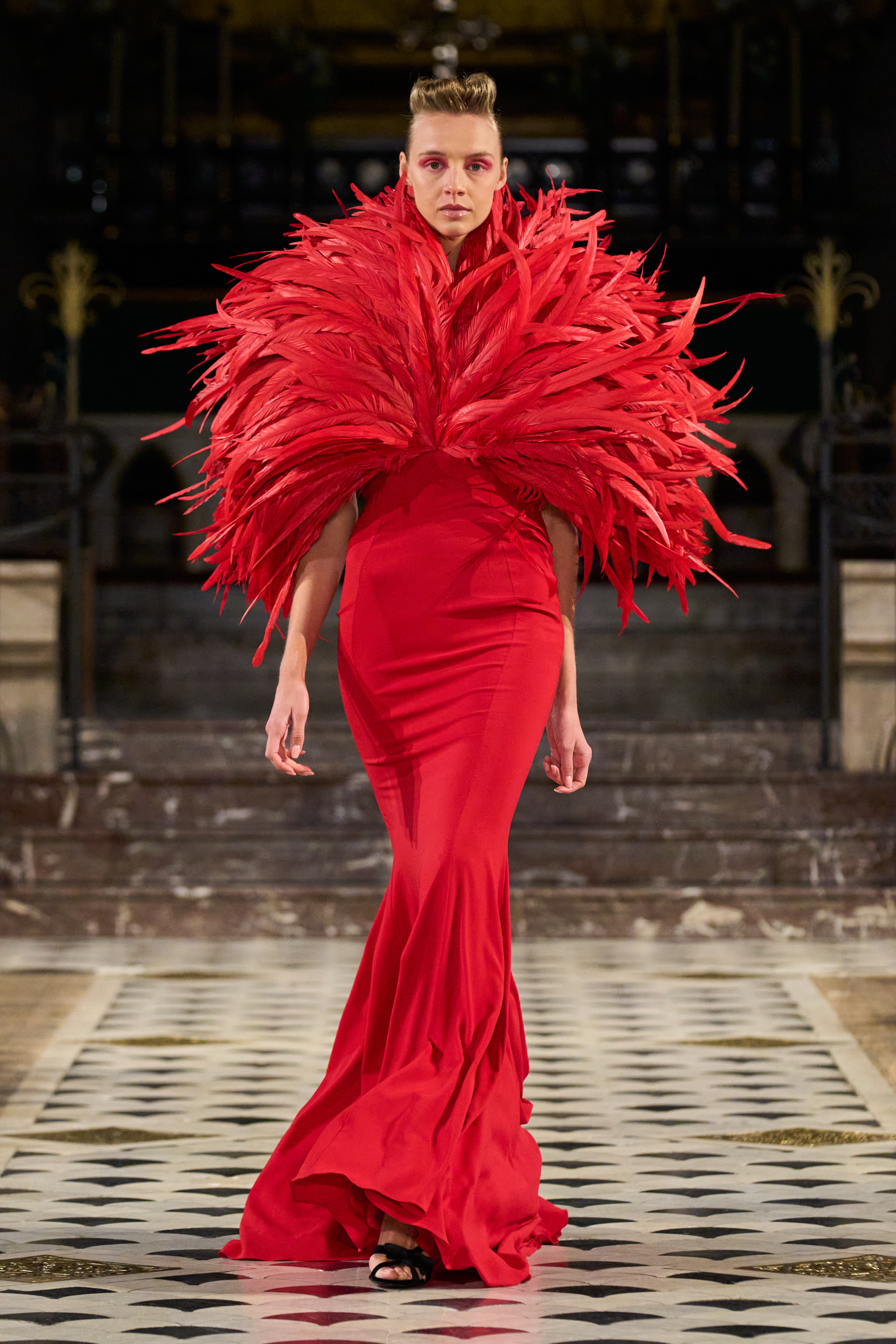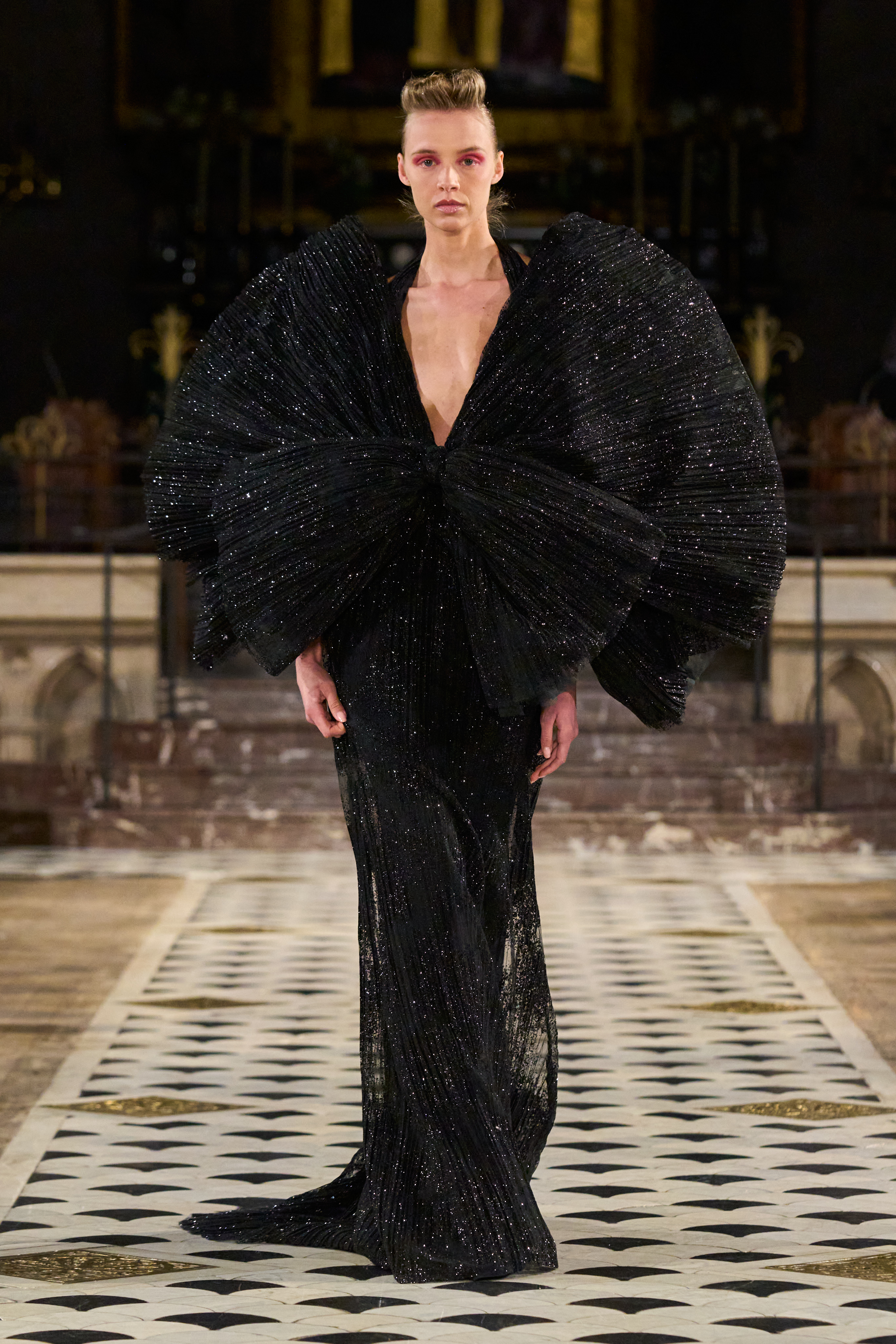 Lena Erziak turns the spotlight on the stars of Hollywood. Inspired by the golden age of cinema, the designer takes her inspiration from an era where couture has never been more in tune with its contemporaries. Like the Hollywood stars, Lena Erziak presents a spectacular luxuriant collection. Without nostalgia, Lena reinvents glamour by adding a very personal and modern vision.