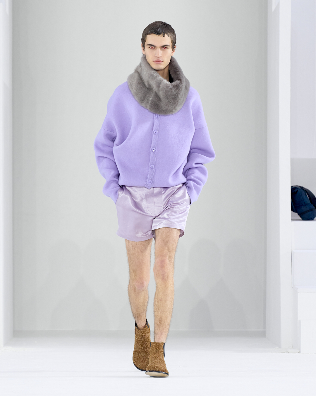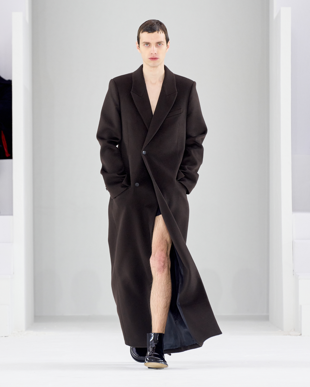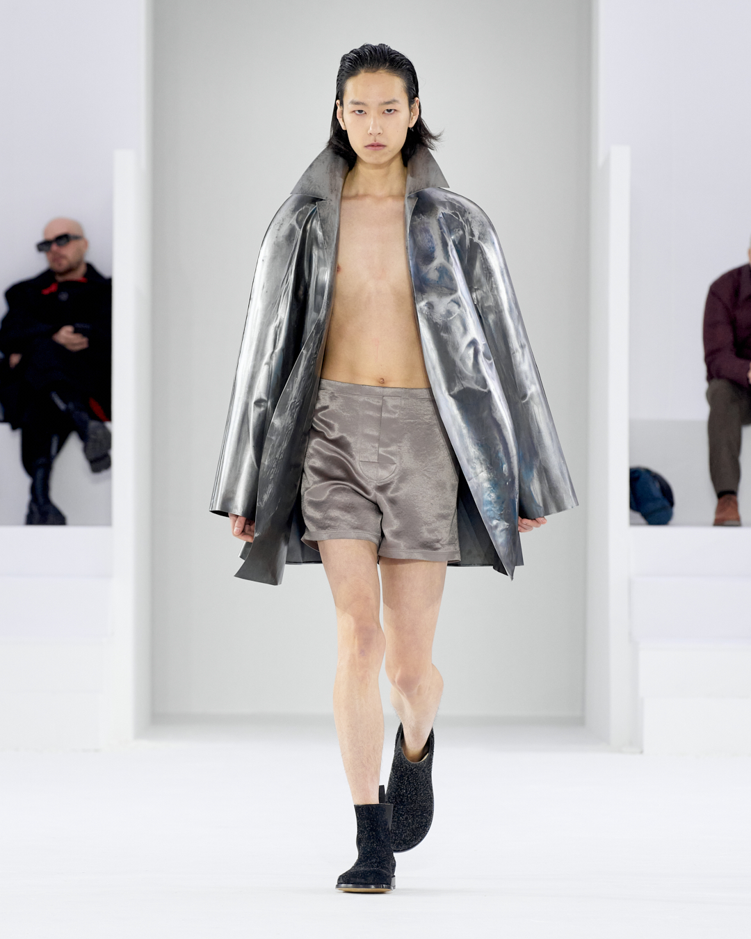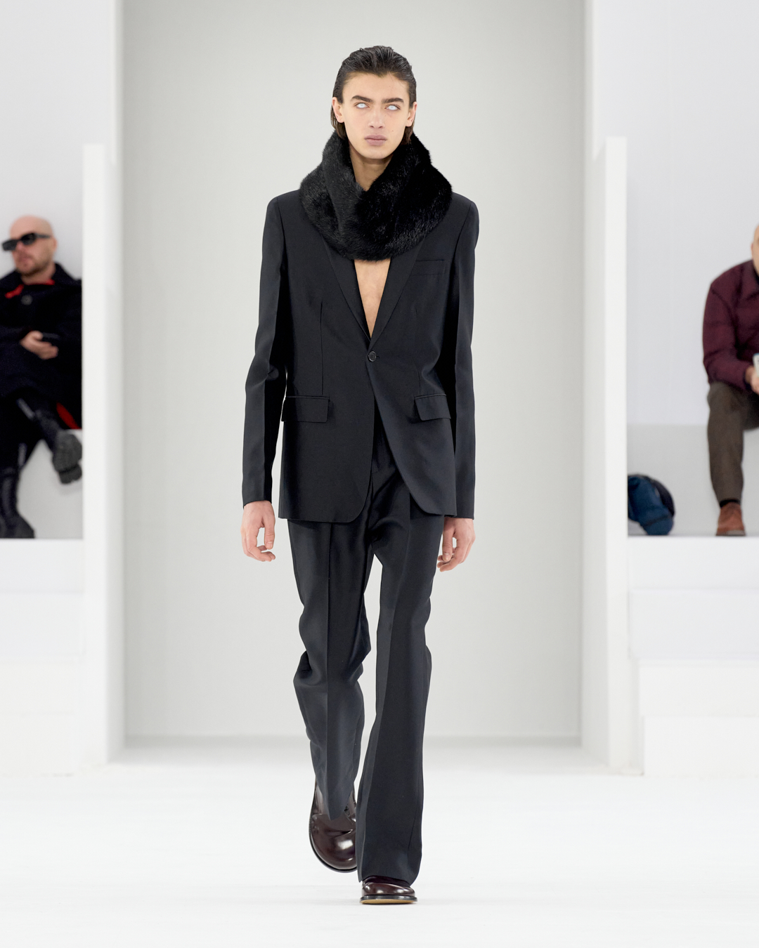 Shapes are molded, bended, frozen, tailored. A line is drawn, a fold is caught. A statement on pieces—the coat, the trench coat, the shaved shearling coat, the cardigan, the crewneck top, the slim suit—and undergarments. Oversized bags, round-toed boots and lace-ups. The contour, and what fills it. The Puzzle Tote bag introduces a supple new expression of the iconic Puzzle shape.