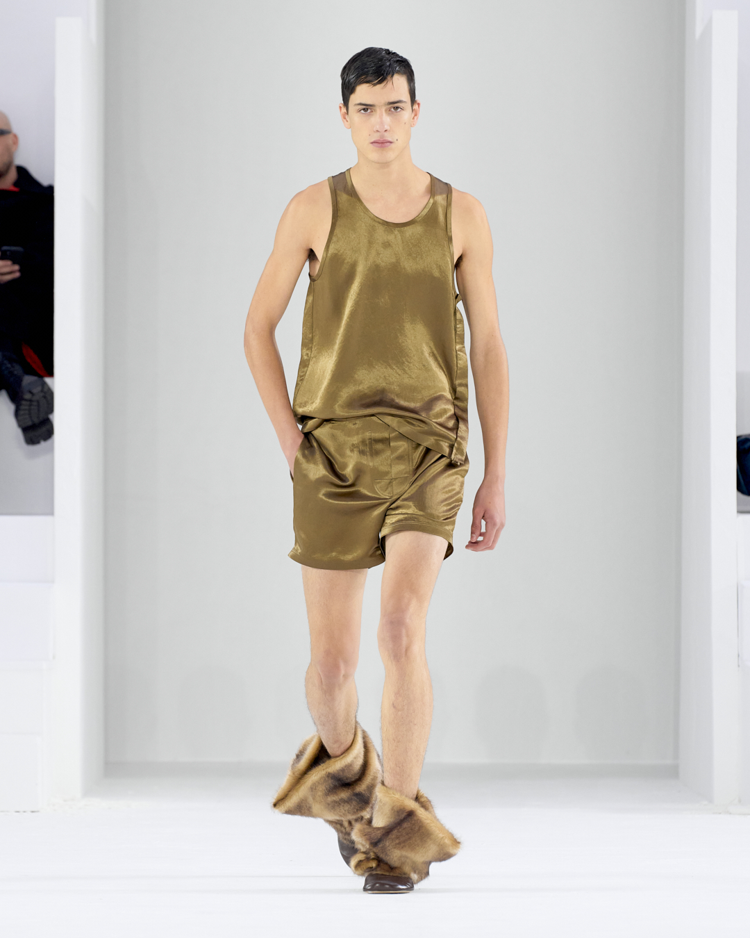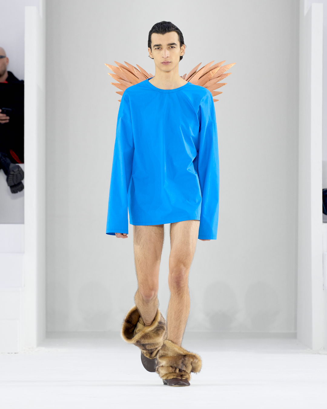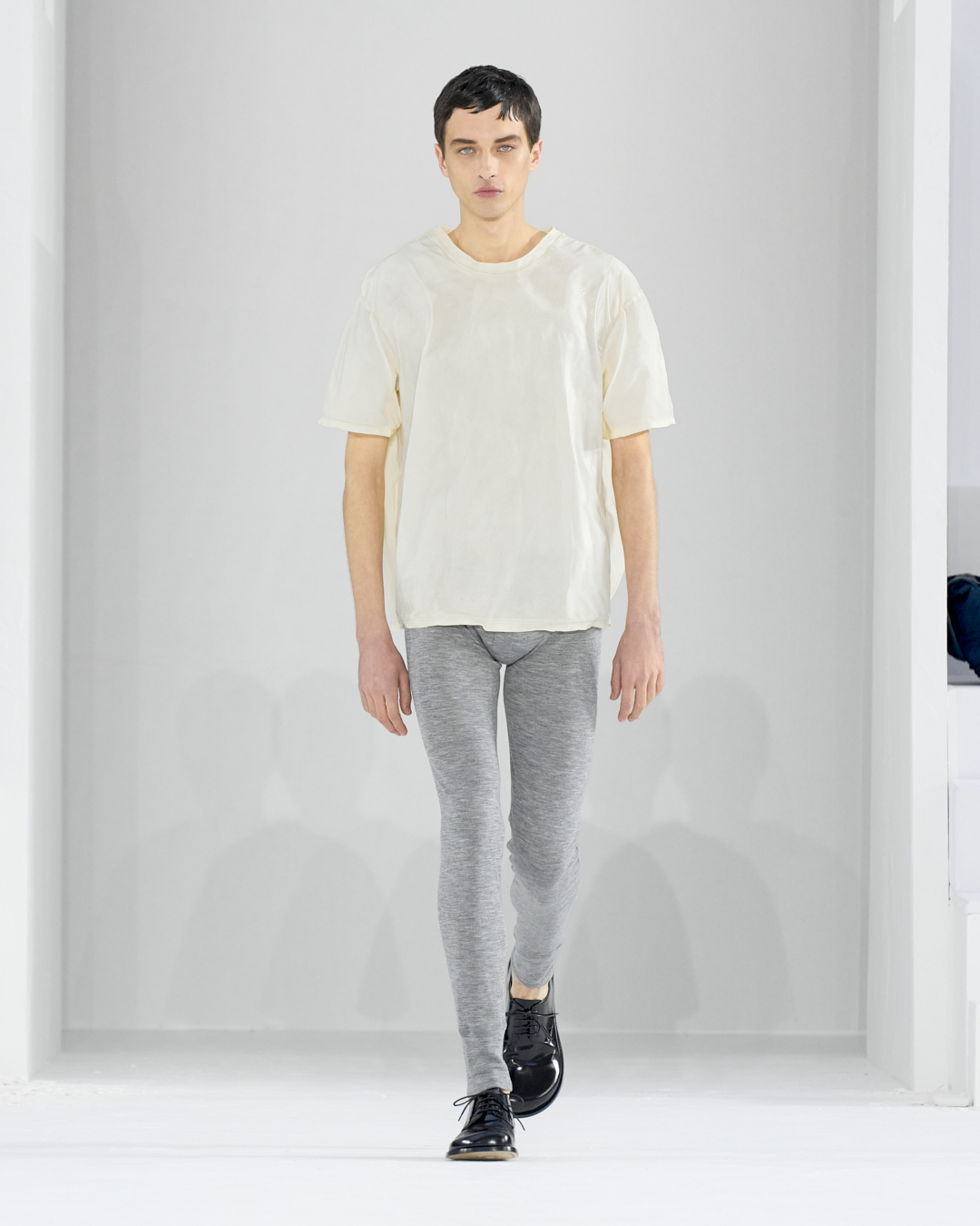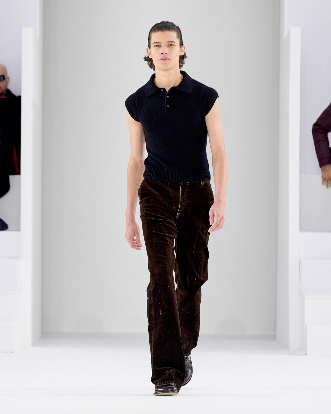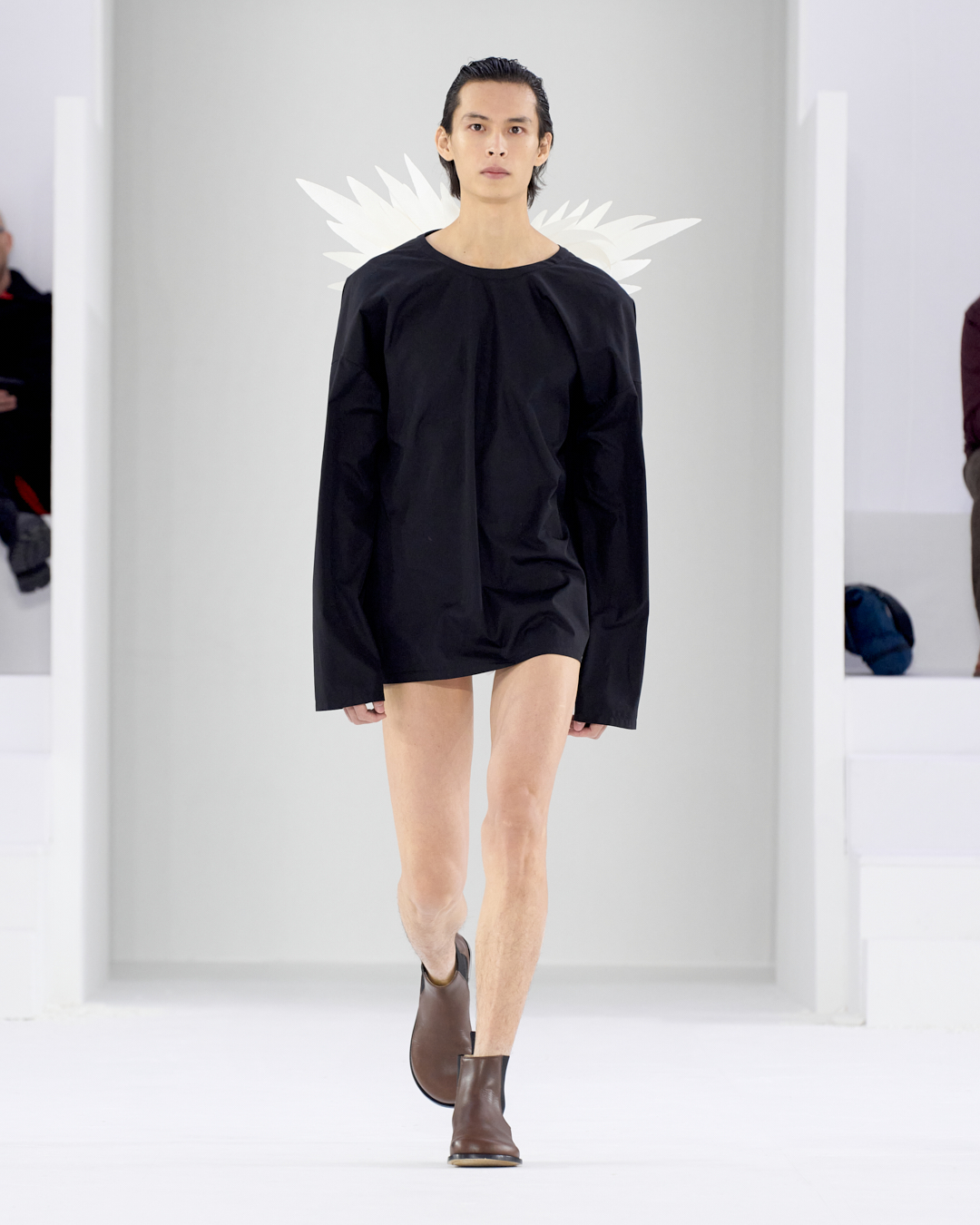 Shapes are molded, bended, frozen, tailored. A line is drawn, a fold is caught. A statement on pieces—the coat, the trench coat, the shaved shearling coat, the cardigan, the crewneck top, the slim suit—and undergarments. Oversized bags, round-toed boots and lace-ups. The contour, and what fills it. The Puzzle Tote bag introduces a supple new expression of the iconic Puzzle shape.