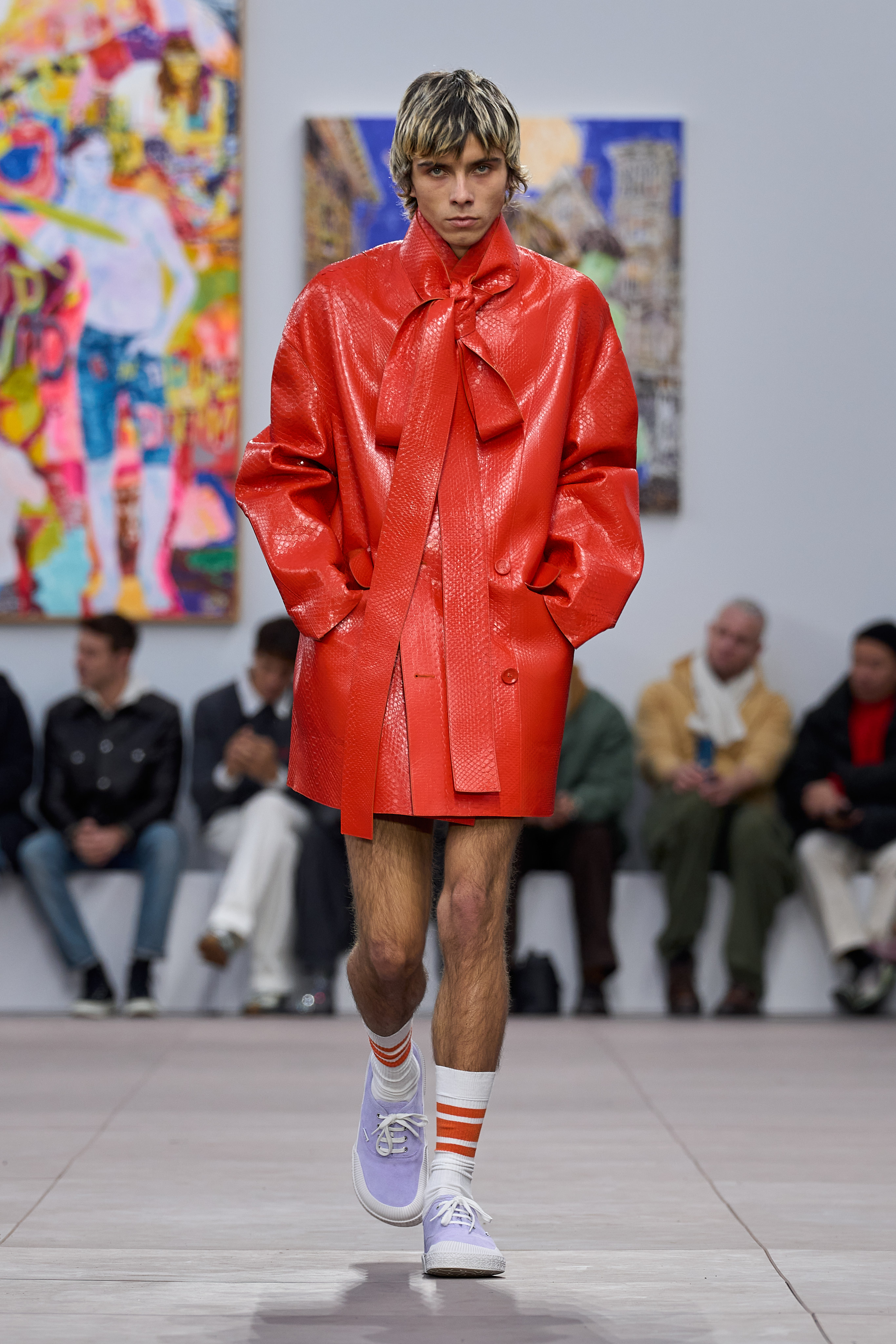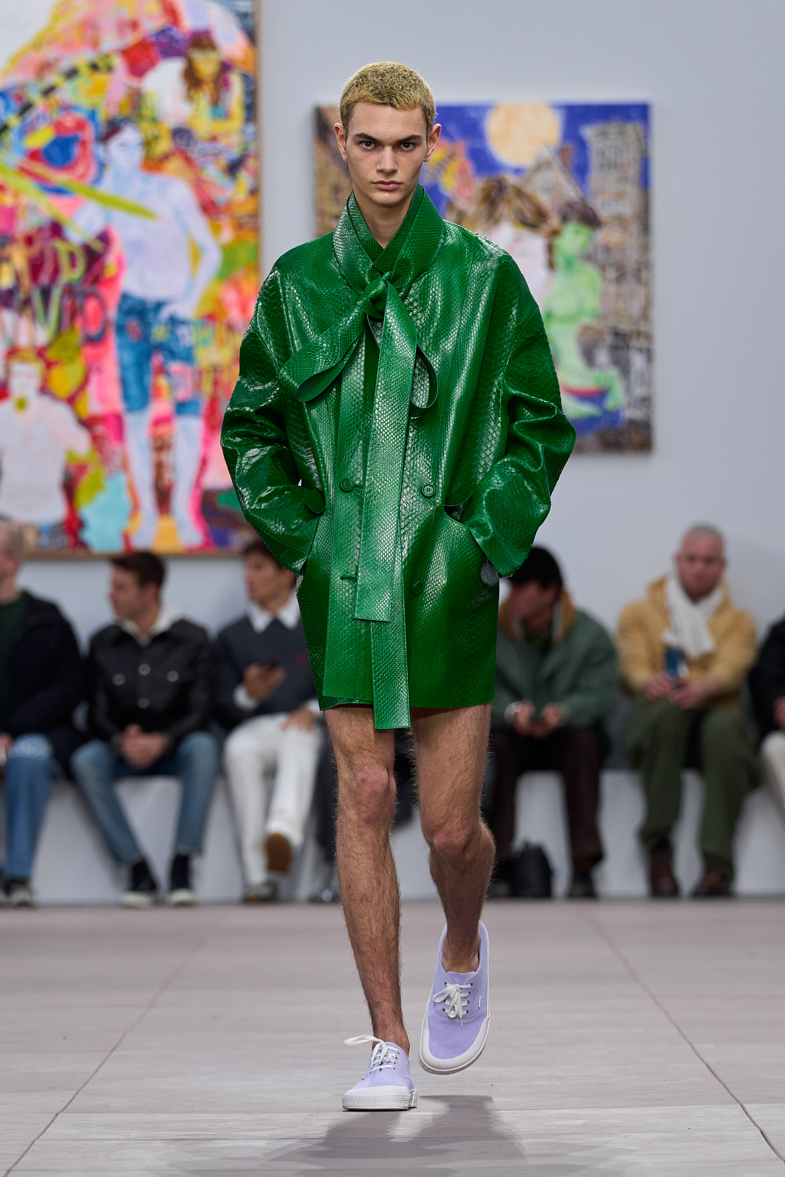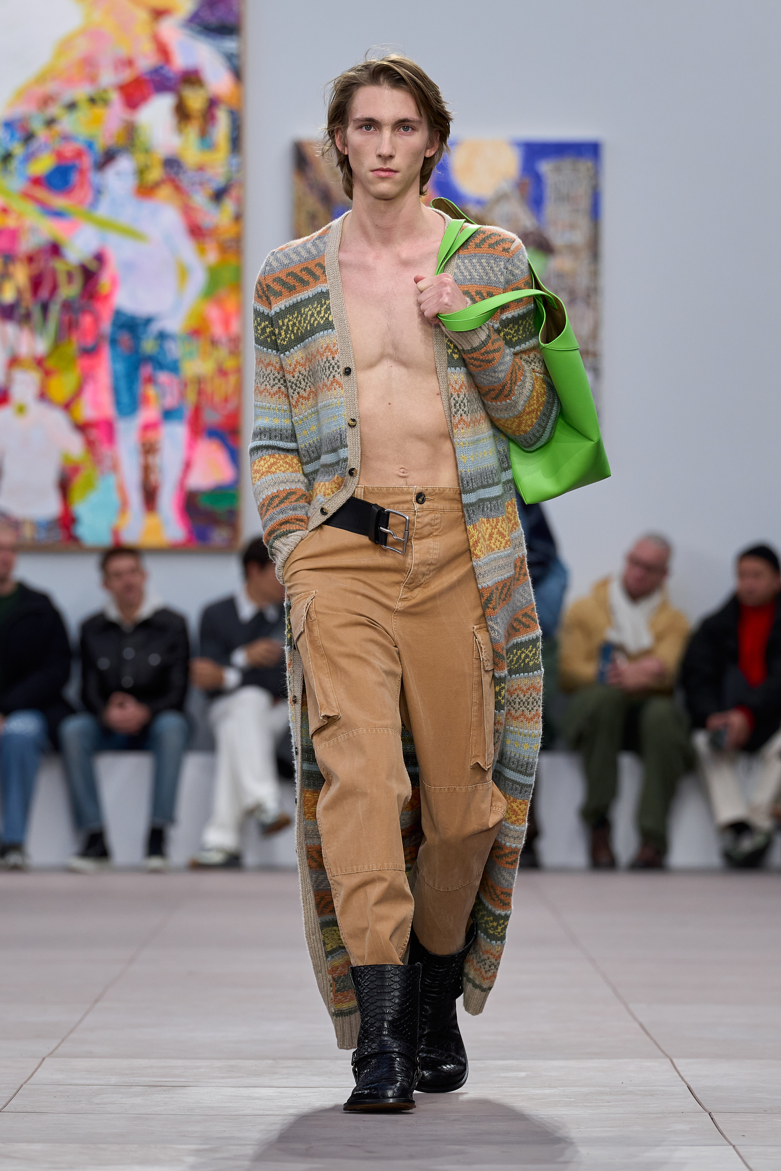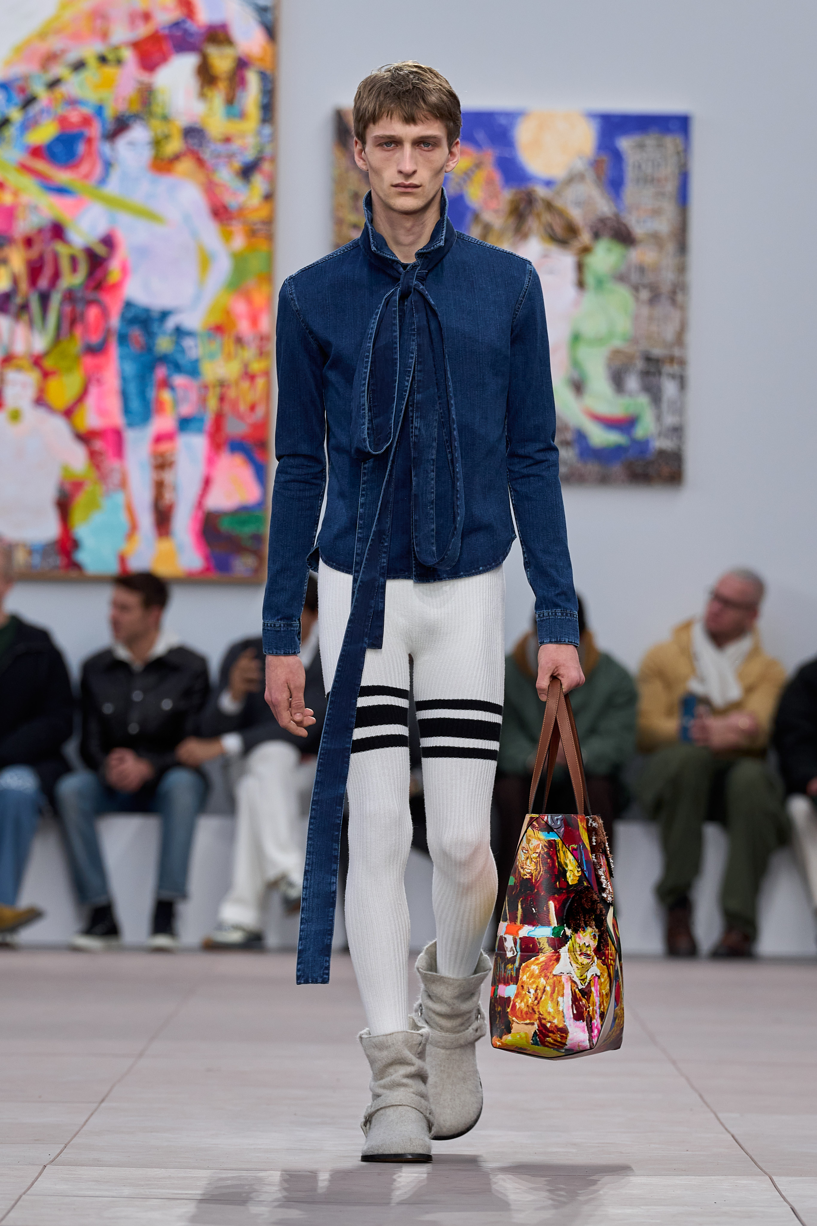 For FW24 Menswear show, LOEWE collaborated with artist Richard Hawkins (1961, Mexia, Texas), bringing his unique aesthetic universe within the show space and into the collection.