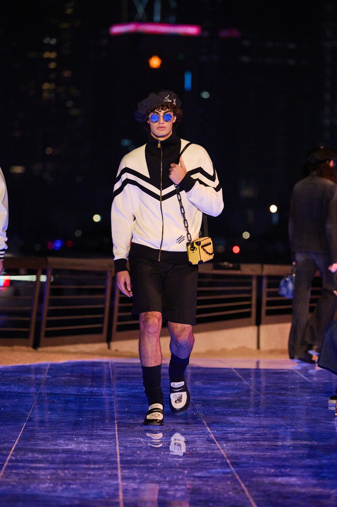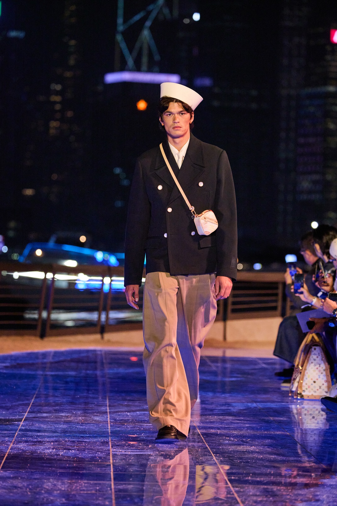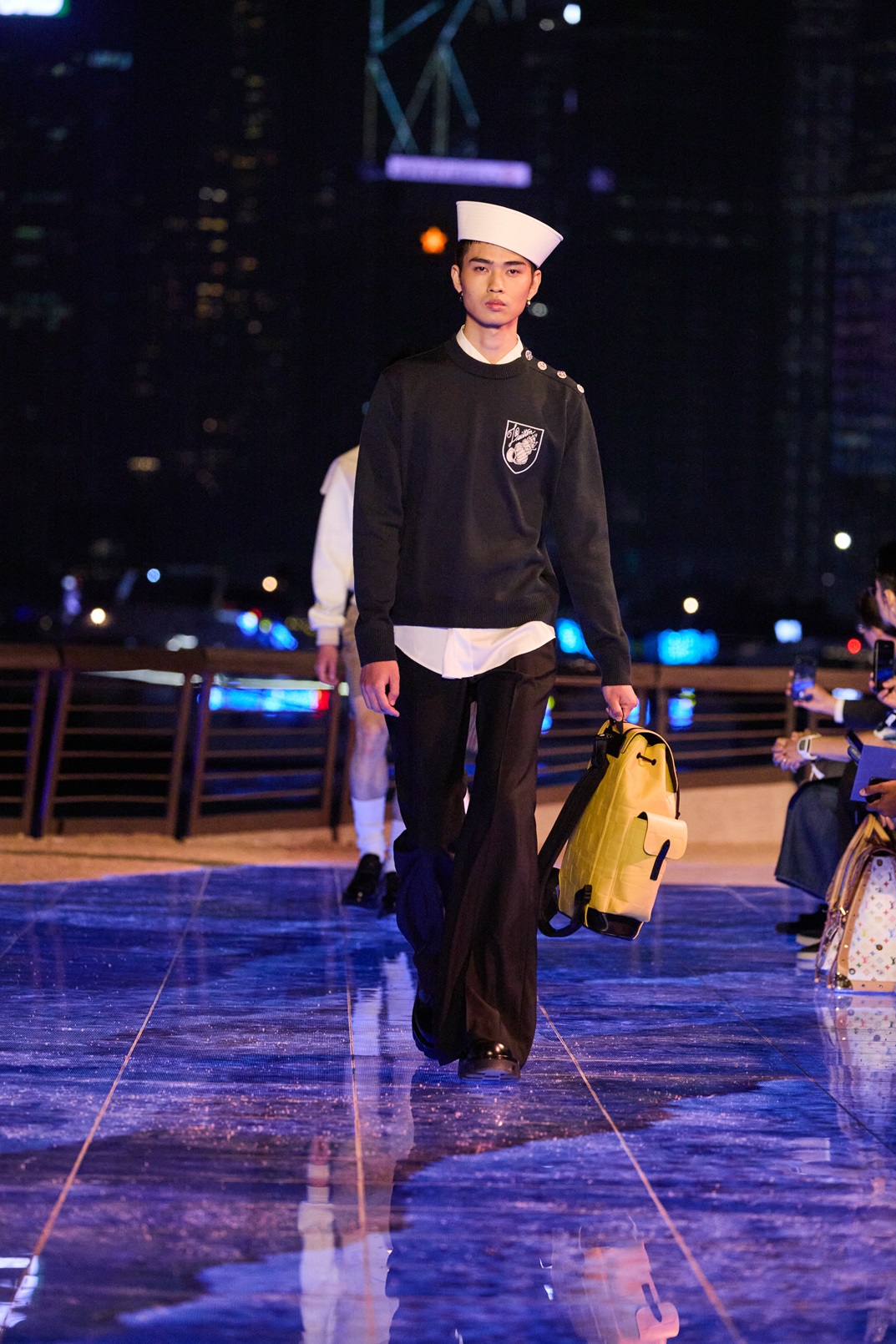 Set under the moonlight and constellations of the night sky, the Louis Vuitton Pre-Fall 2024 Men’s Collection Show unfolds along the Avenue of Stars on Victoria Harbour. Located along the panoramic waterfront of Tsim Sha Tsui, the 440-metre promenade was established in 1982 and reopened in 2004 as a monument to the stars of Hong Kong’s film industry. Victoria Harbour is noted as an epicentre of cultural exchange, and has welcomed seafarers from around the world since the fifteenth century. Being close to the water is a constant theme and grounding force for Pharrell Williams, who grew up in Virginia Beach. The port serves as a symbol of the mind-expanding power of travel.