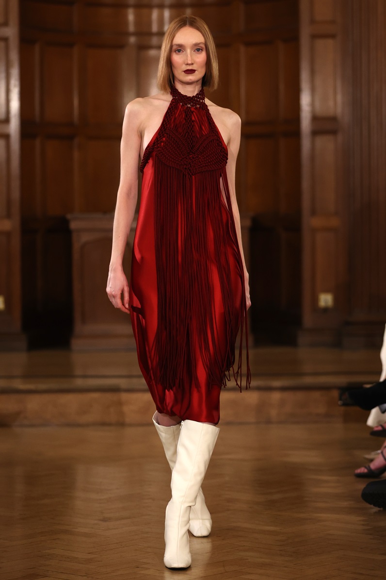 The handwoven elements - signature to the brand have been applied creating a tonal juxtapositions of the soft and fluid with frayed and fringed on the same palette. The designs are considered for low waste, long term appeal and relevance. The collection features new incarnation of the Astrid Jacket and Tigerlily Dress - first introduced in 2019 but remains relevant for the AW 24 season. These designs are fully handwoven at our London studio requiring skilled craftsmanship and talent that we are proud to hone and nurture.